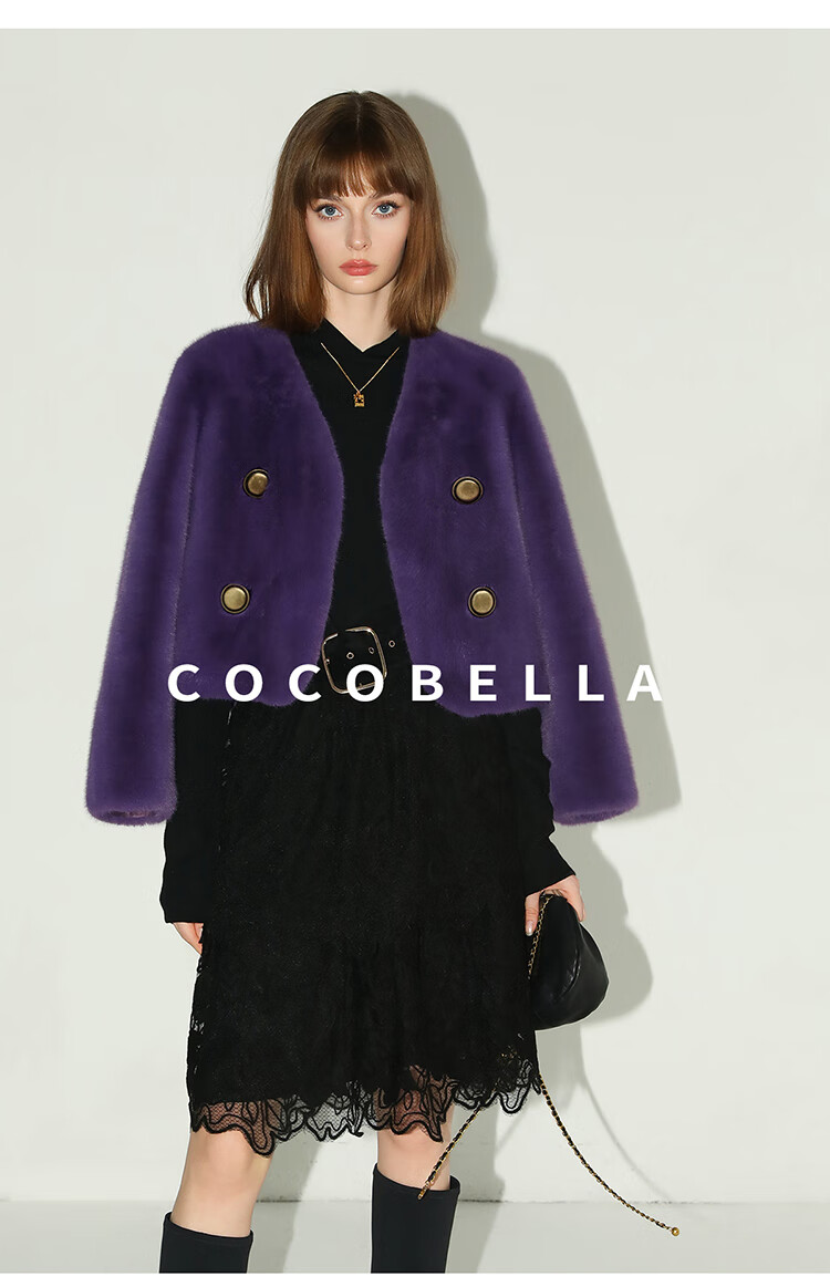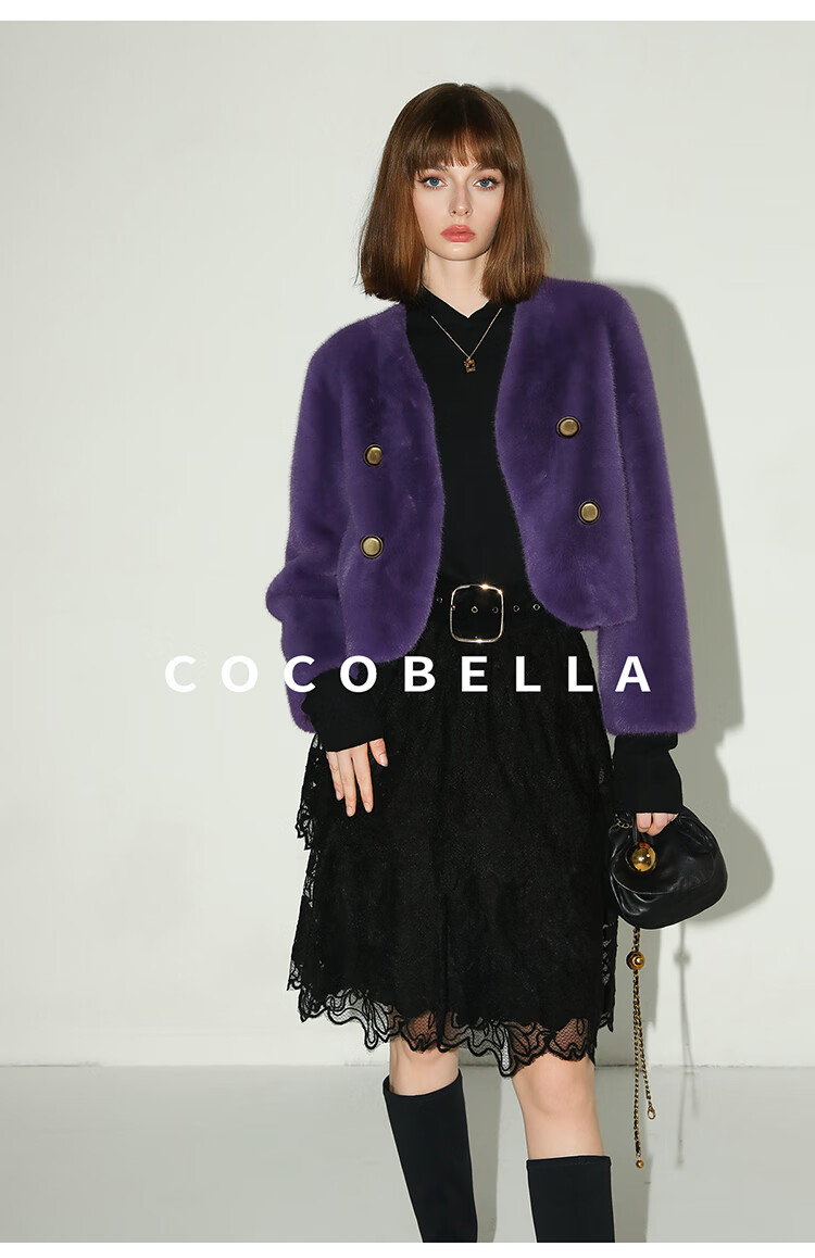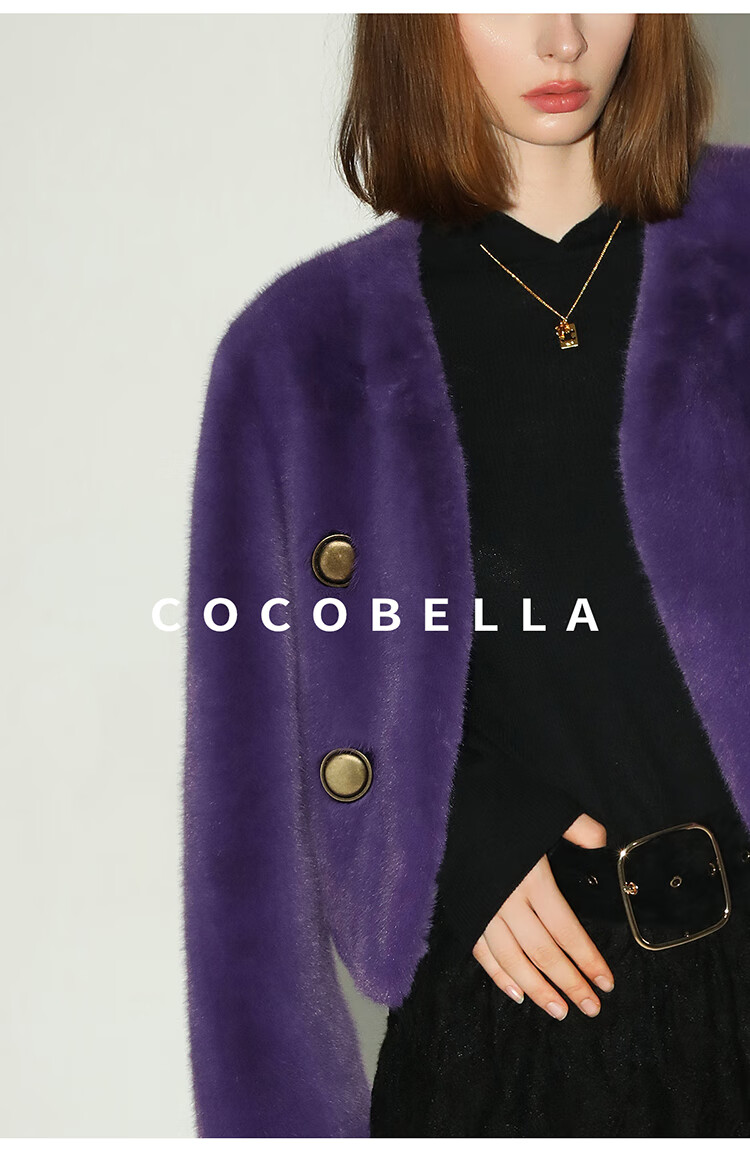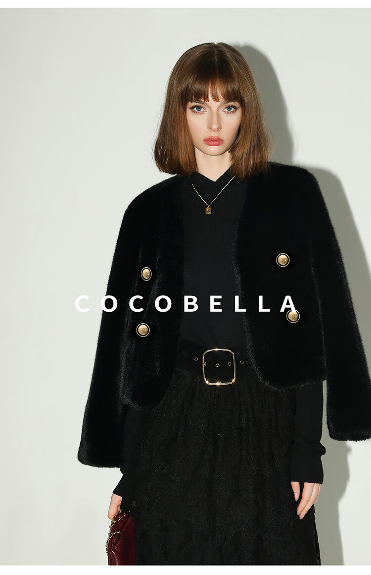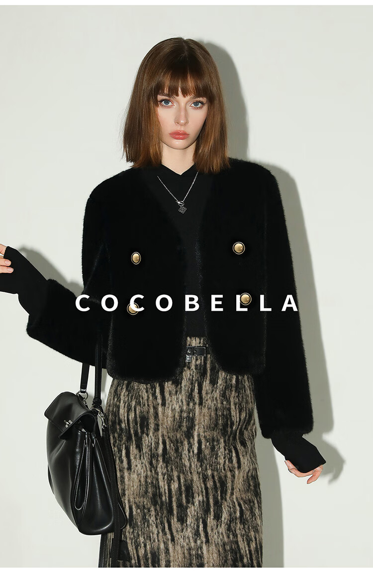 COCOBELLA高奢质感气质丰盈环保皮草冬裸领短款毛绒外套WL57A