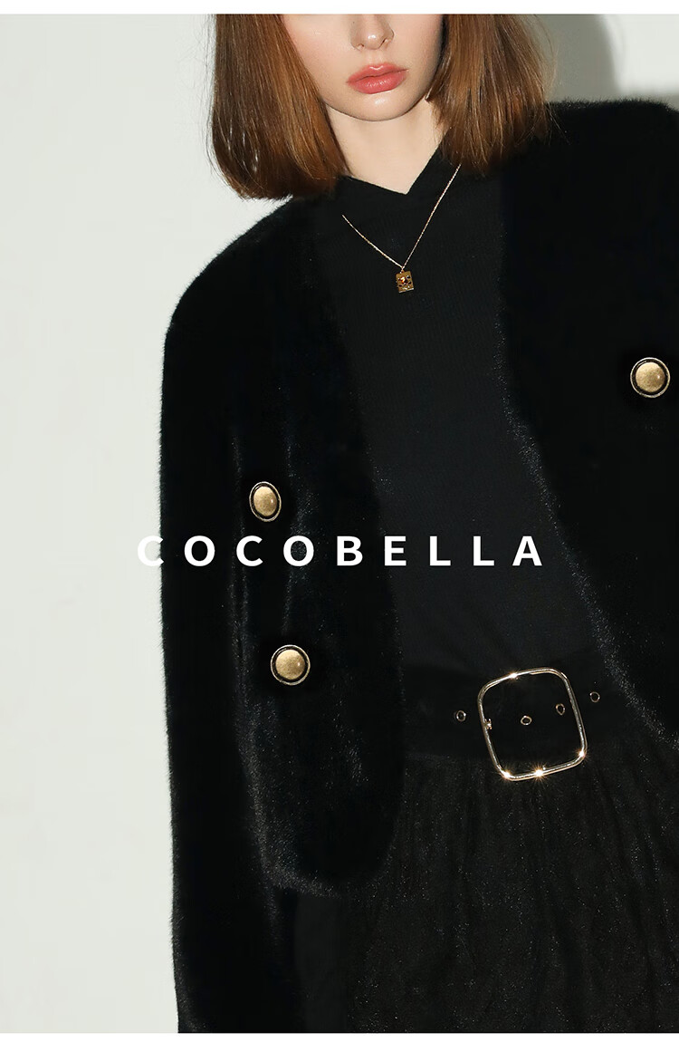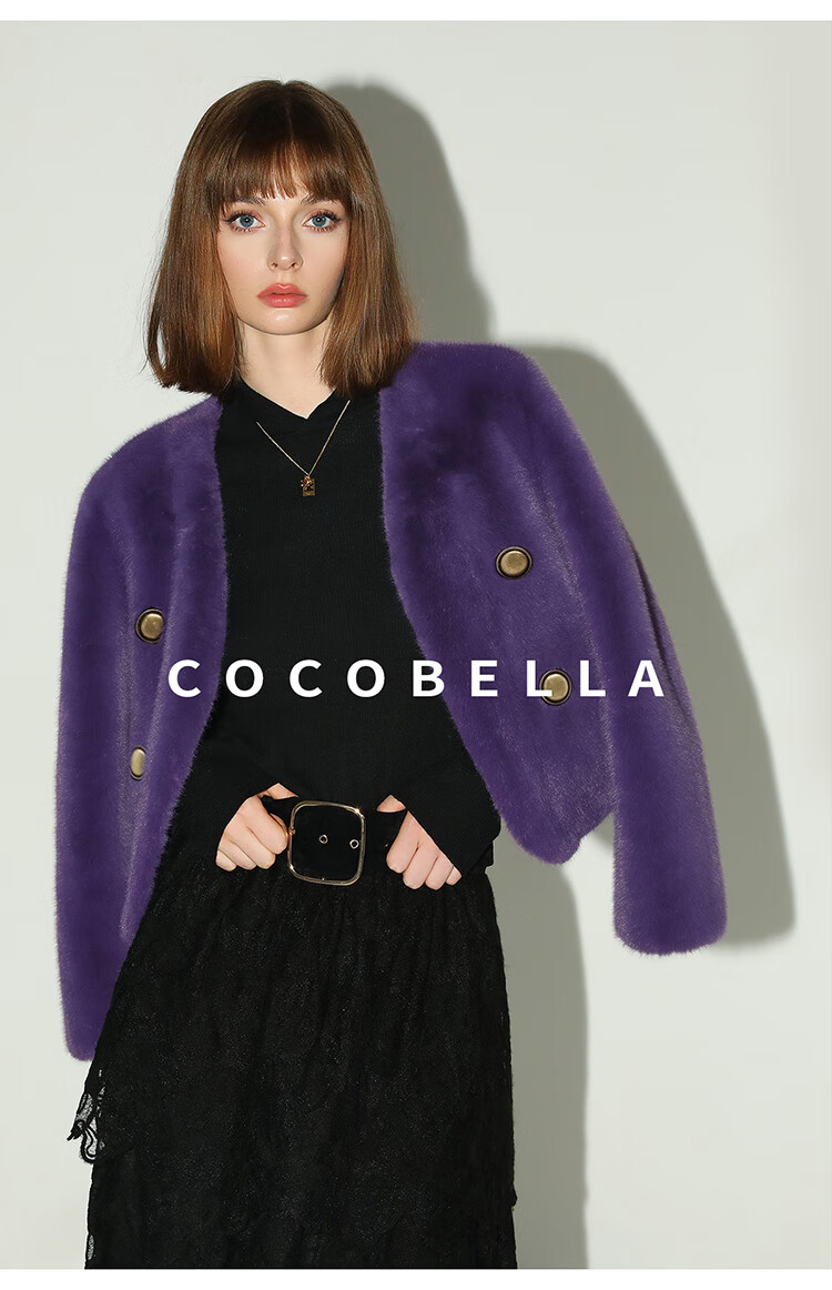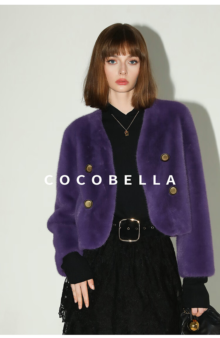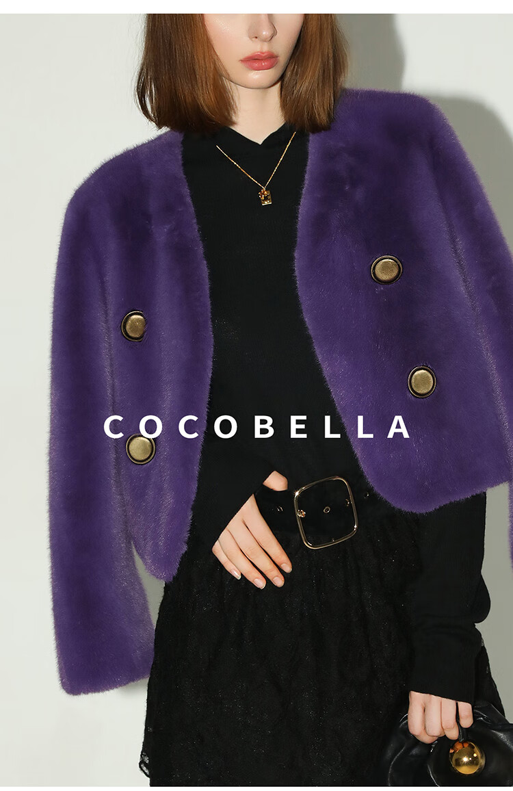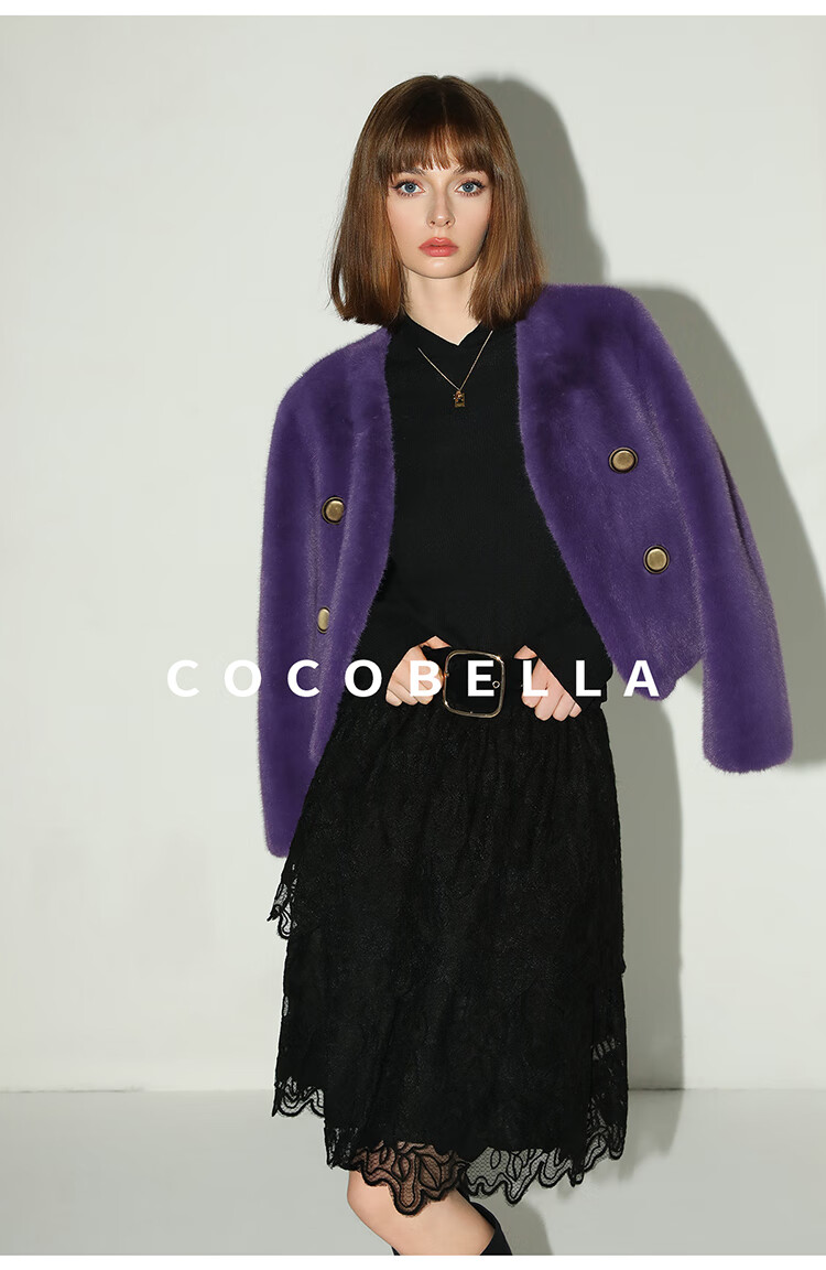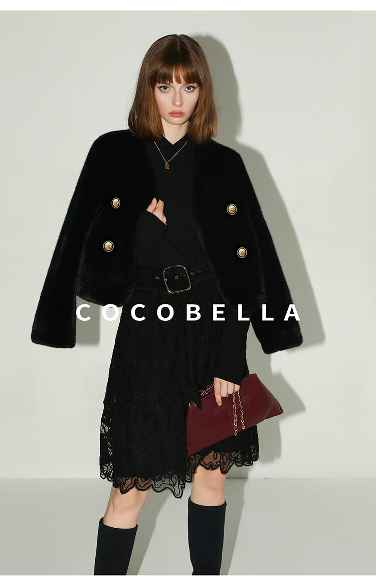 COCOBELLA高奢质感气质丰盈环保皮草冬裸领短款毛绒外套WL57A