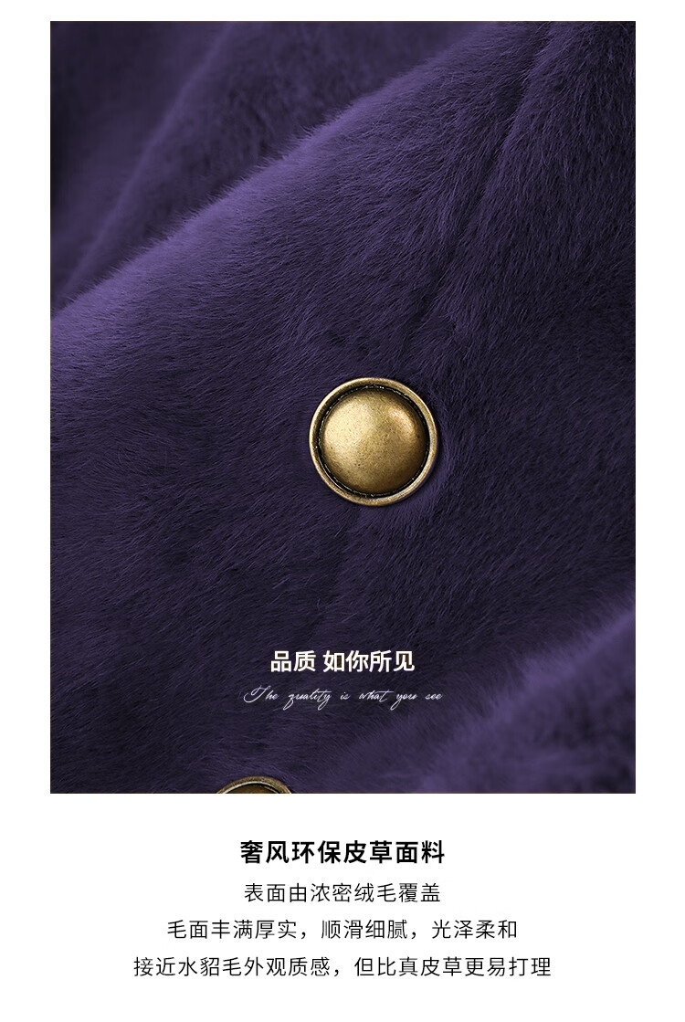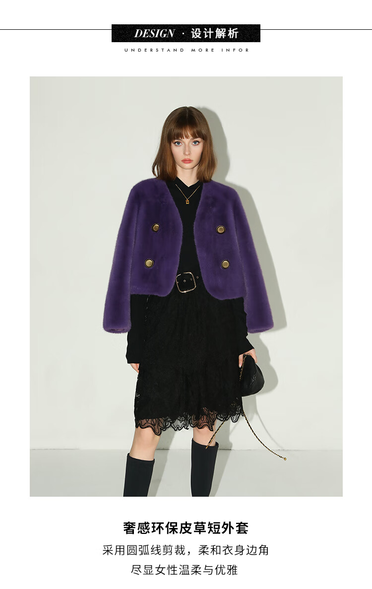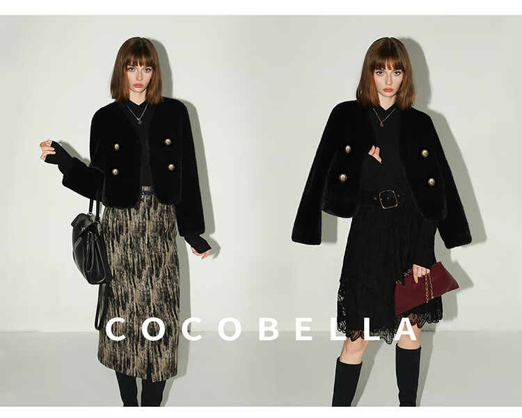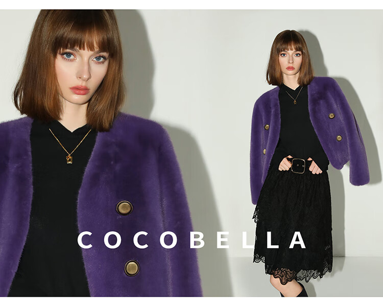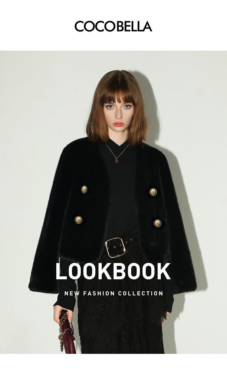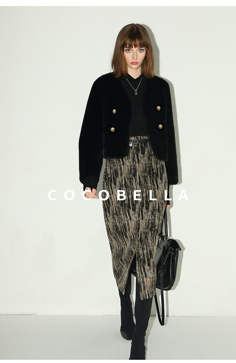 COCOBELLA高奢质感气质丰盈环保皮草冬裸领短款毛绒外套WL57A