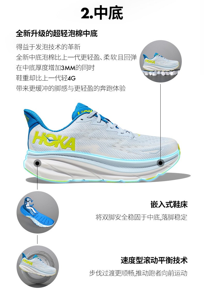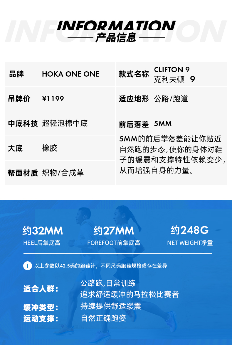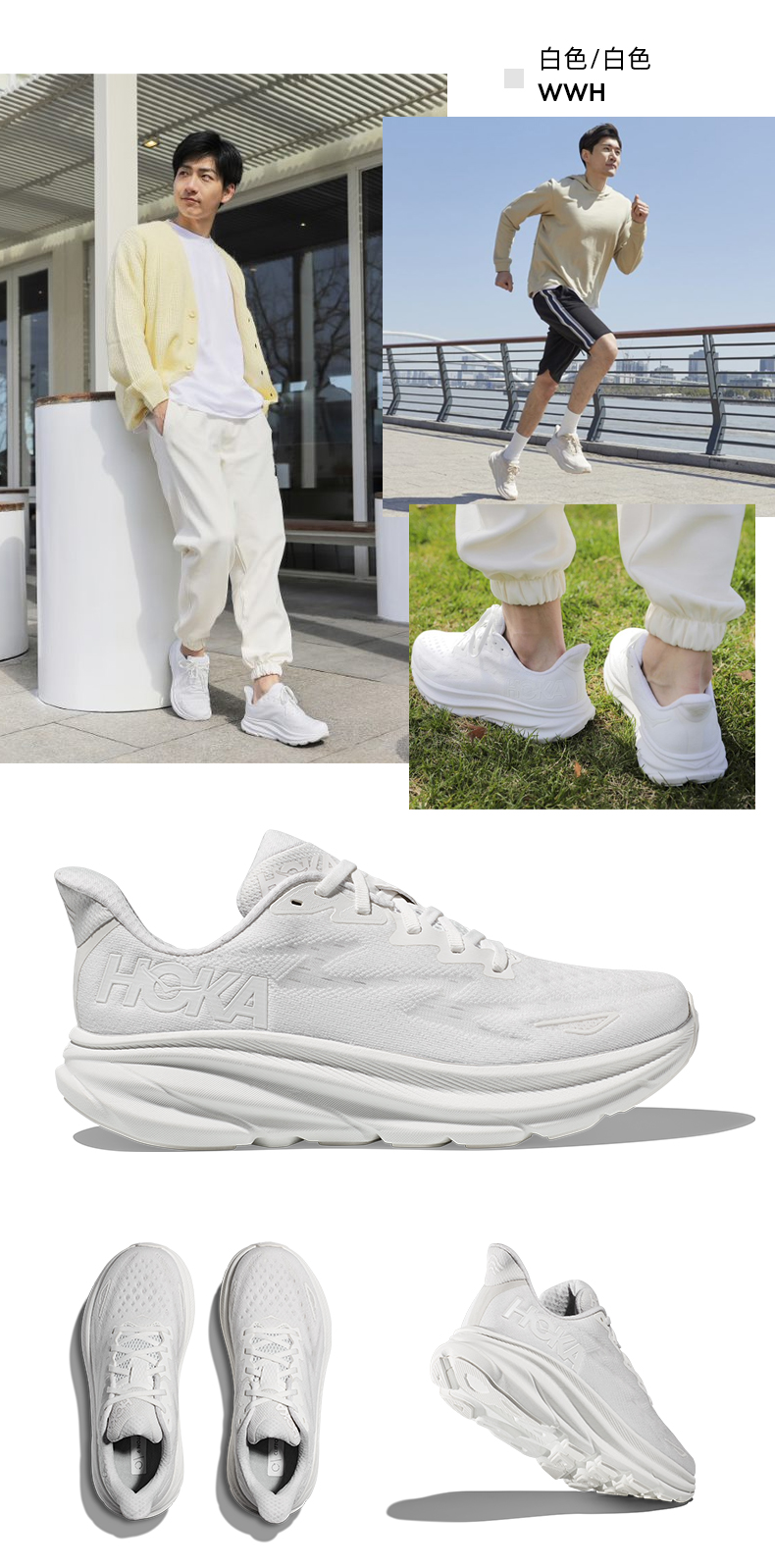 鸣星同款【减震回弹 舒适透气轻便】HOKA ONE ONE 男女鞋Clifton9公路跑步鞋 休闲厚底