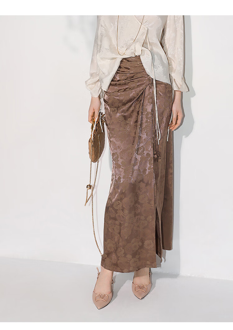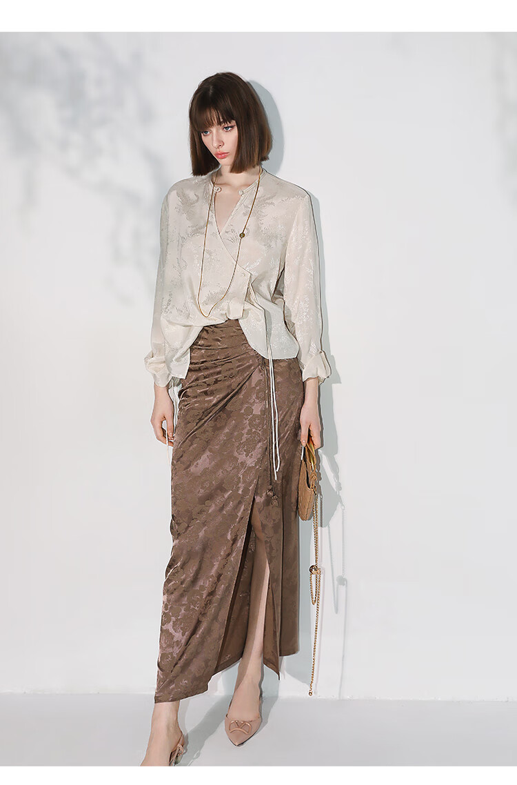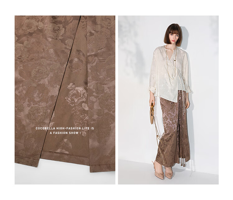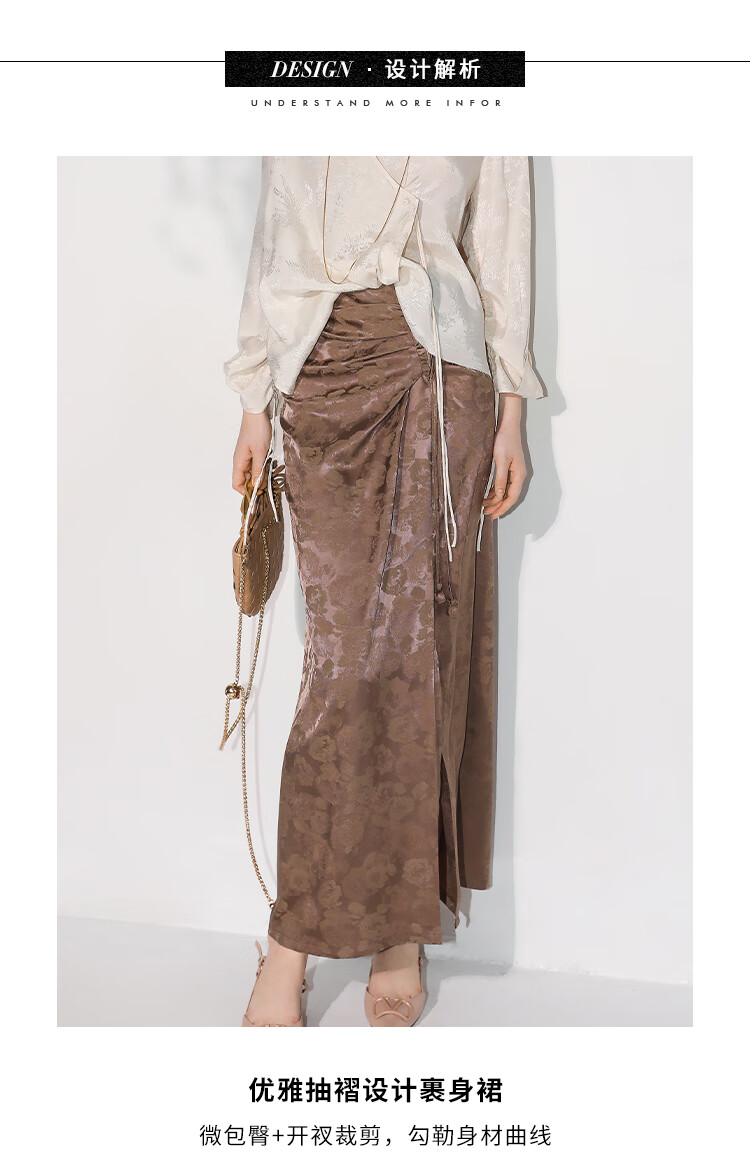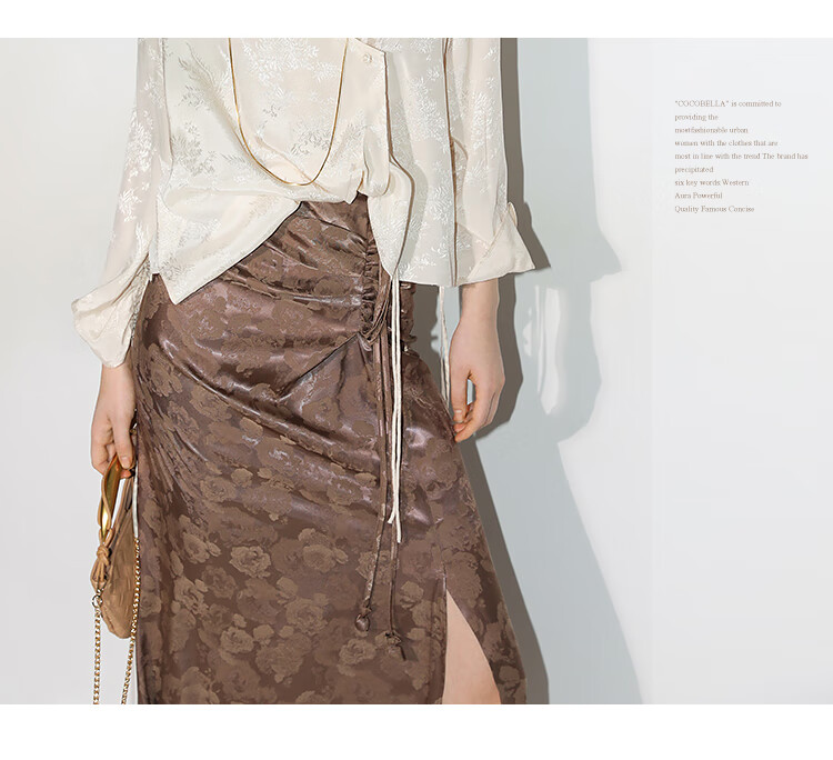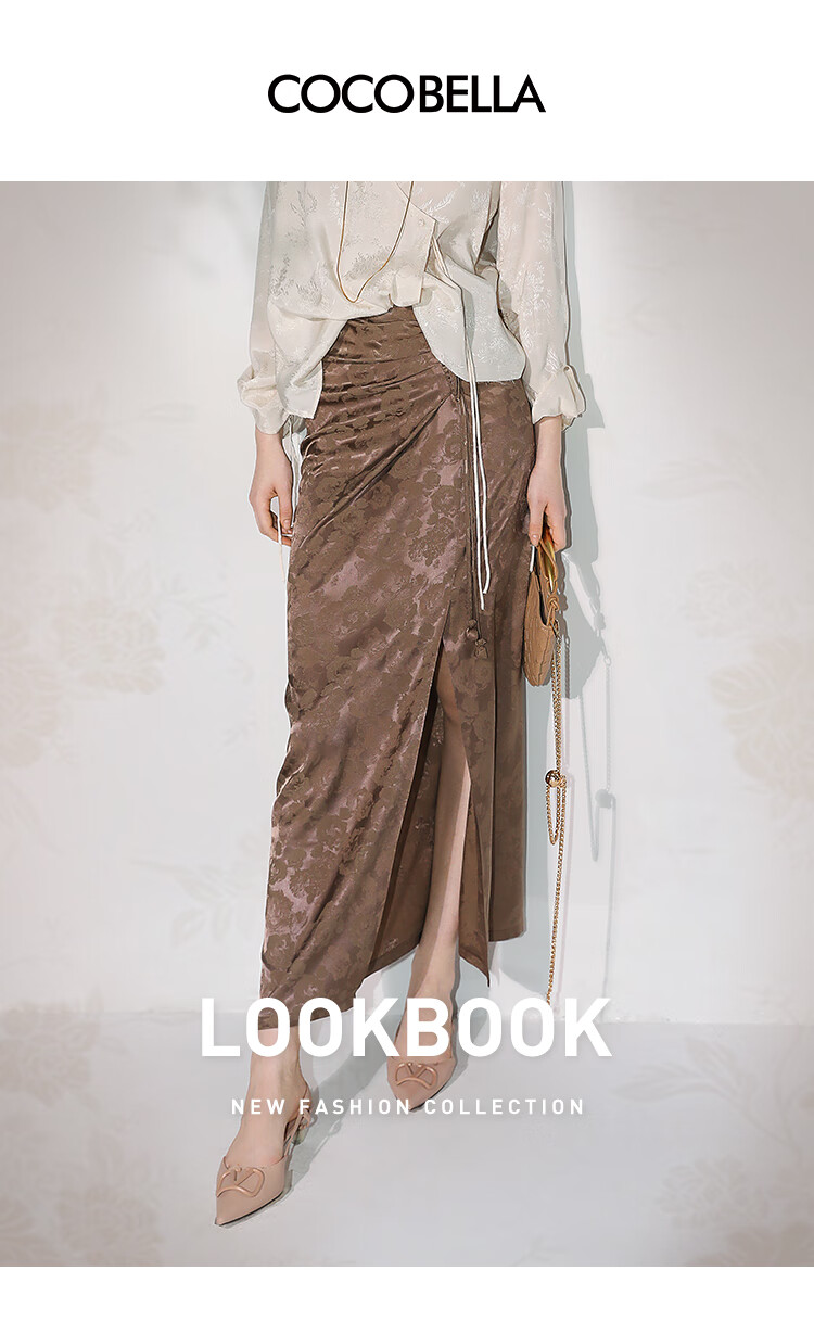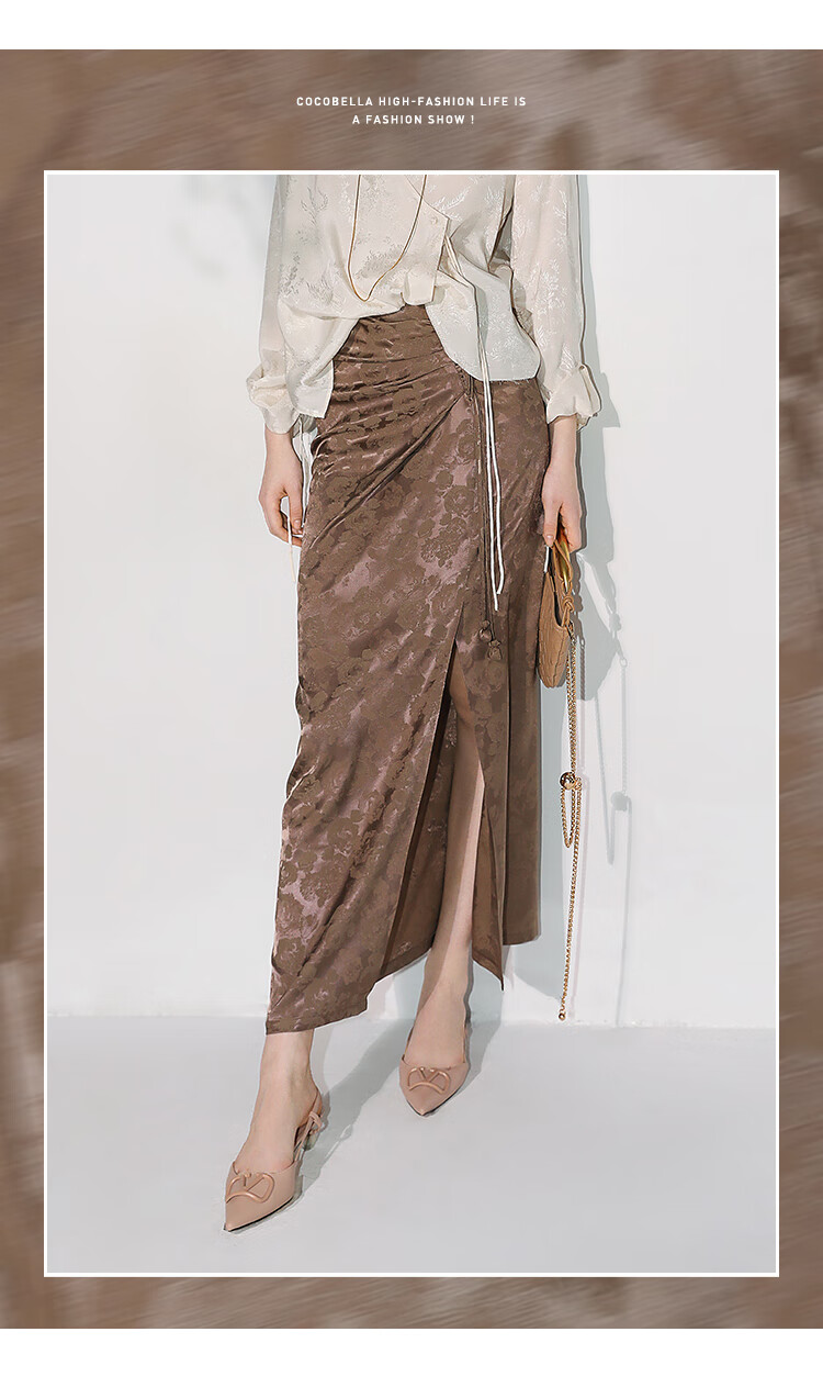 COCOBELLA奢感新国风暗纹提花丝光缎面垂坠丝滑半身裙HS7047