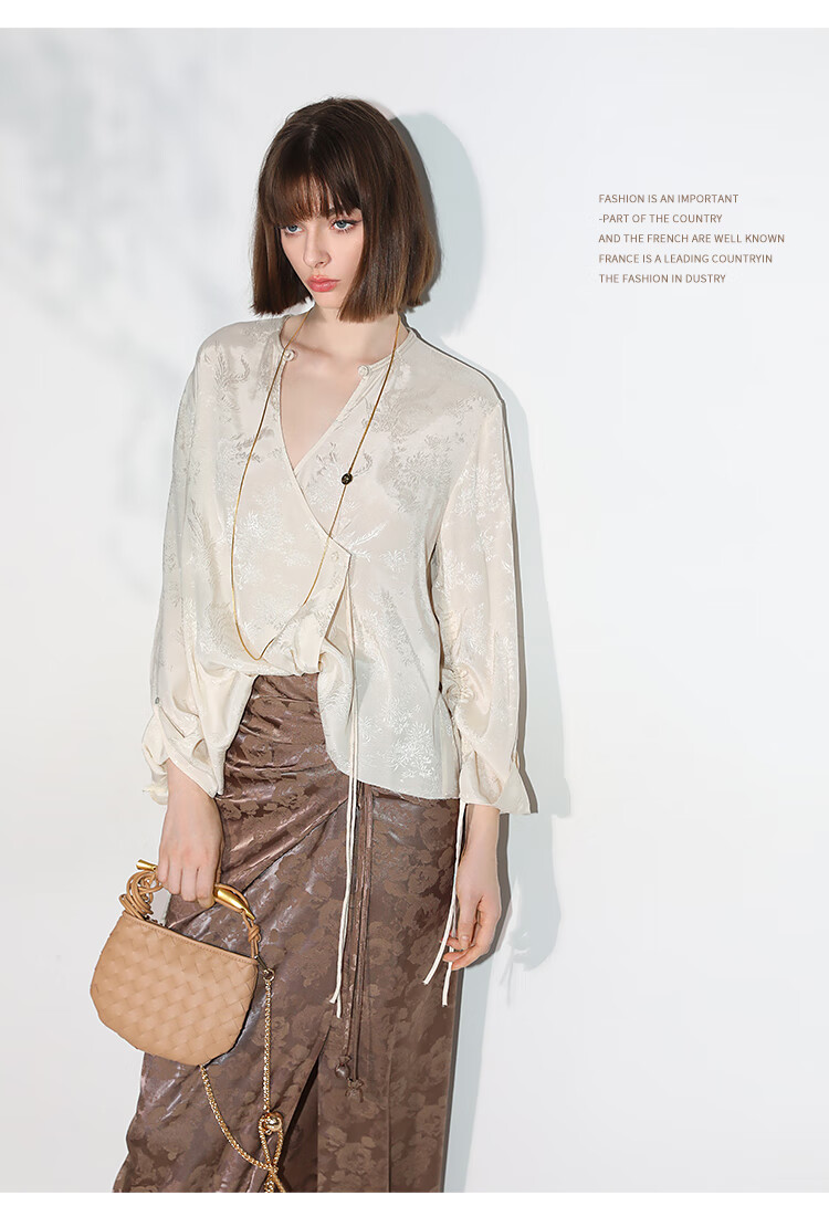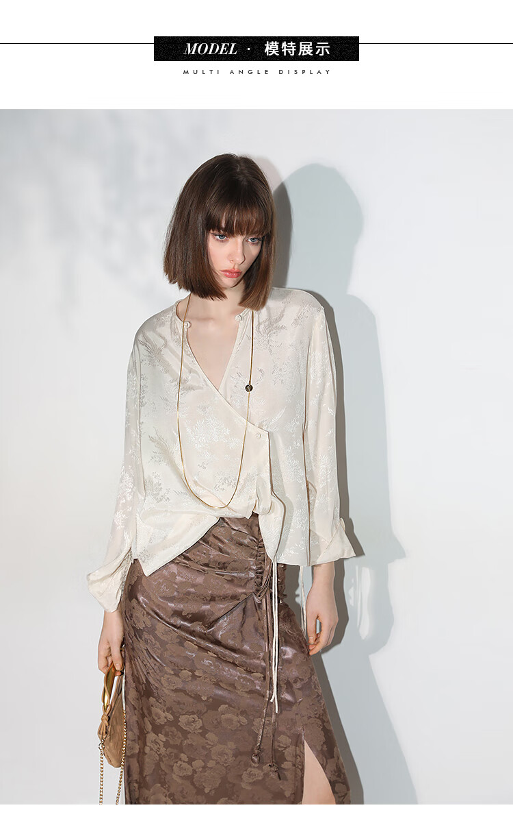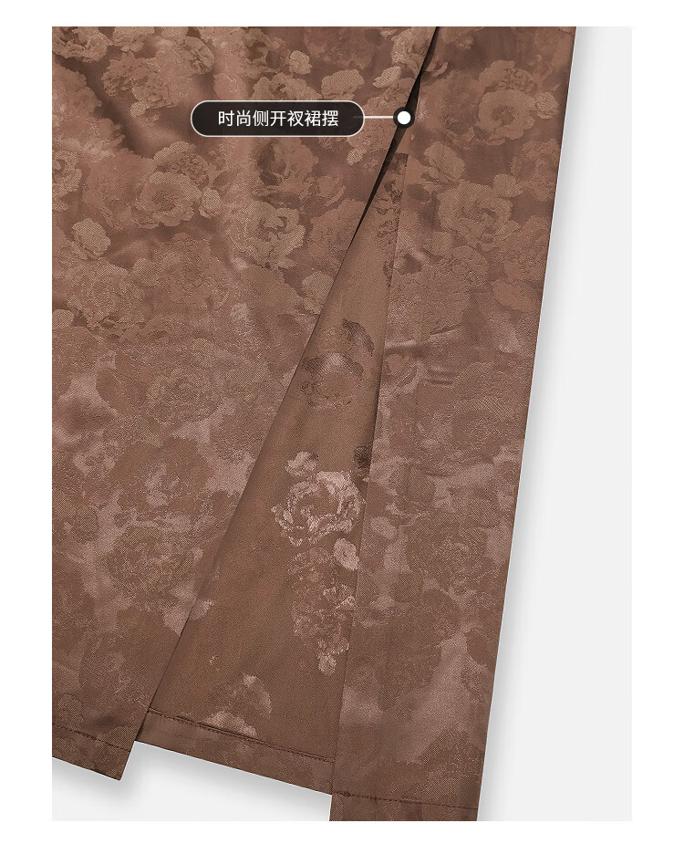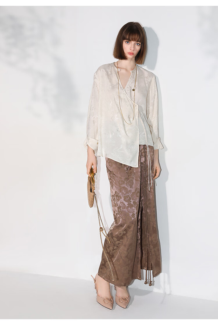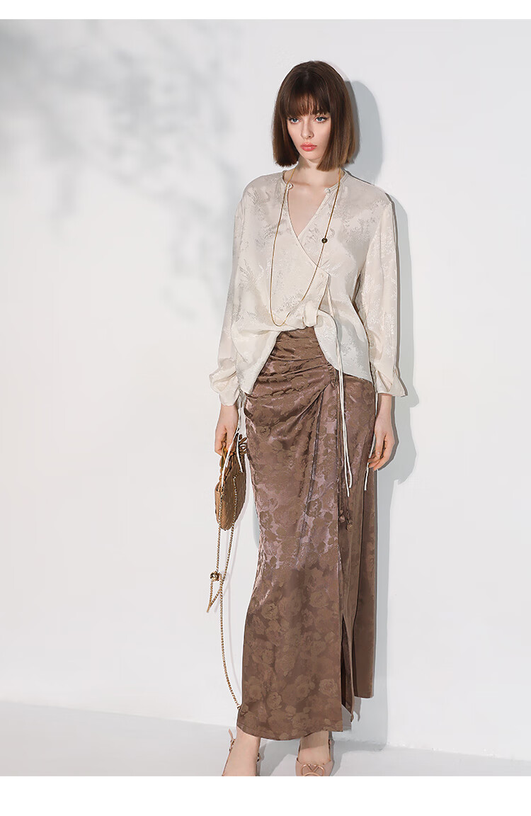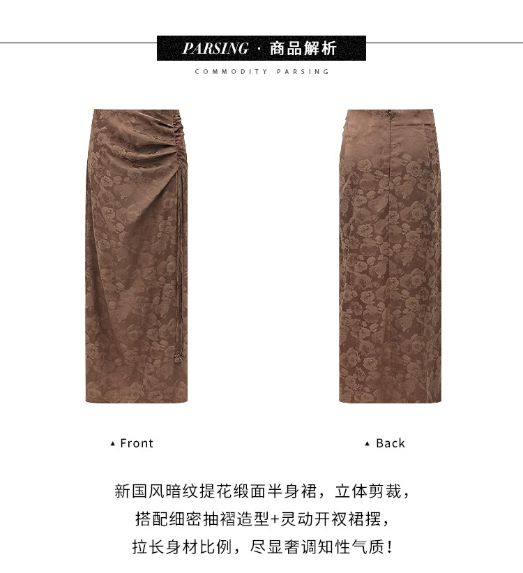 COCOBELLA奢感新国风暗纹提花丝光缎面垂坠丝滑半身裙HS7047