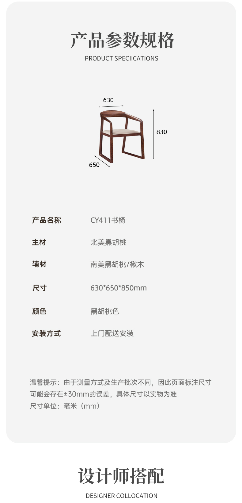 【现代风-CY411书椅】现代风 /书房/FAS级北美黑胡桃木/实木书椅