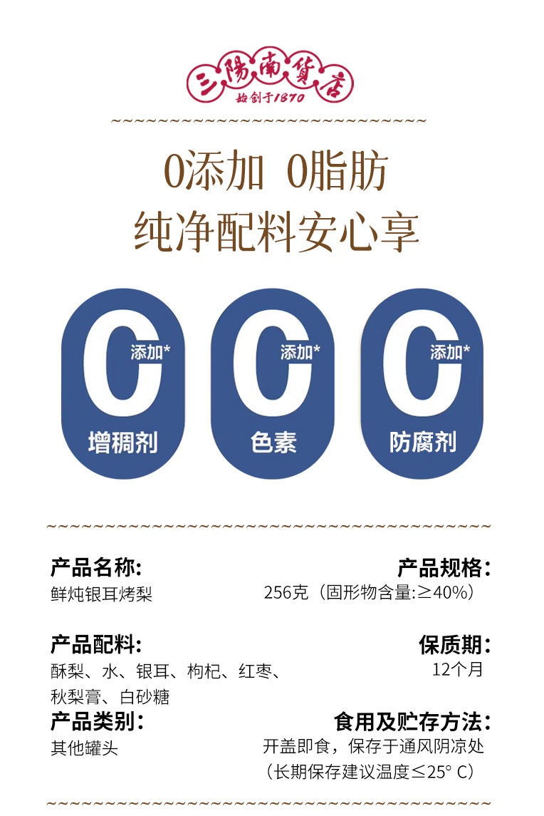 【三阳南货店】鲜炖银耳烤梨256g/盒*3盒+陈皮莲子红豆沙168/盒*3盒