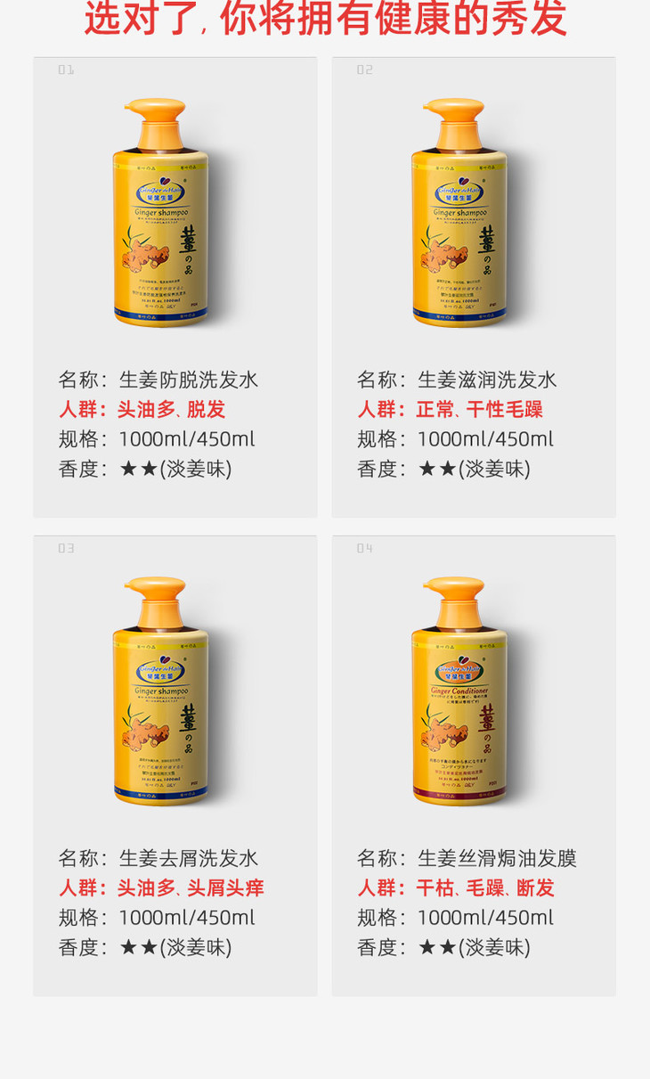 琴叶生姜洗发水去屑滋润洗发露 1000ml