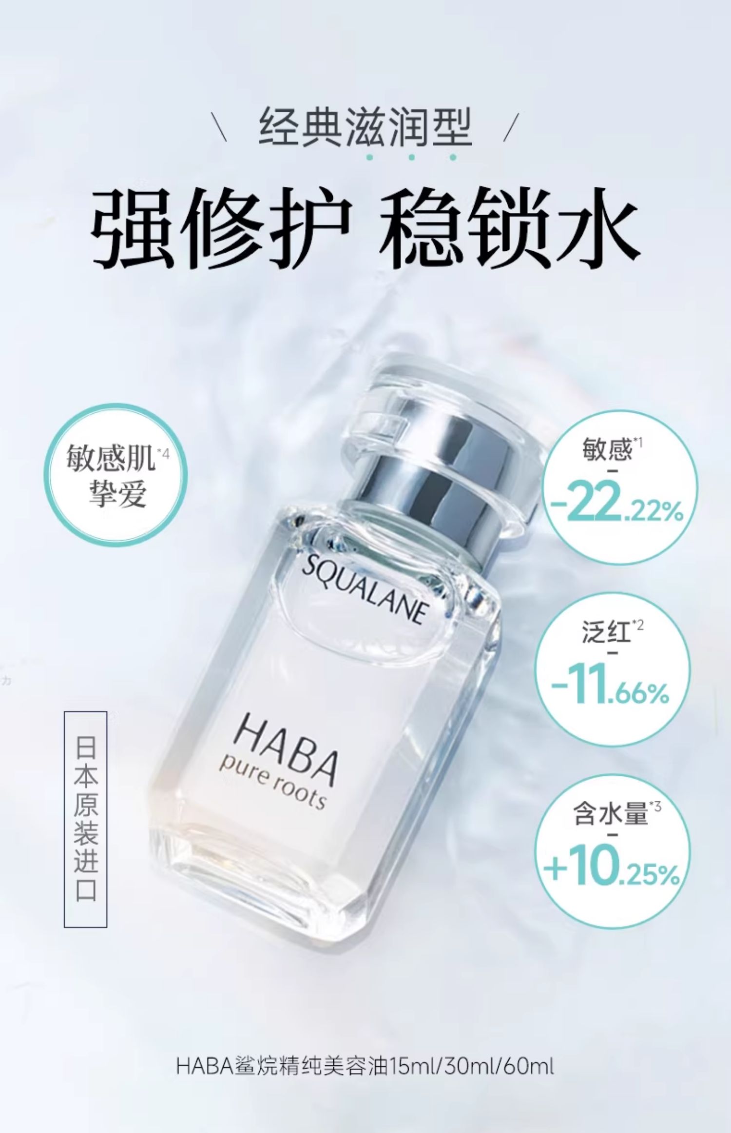 【滋养抗皱】HABA角鲨烷油1代精纯美容油 保湿补水舒缓护肤【非质量问题不退换】