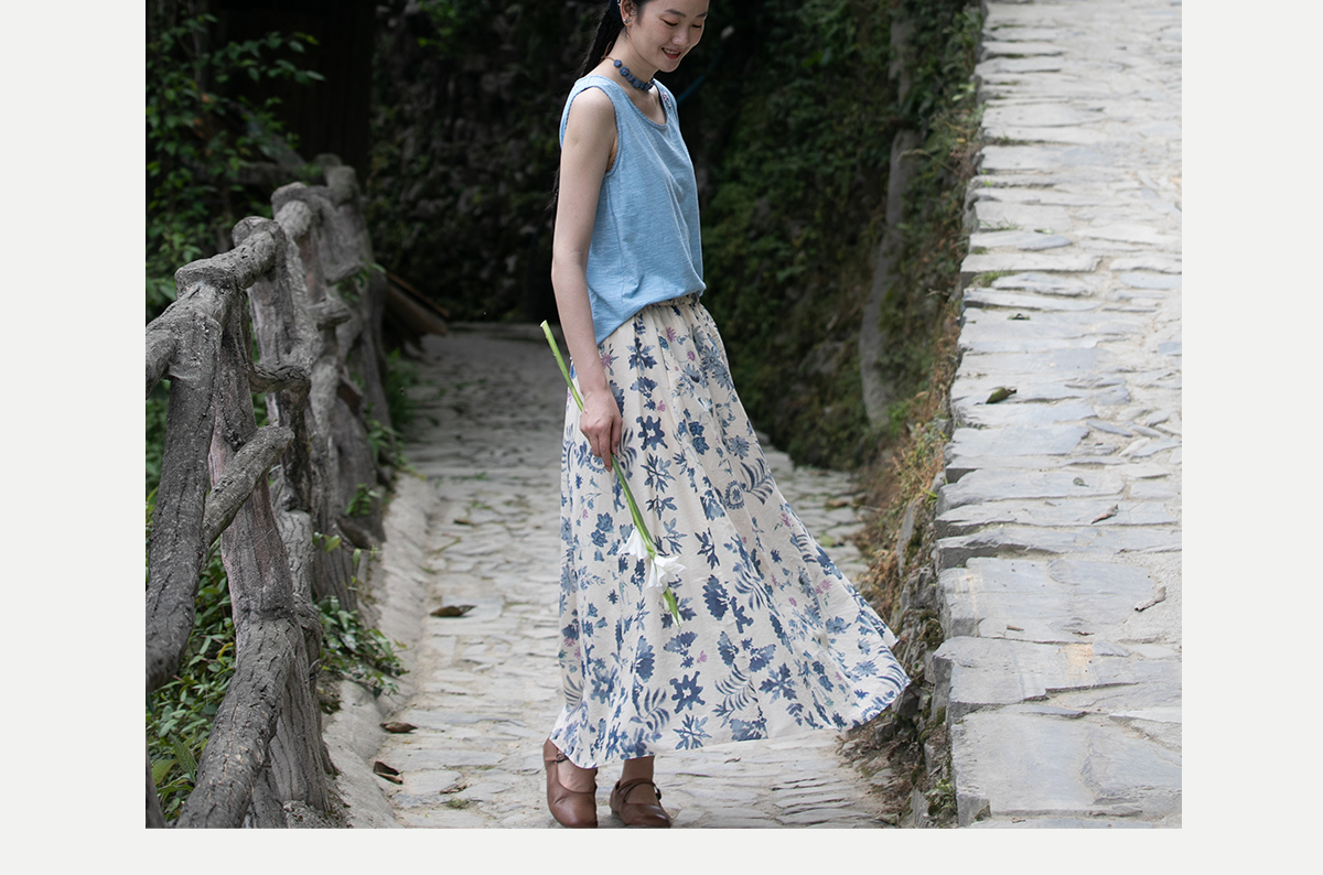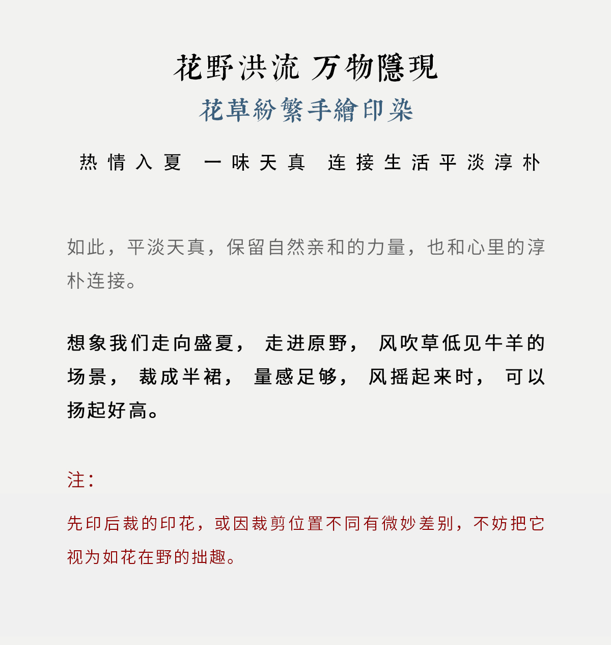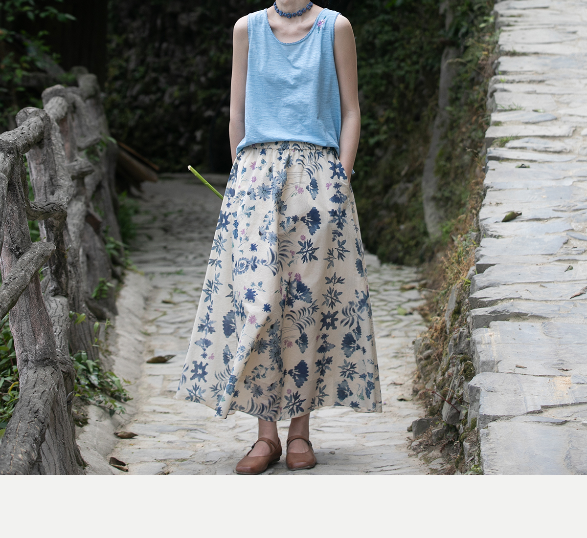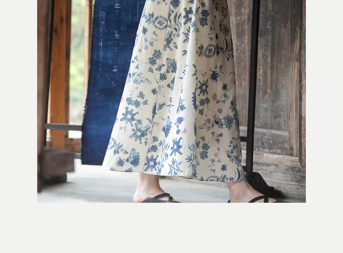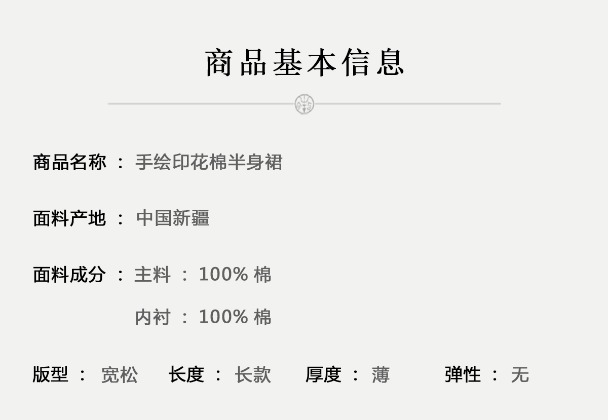 牧衣游原创 手绘印花纯棉半身裙宽松轻薄质朴文艺百搭半裙 禧可