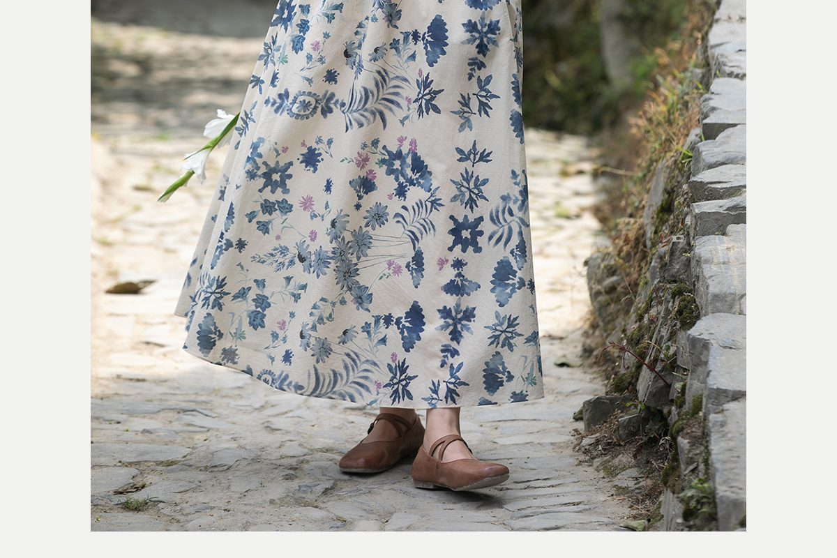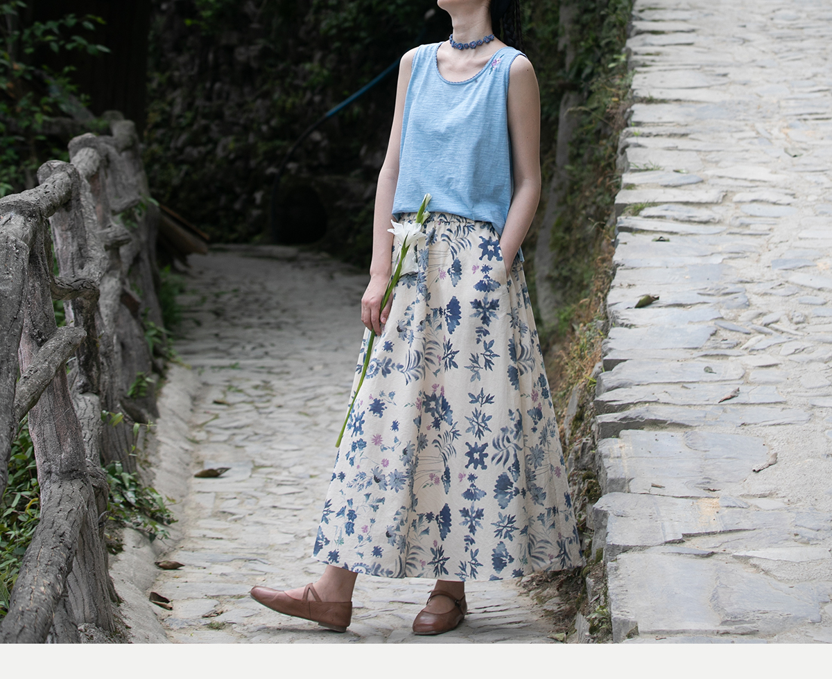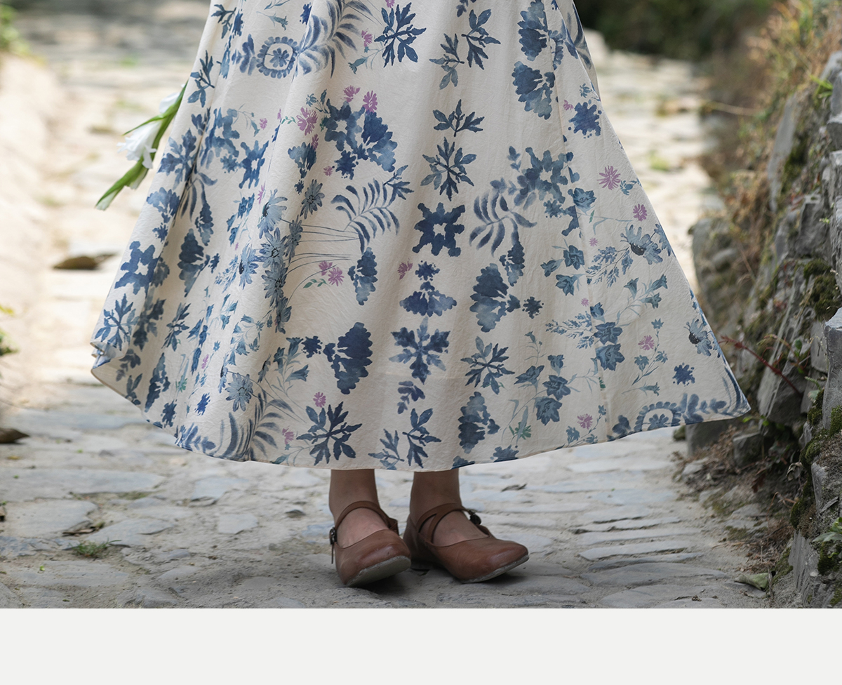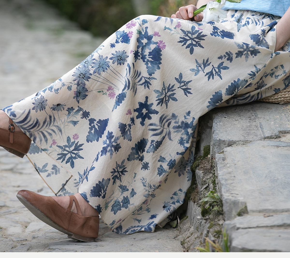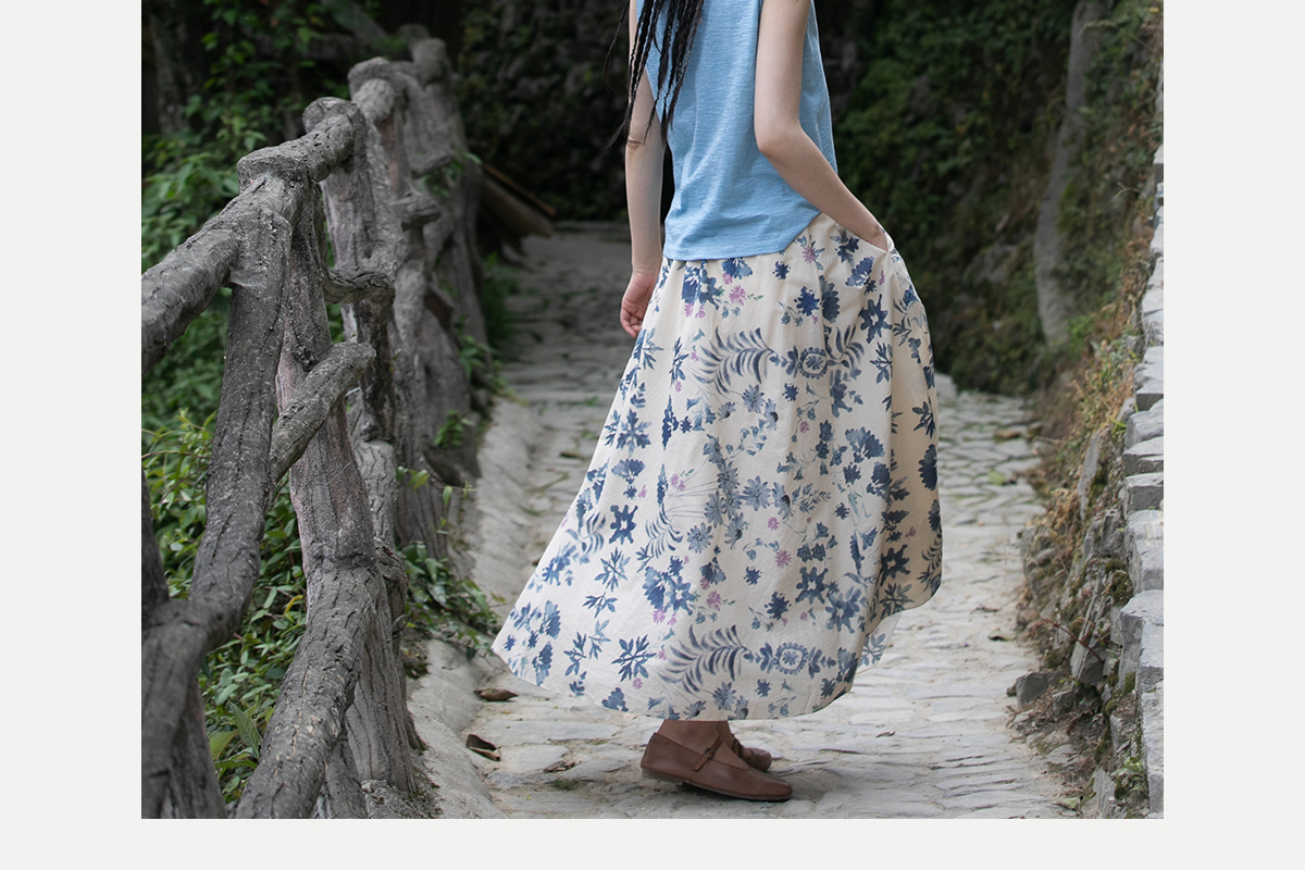 牧衣游原创 手绘印花纯棉半身裙宽松轻薄质朴文艺百搭半裙 禧可