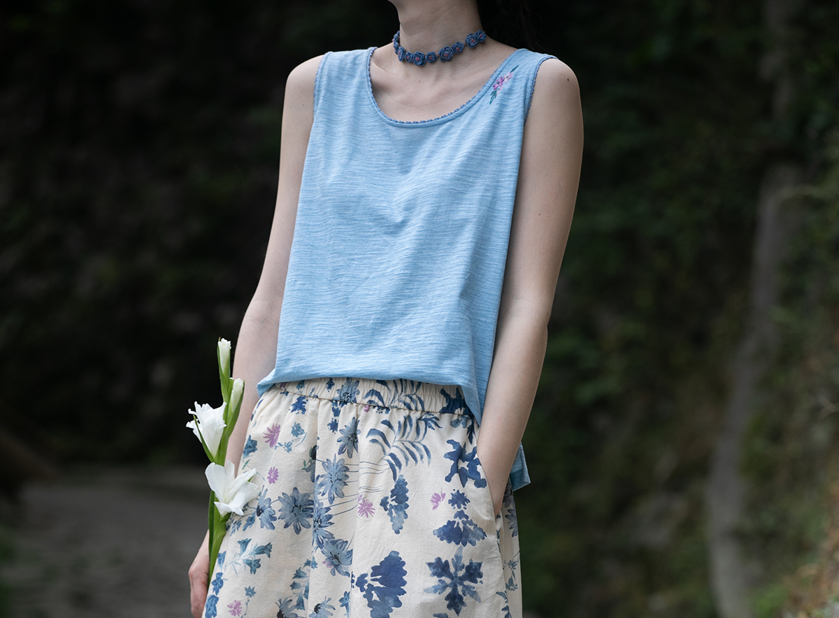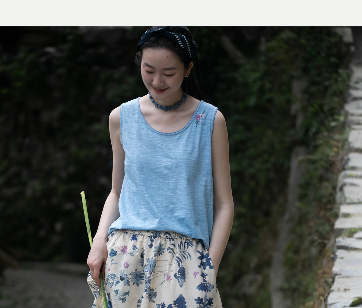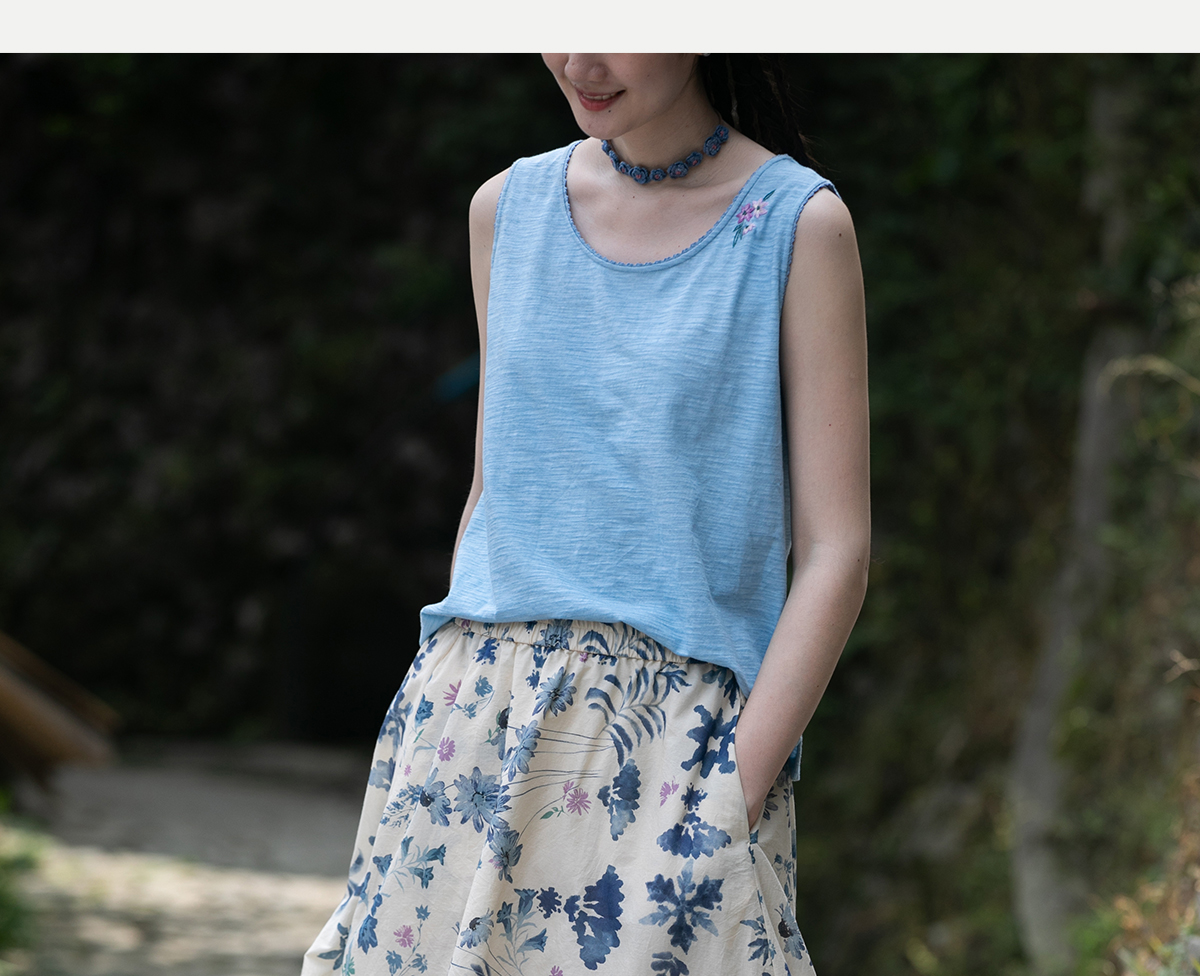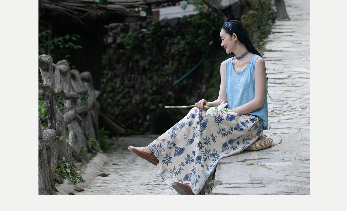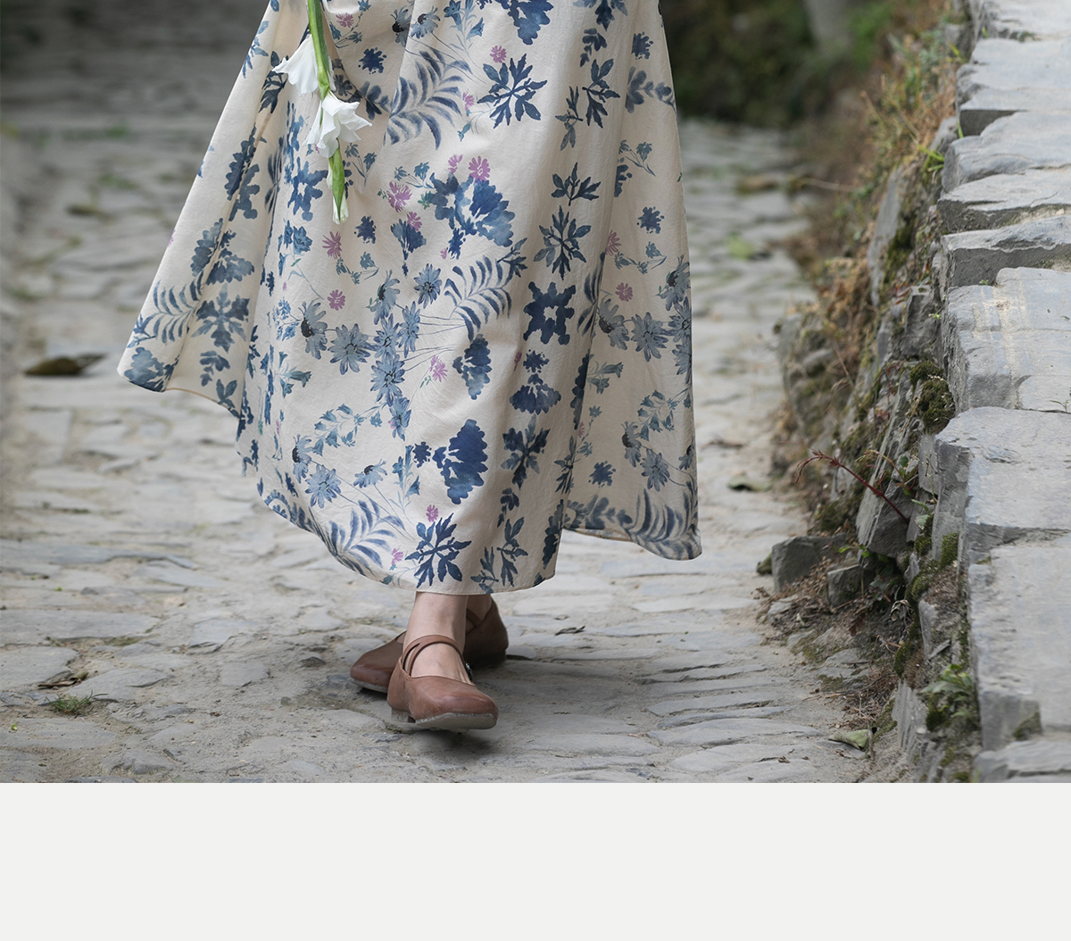 牧衣游原创 手绘印花纯棉半身裙宽松轻薄质朴文艺百搭半裙 禧可