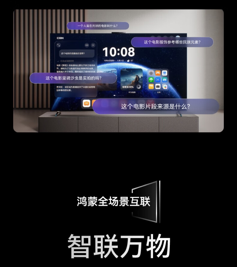 华为智慧屏 MateTV 98吋(HD98EDIH)旗舰手机级性能 灵犀创新交互 鸿鹄Vivid画质 4K超高清液晶平板电视机 95英寸