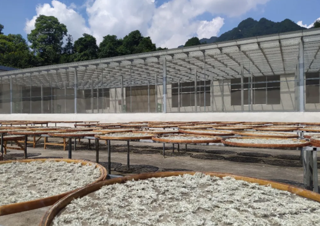 烘干后,为了能让水分充分发挥,采用筛网隔空自然晾晒。