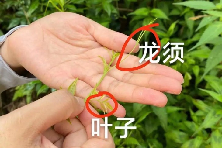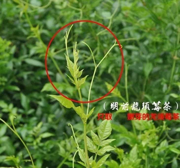 芽尖就是以藤和龙须为主,采摘是藤+嫩芽叶一起。