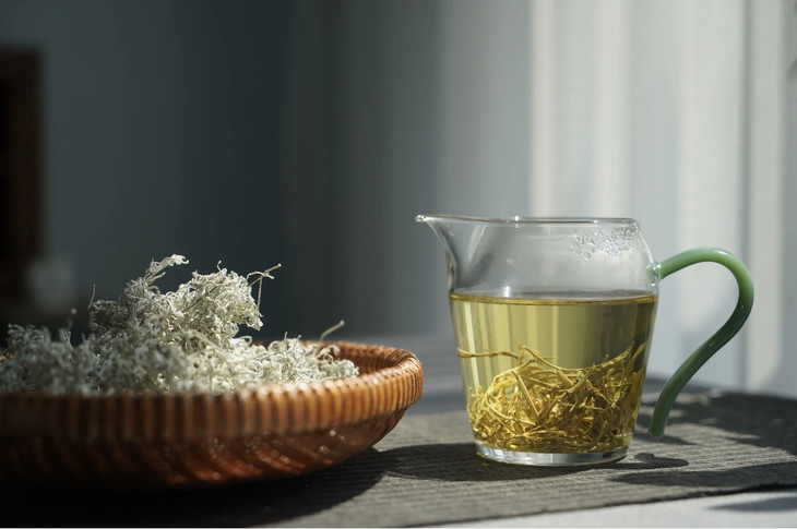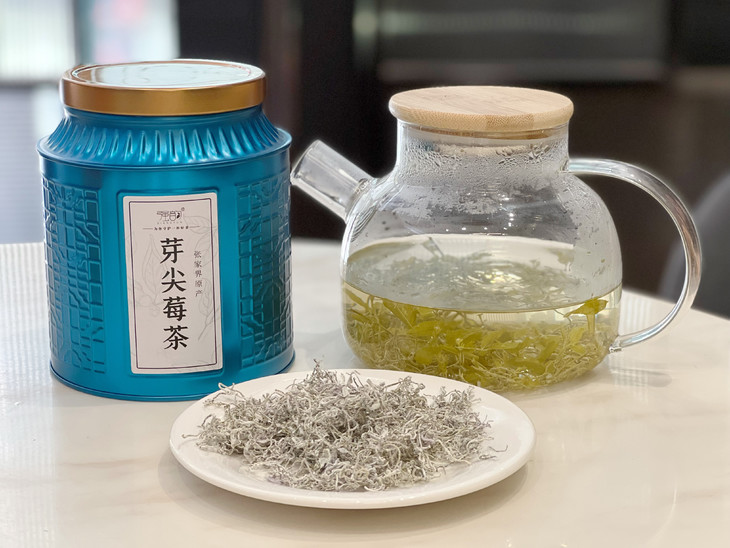 雪白如丝的莓茶,用开水冲泡后香气扑鼻,喝一口心旷神怡