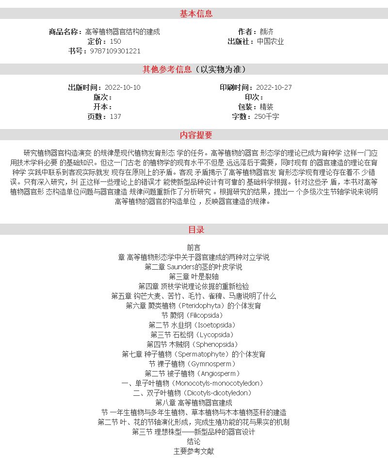 高等植物器官结构的建成【官方正版,可开发票,下单时留开票信息和电子邮箱】