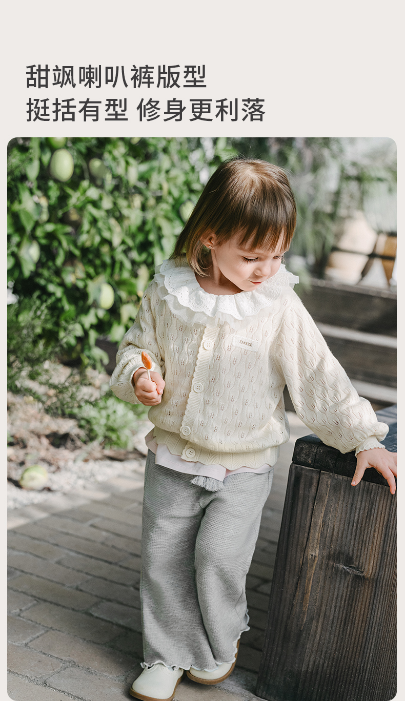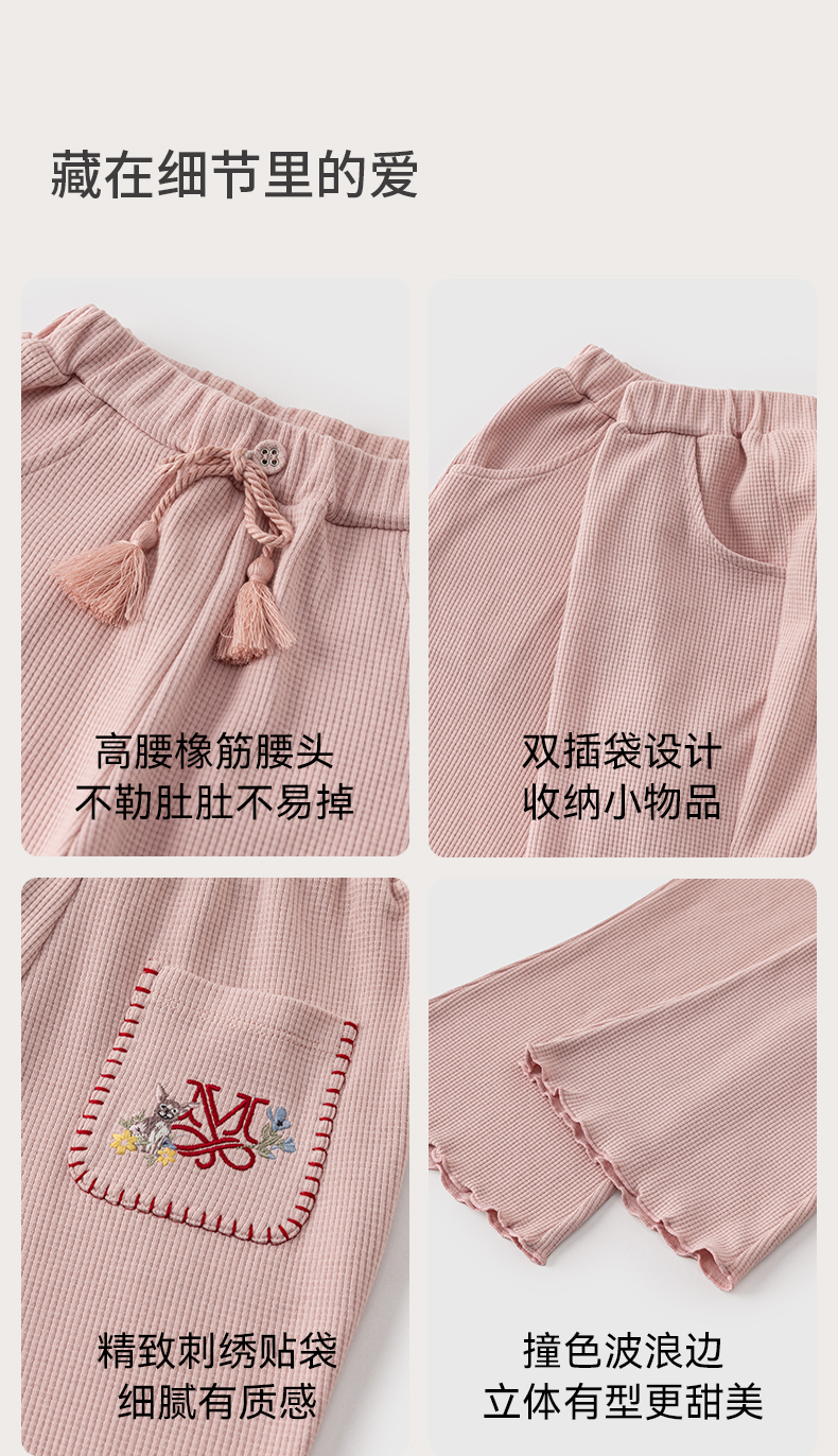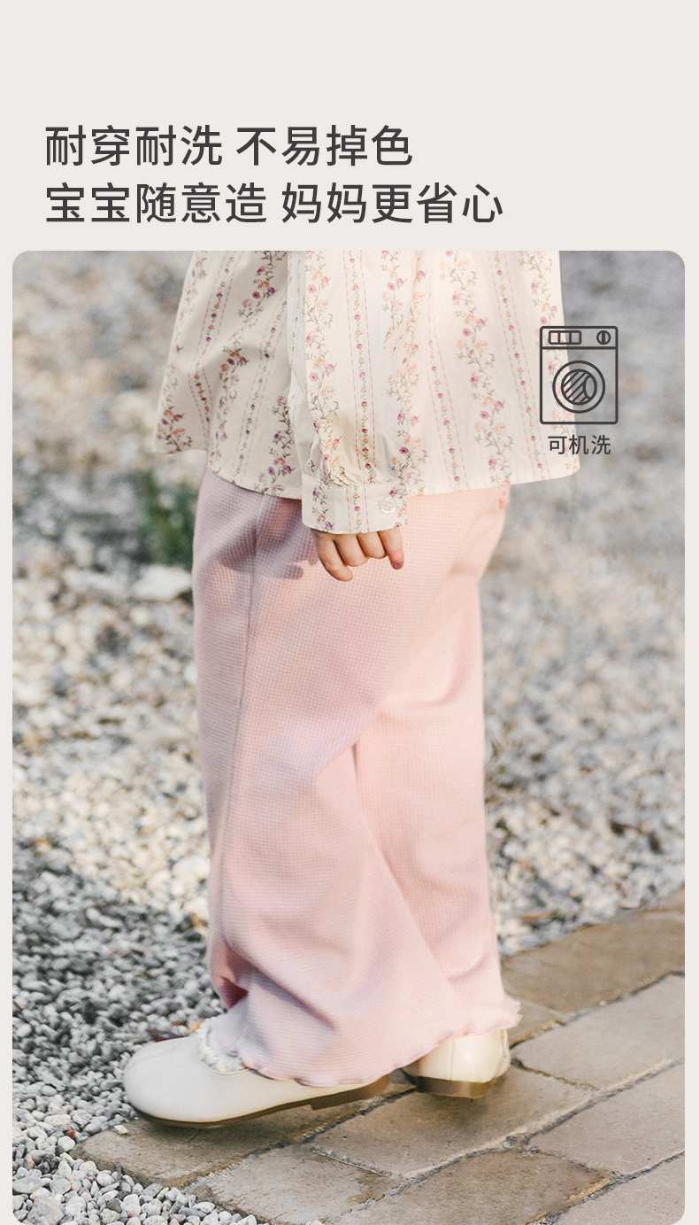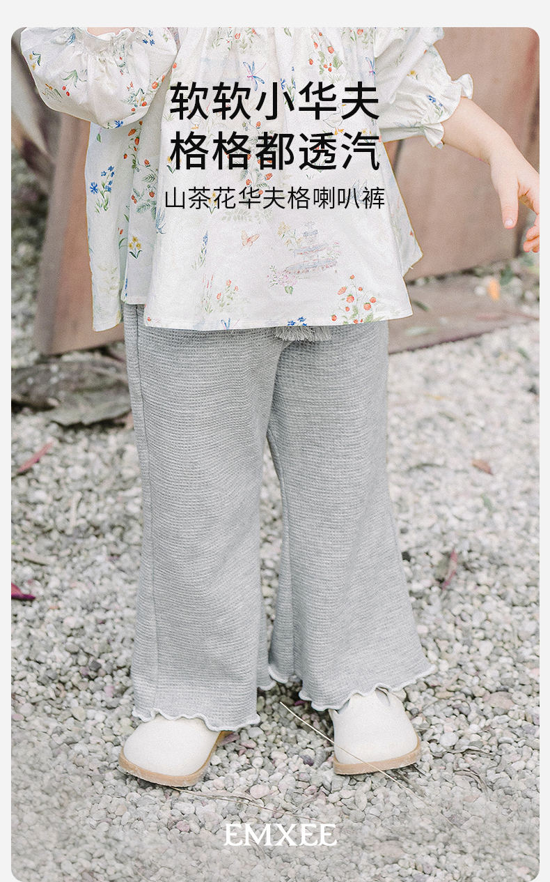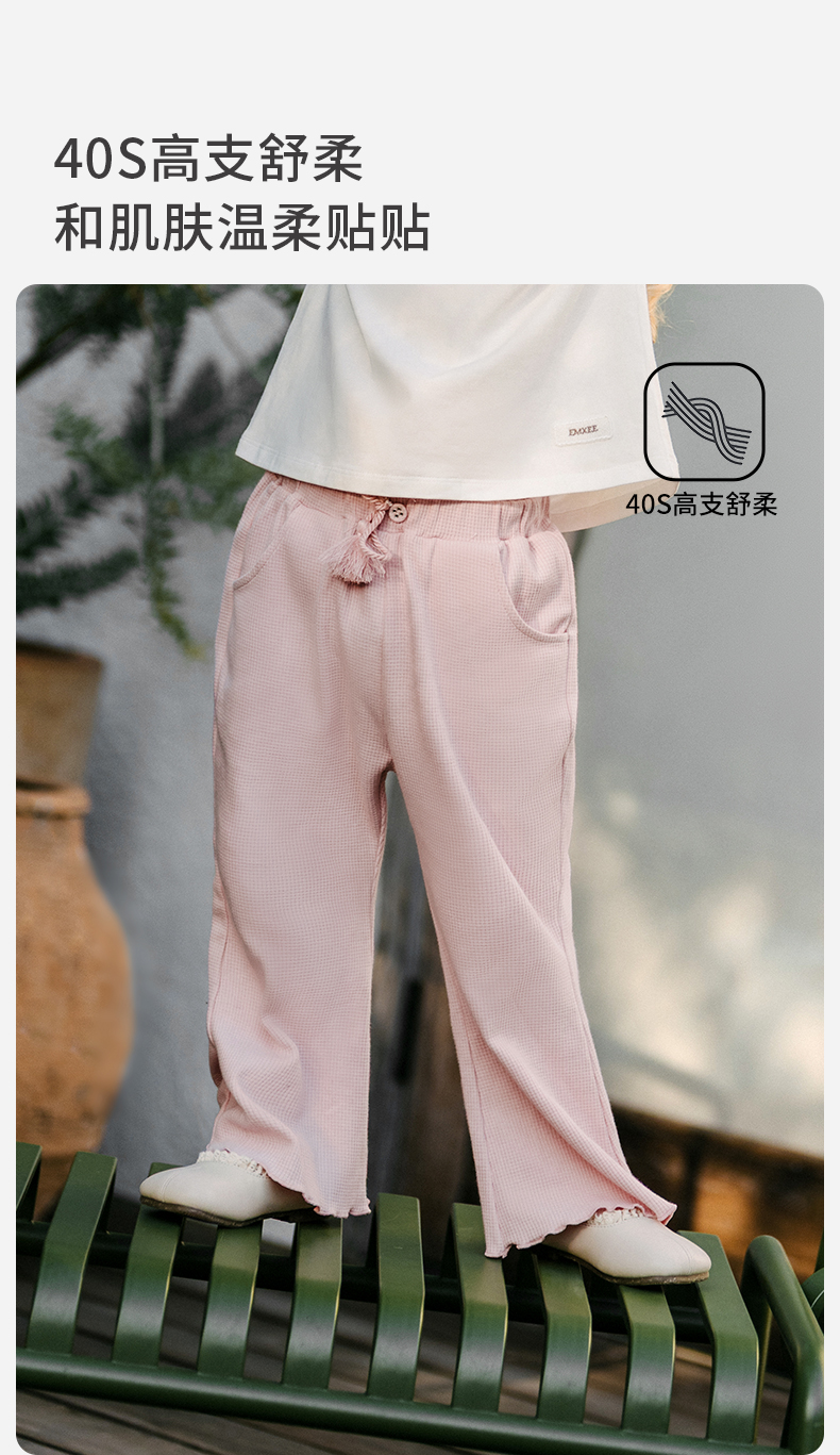 【宝宝服饰】嫚熙童装儿童华夫格卫裤2026新款春夏季裤子女童喇叭裤宝宝阔腿裤