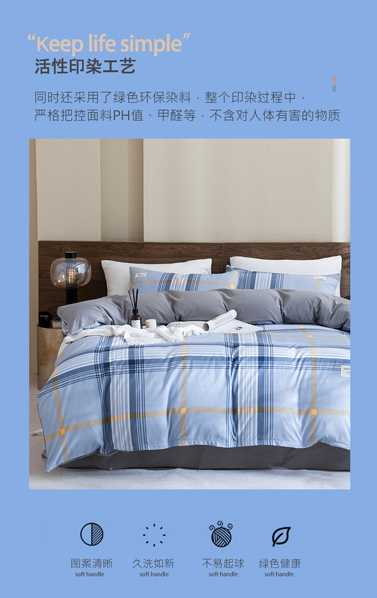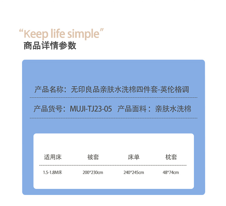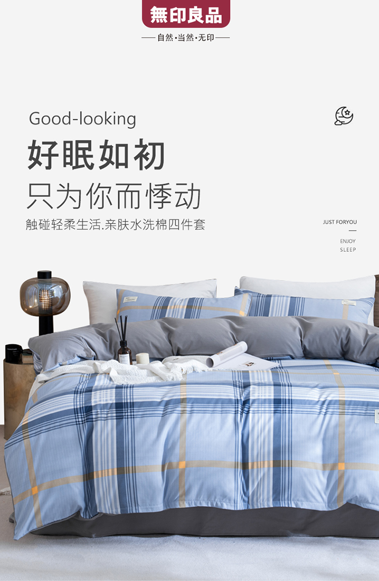 無印良品亲肤水洗棉四件套-英伦格调