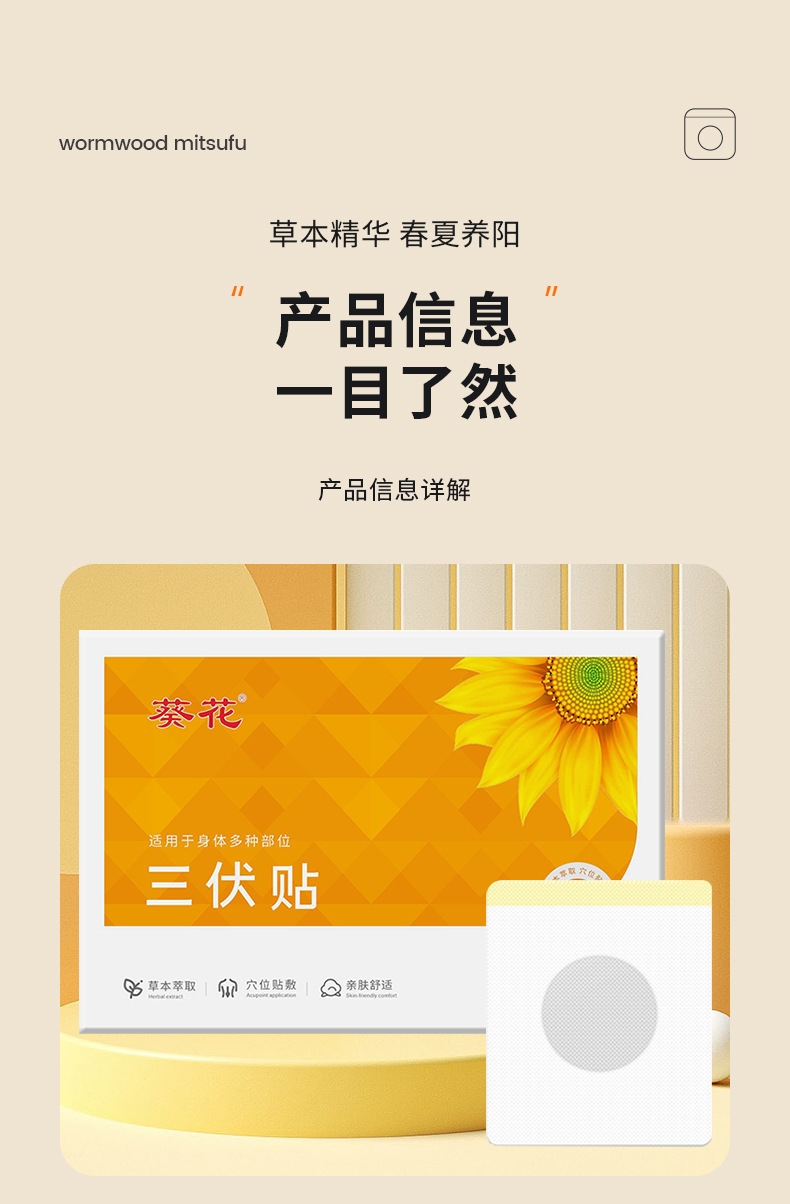 葵花三伏贴 夏季三九贴30贴艾草贴草本养身家用穴位贴三伏贴南京同仁堂三伏贴