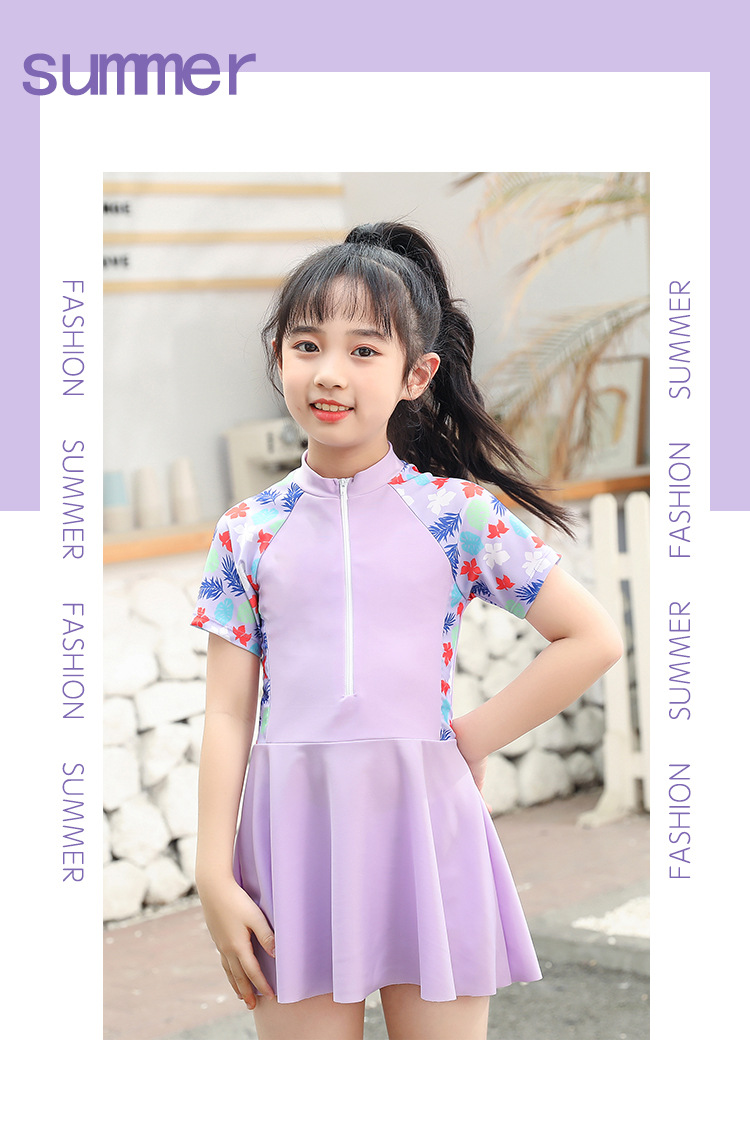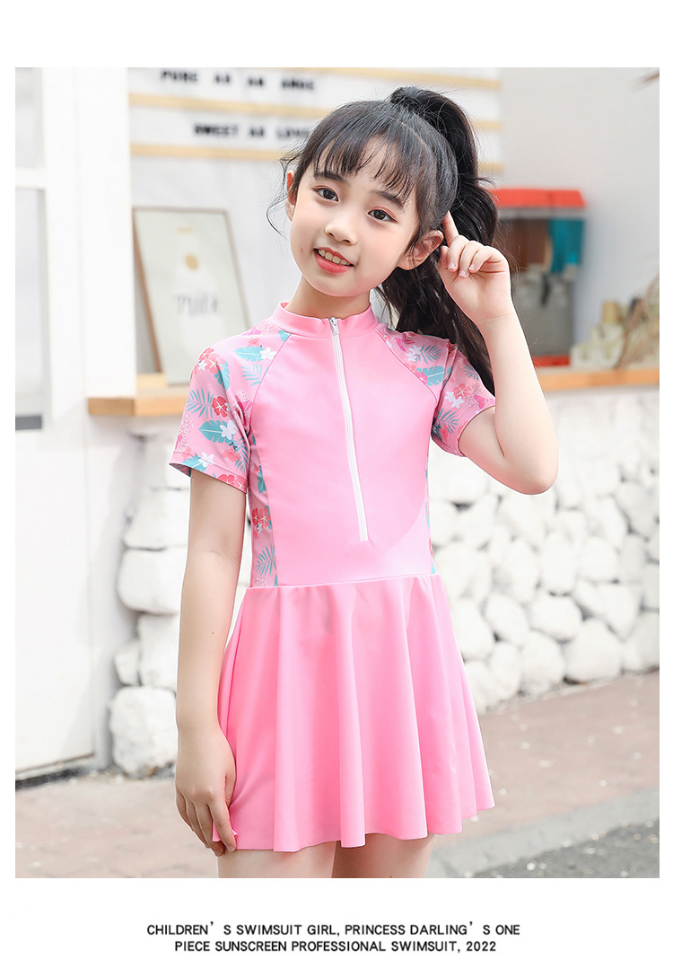 儿童泳衣女孩连体女童ins游泳衣专业中大童保守可爱裙式泳装