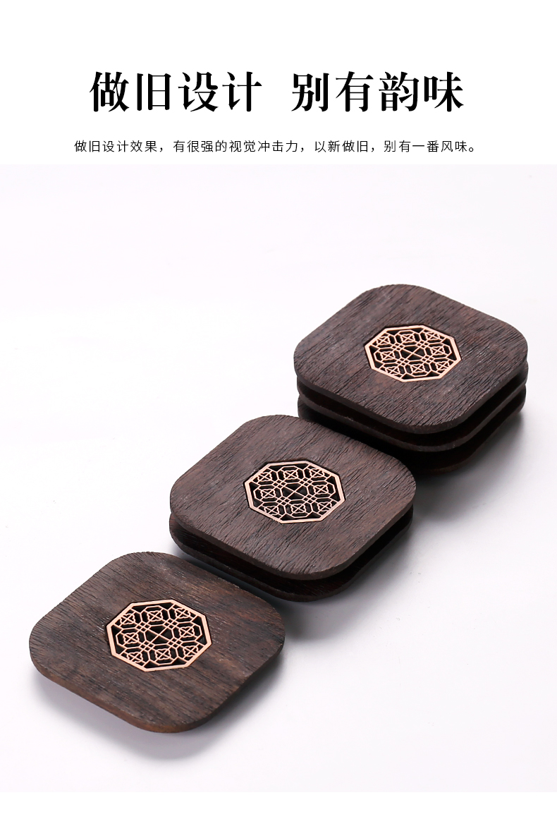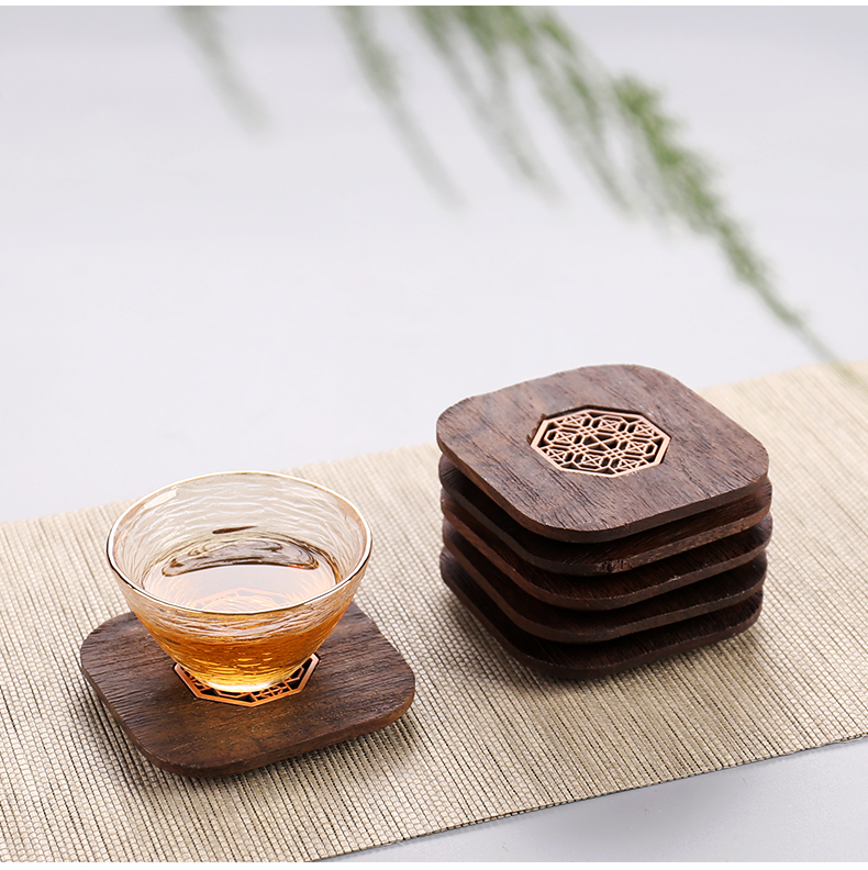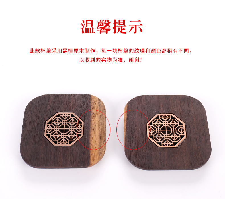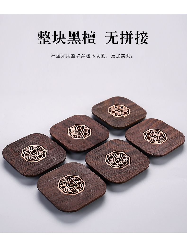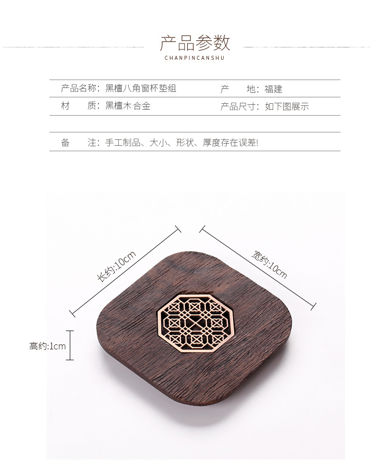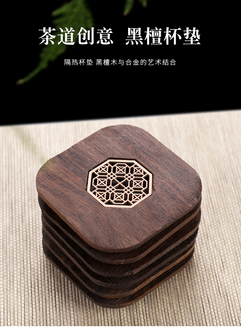 台隆金黑檀八角窗花杯垫(6片)