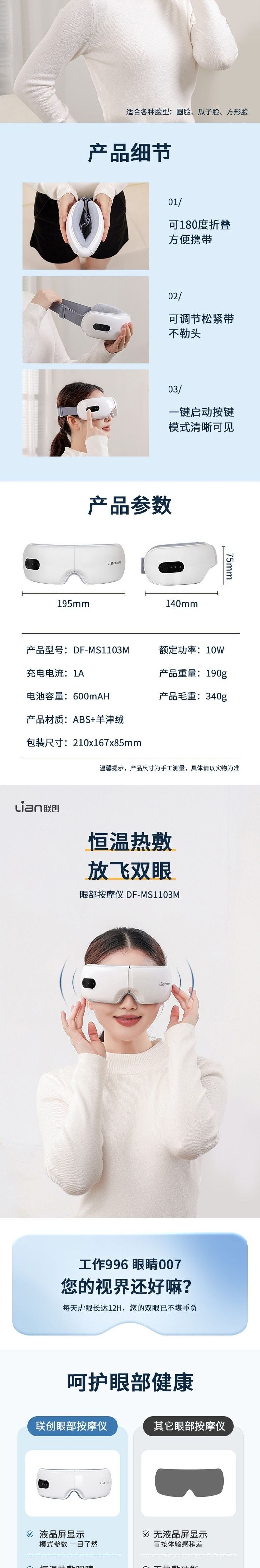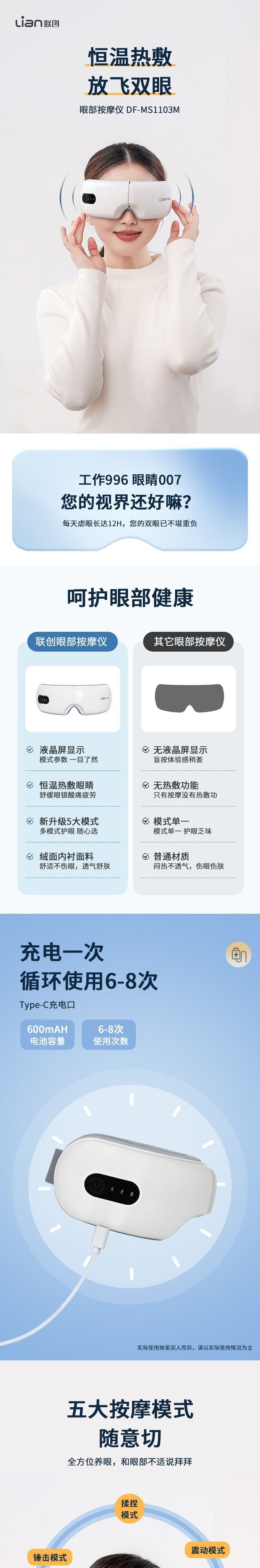 联创 眼部按摩仪 DF-MS1103M 护眼仪热敷眼罩缓解疲劳