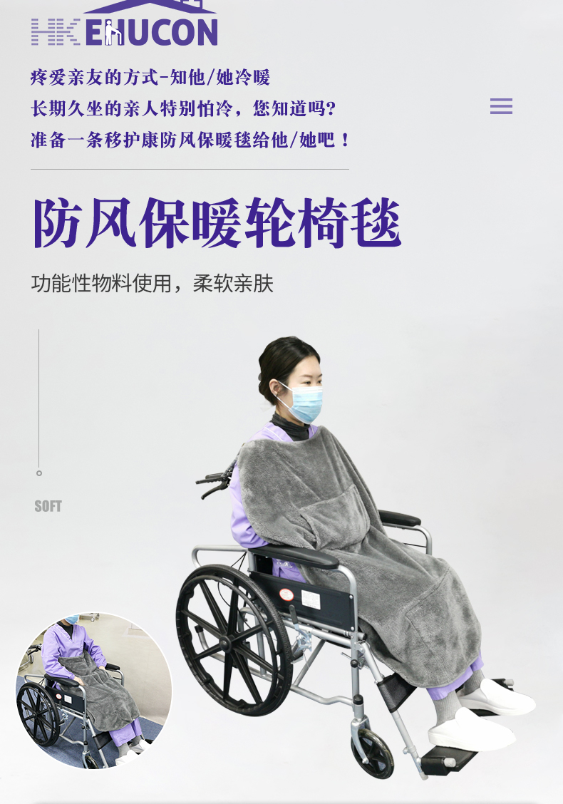 移护康法兰绒防风保暖轮椅毯老人居家护理懒人简易收纳长短款毛毯