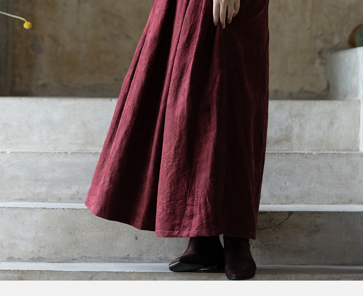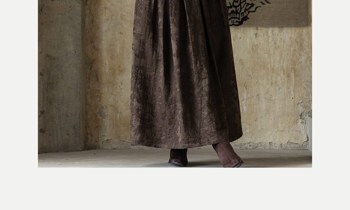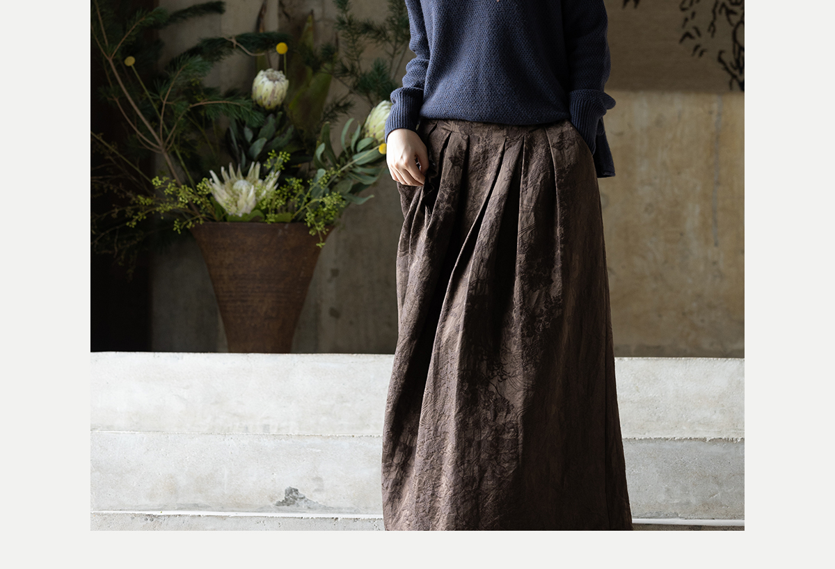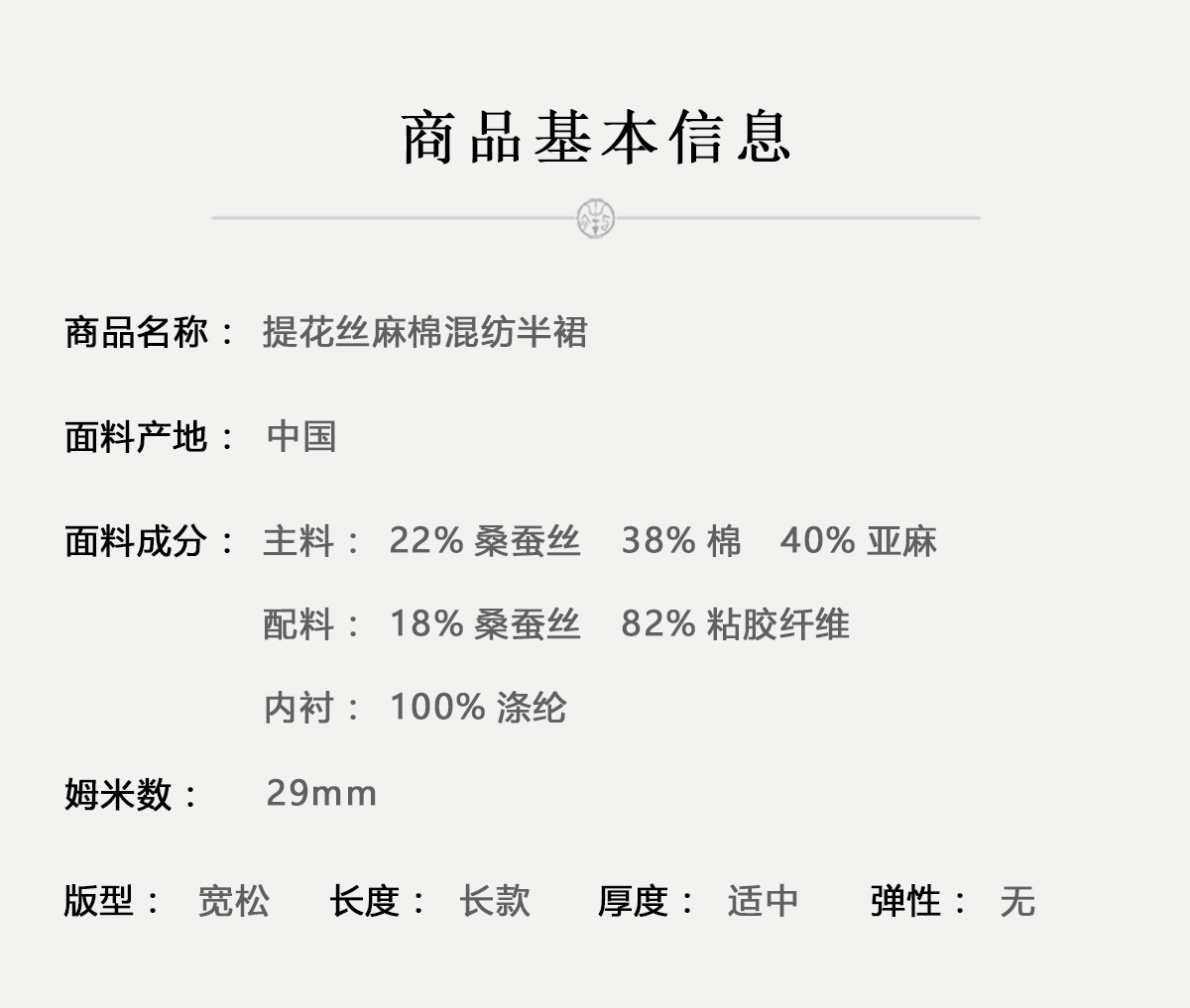 牧衣游原创 提花丝麻棉混纺半裙宽松百搭复古文艺A字半身裙 烬雪