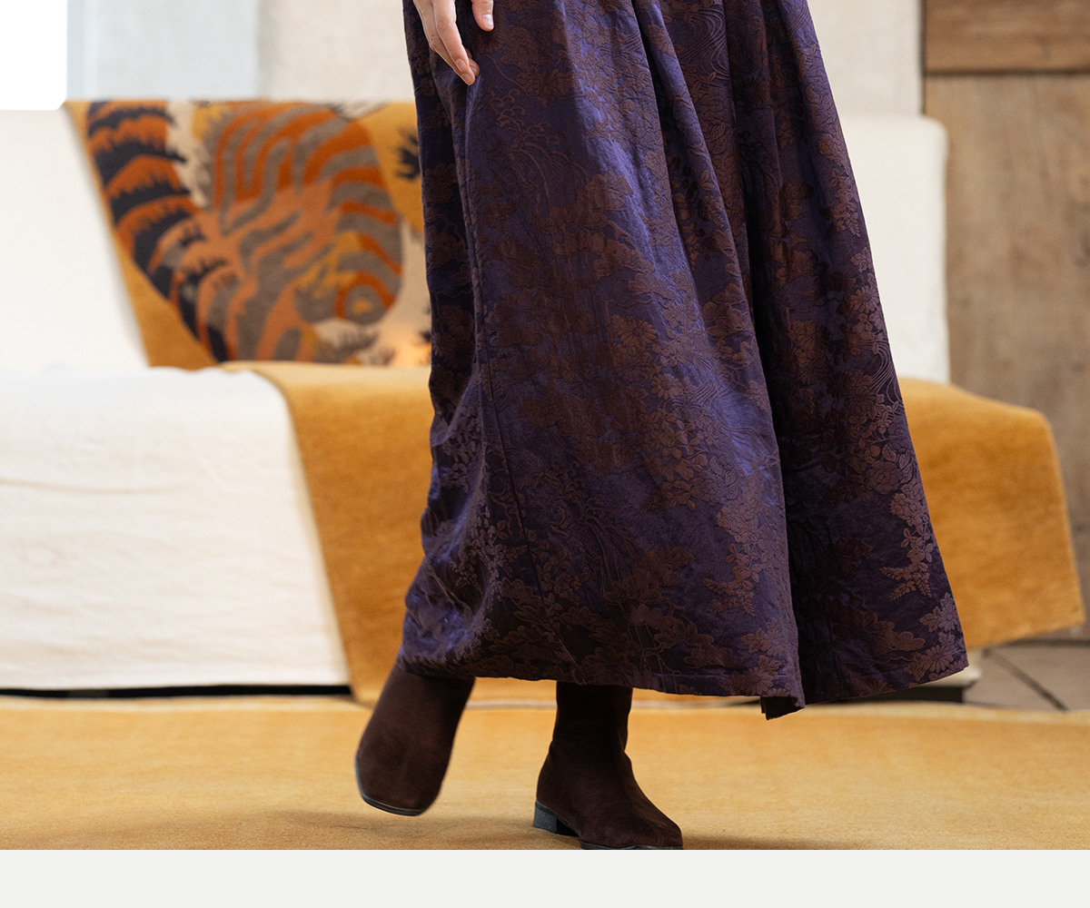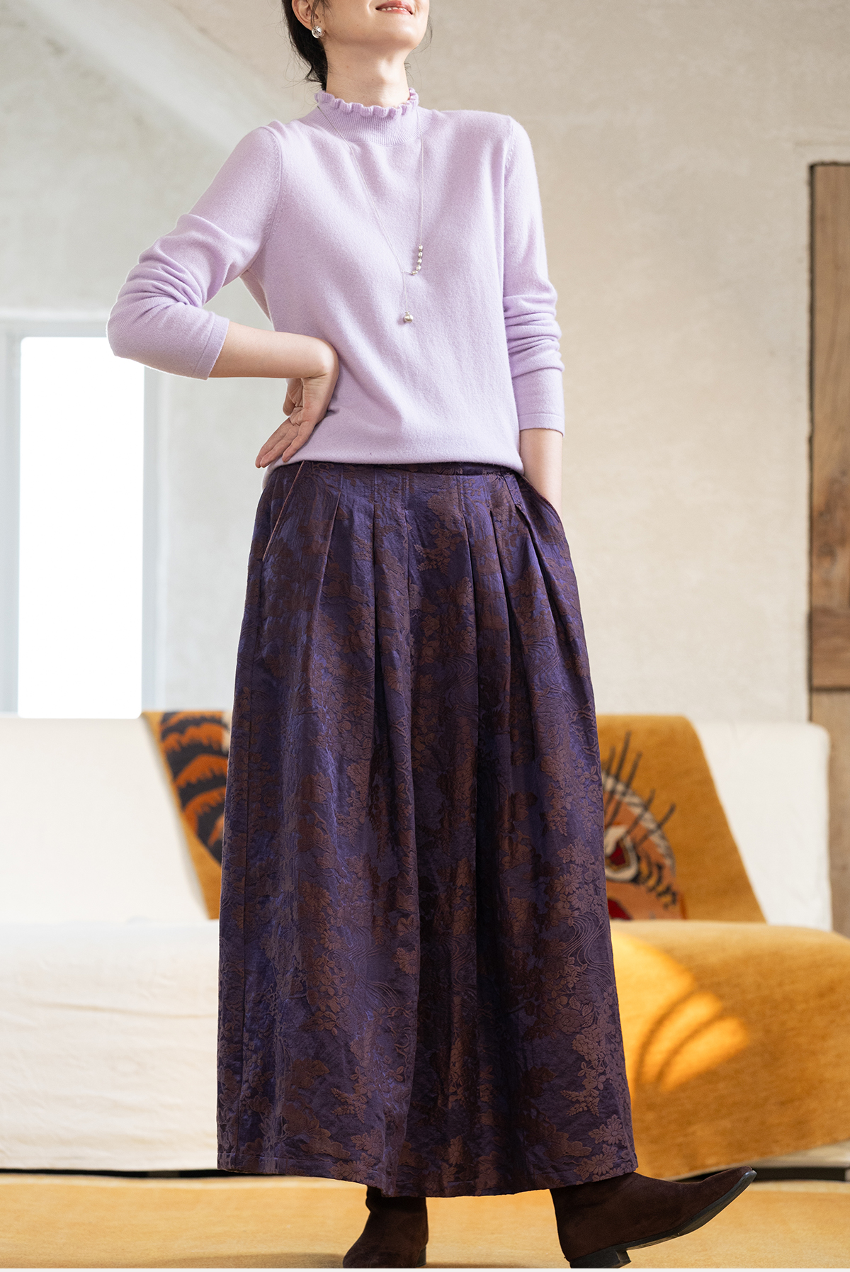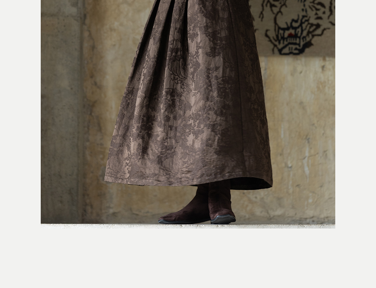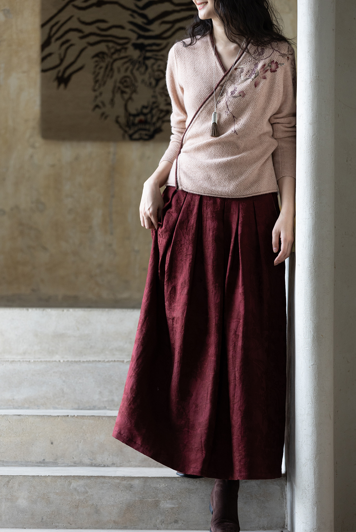 牧衣游原创 提花丝麻棉混纺半裙宽松百搭复古文艺A字半身裙 烬雪