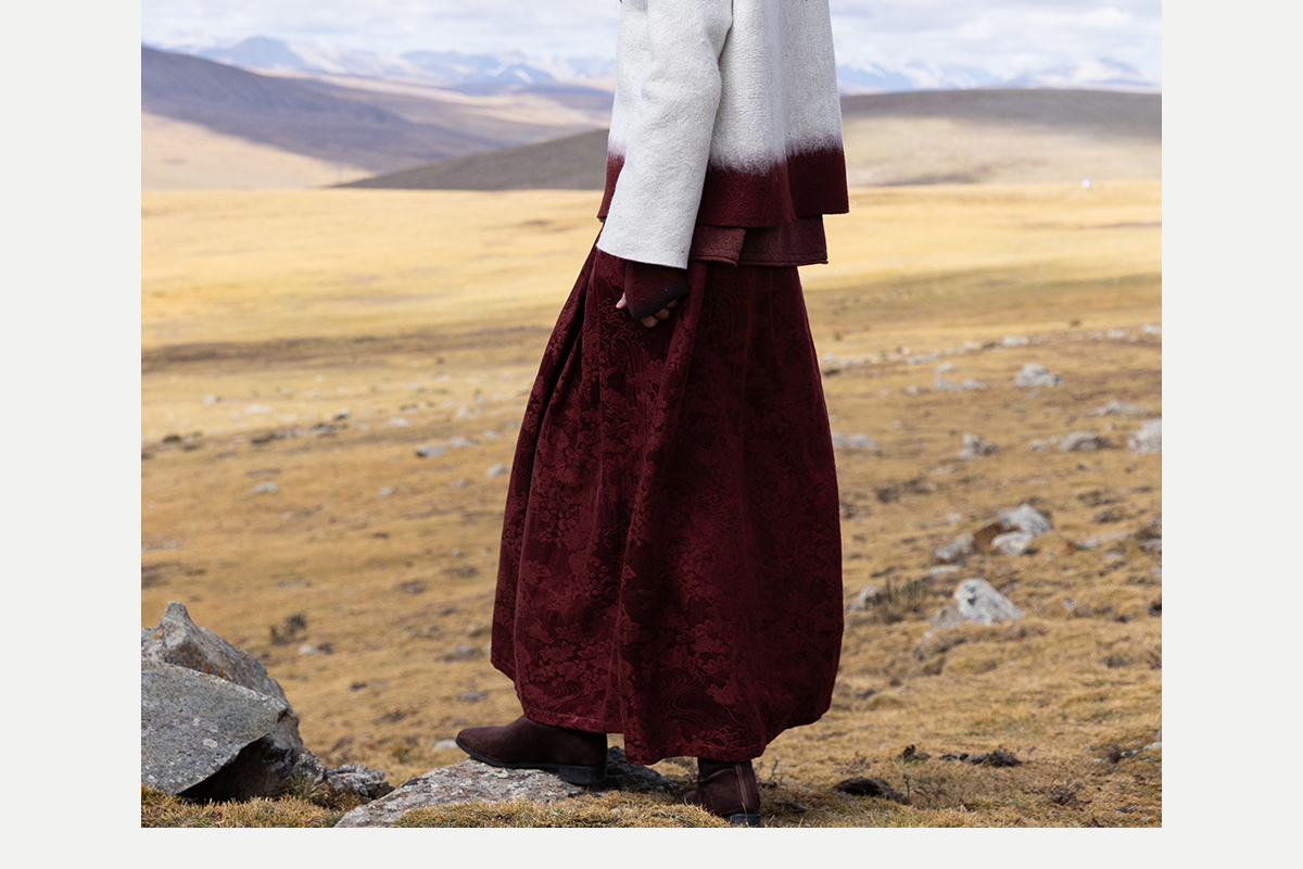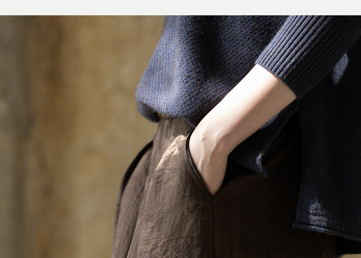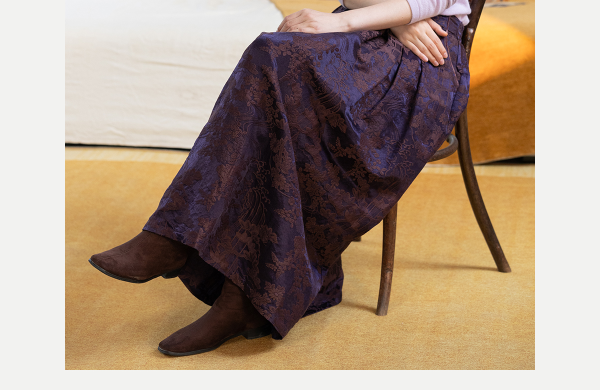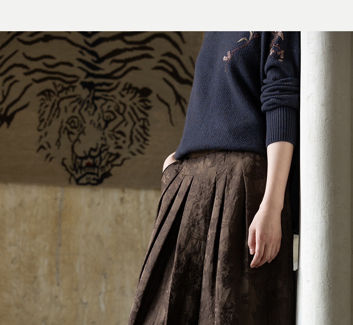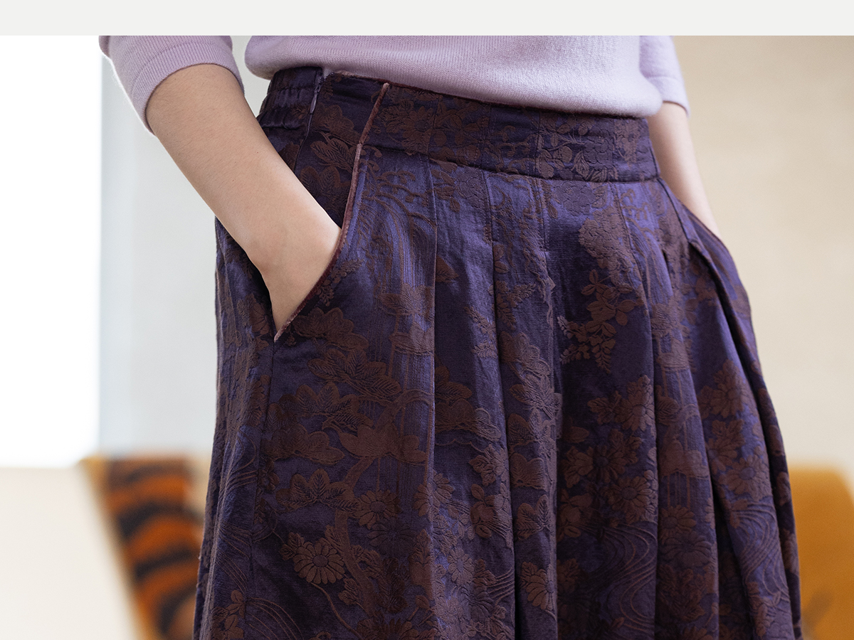 牧衣游原创 提花丝麻棉混纺半裙宽松百搭复古文艺A字半身裙 烬雪