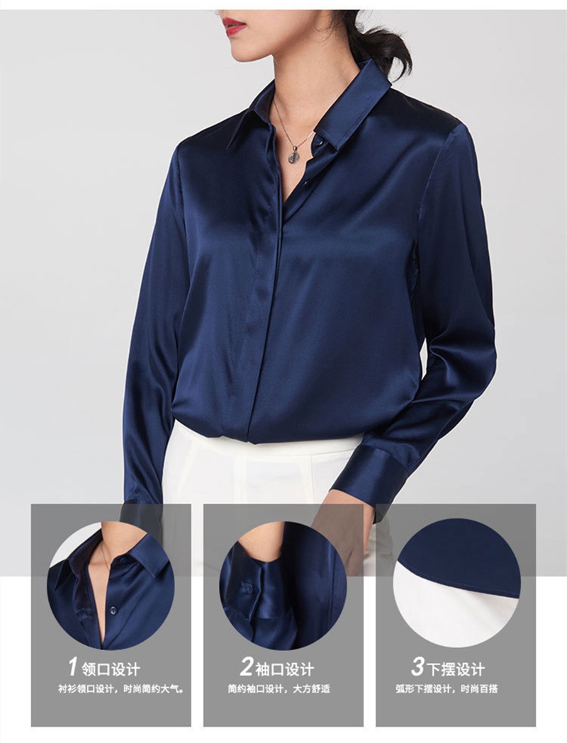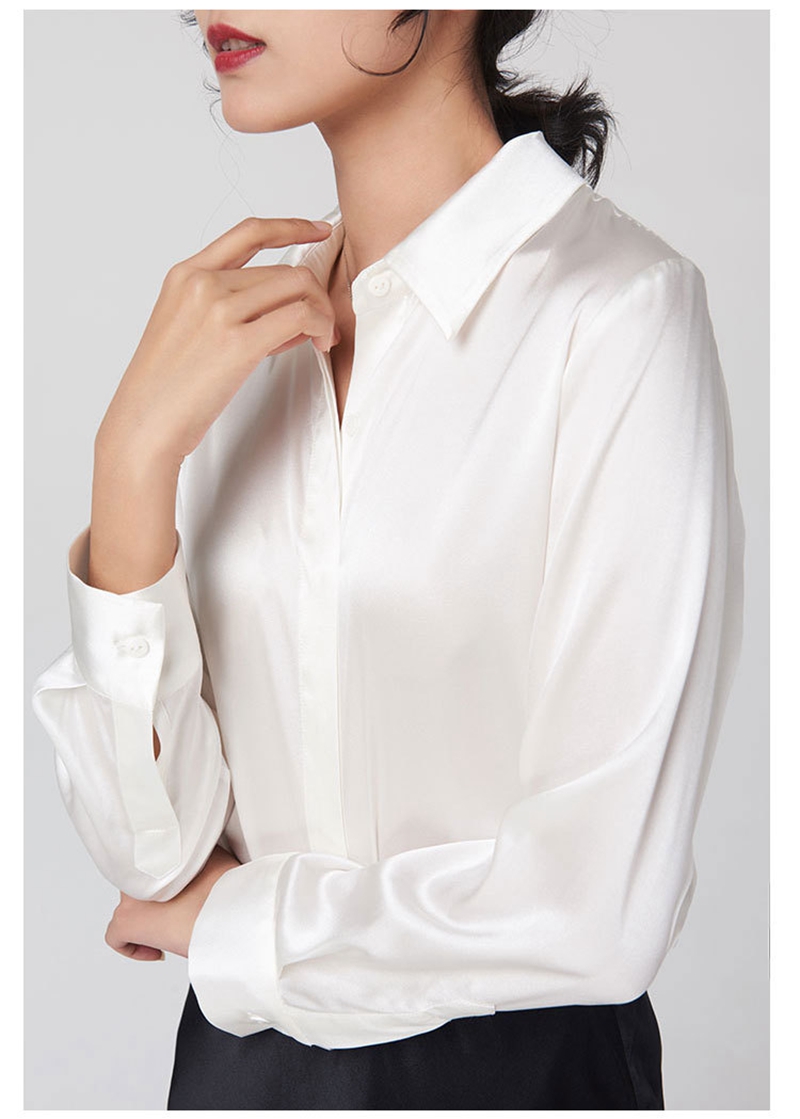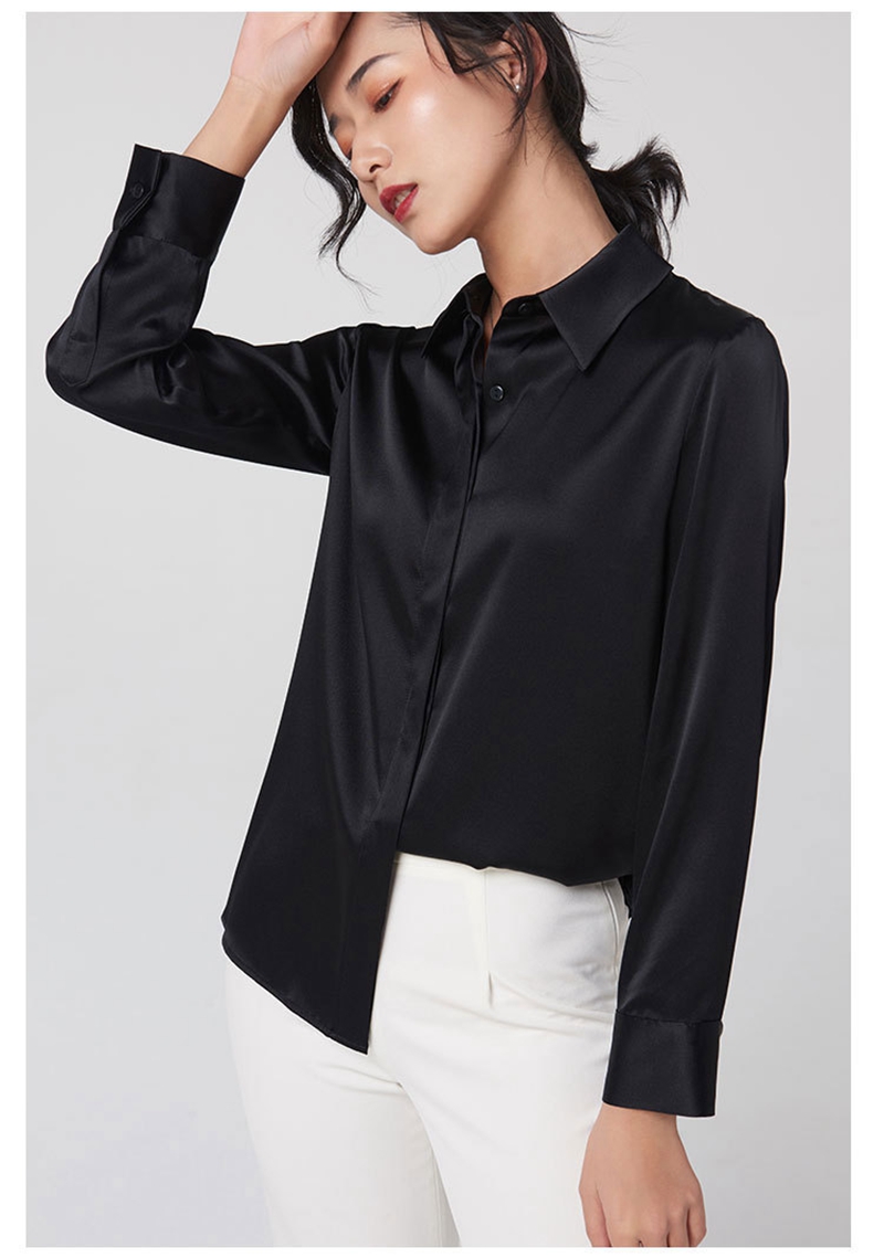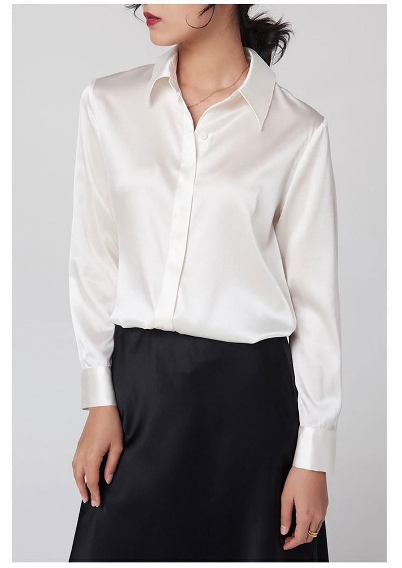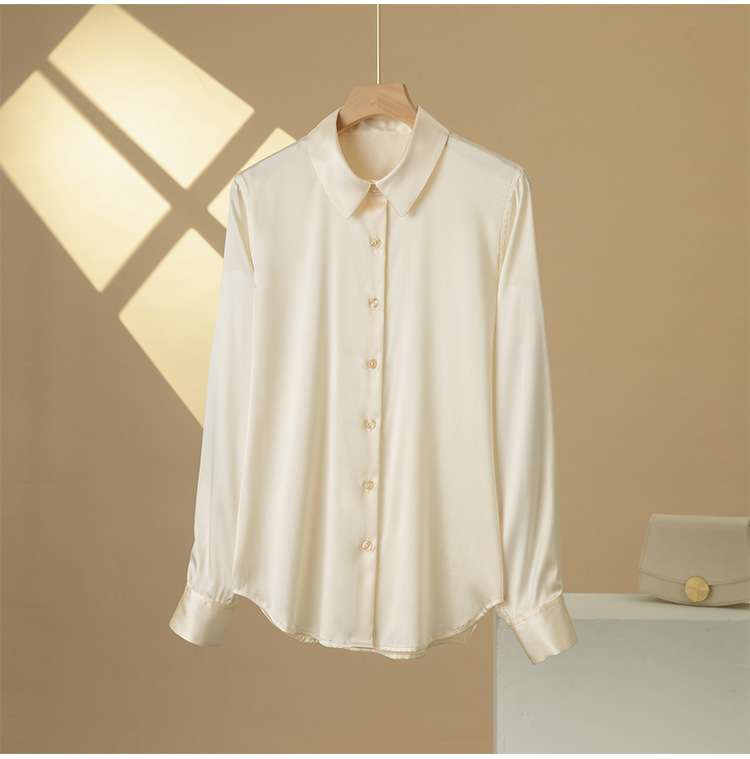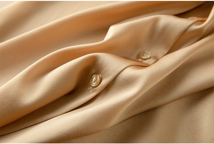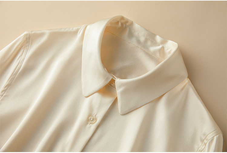 重磅弹力缎翻领长袖单排扣真丝衬衫