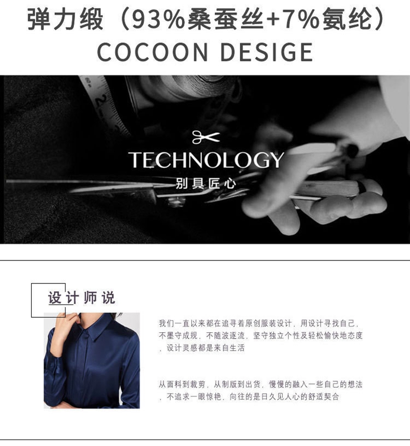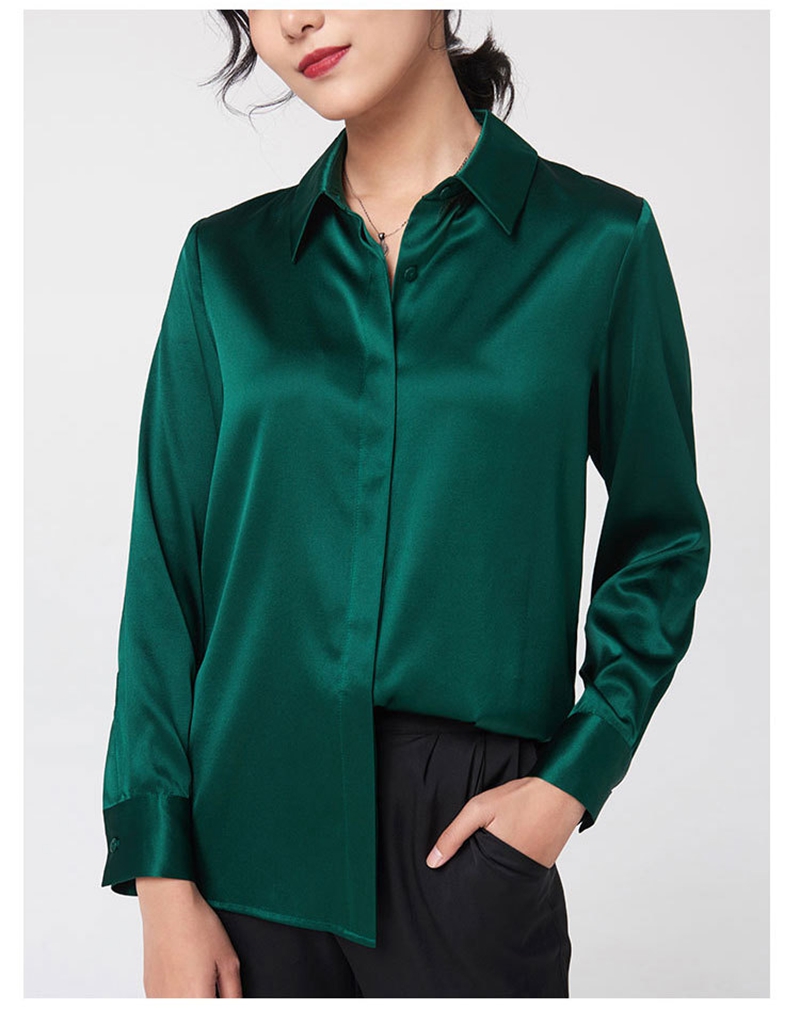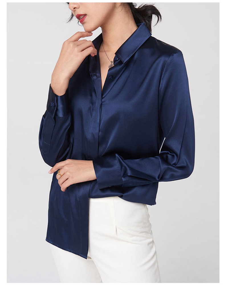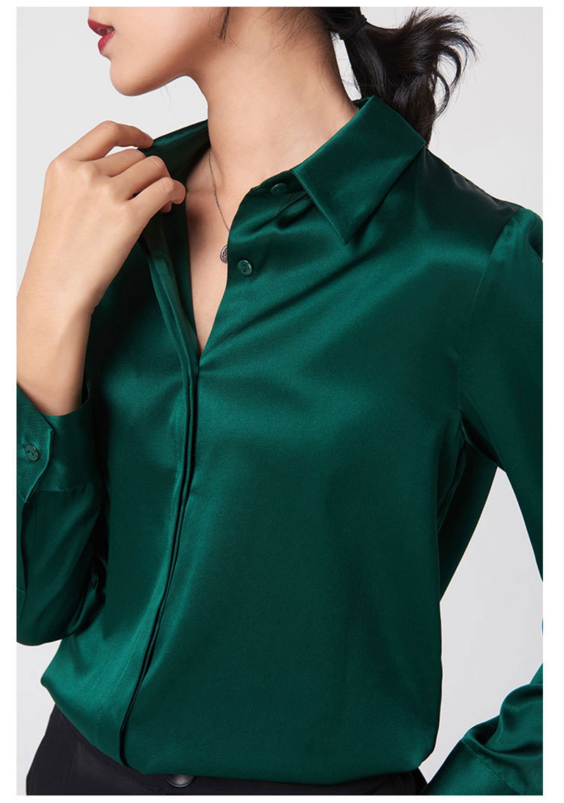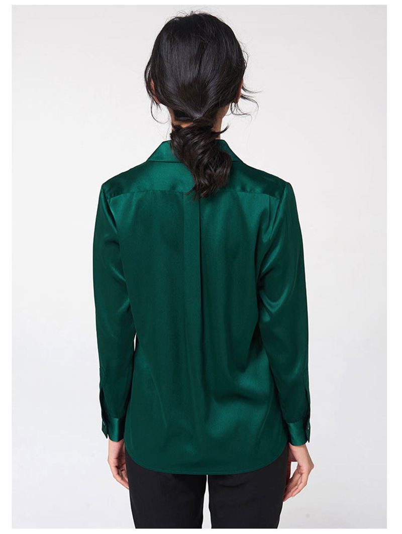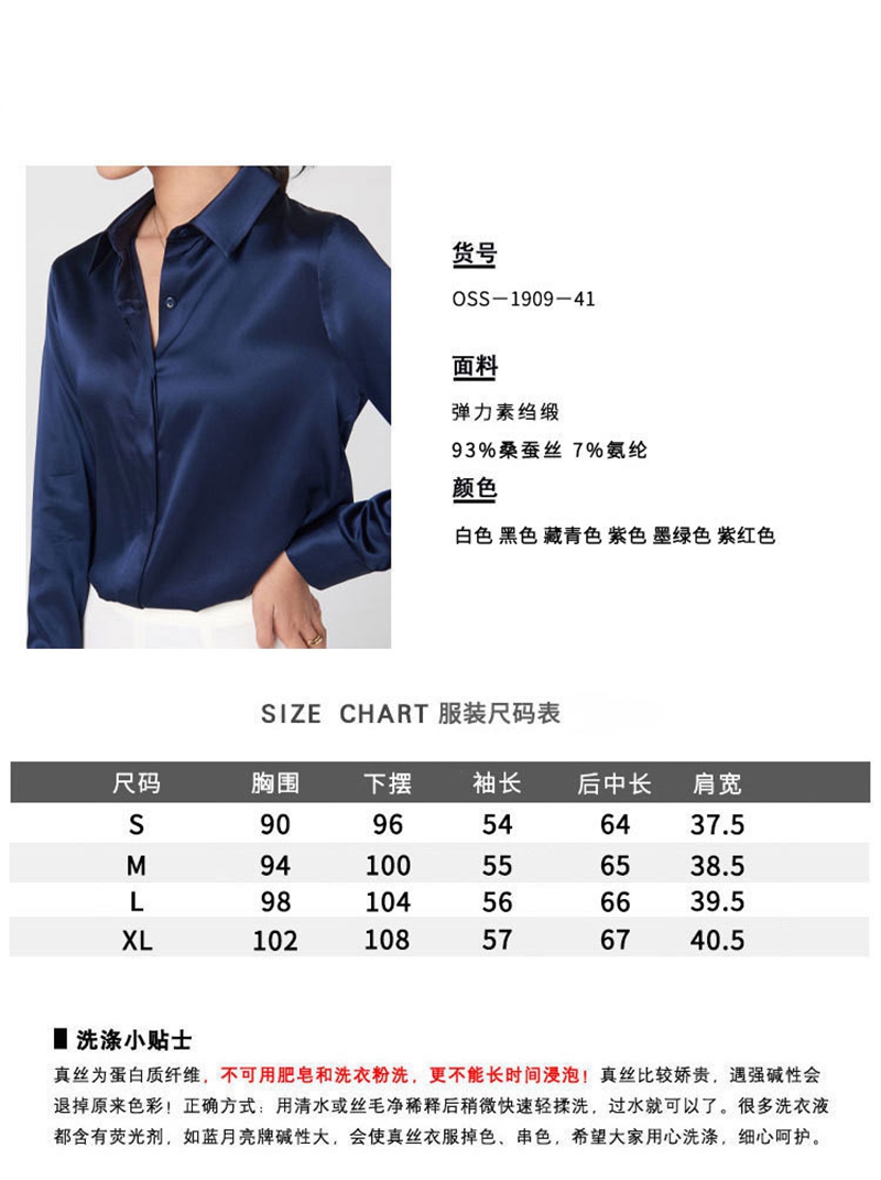 重磅弹力缎翻领长袖单排扣真丝衬衫