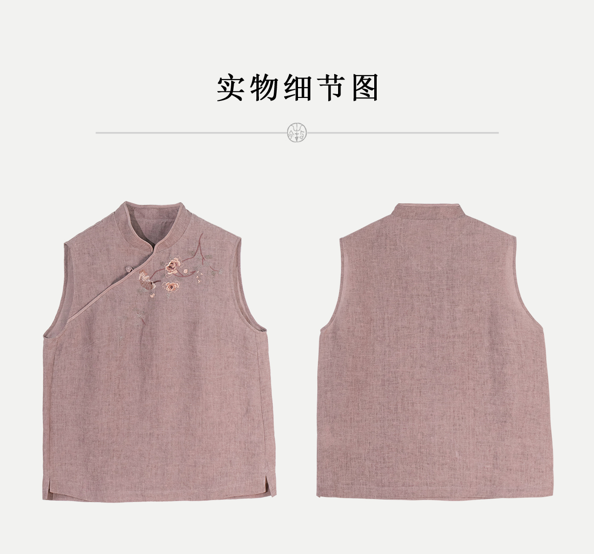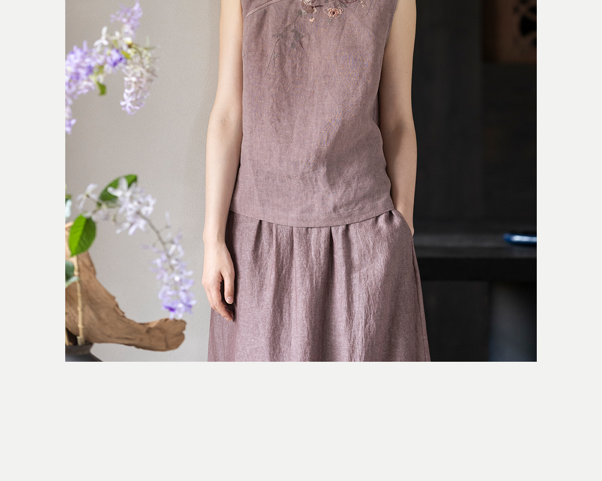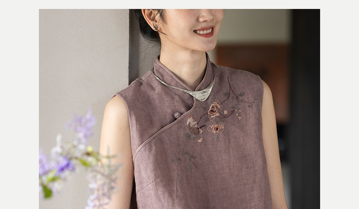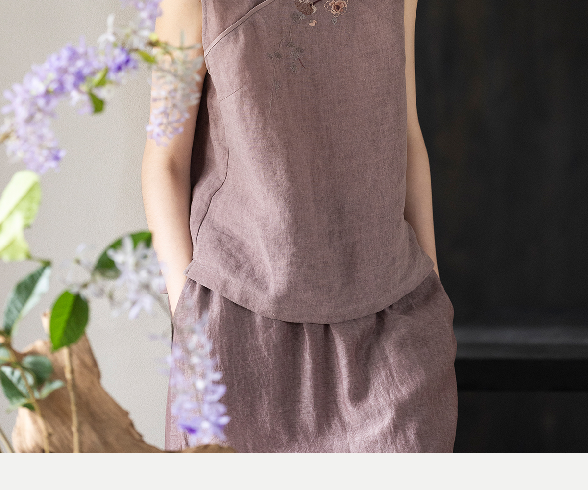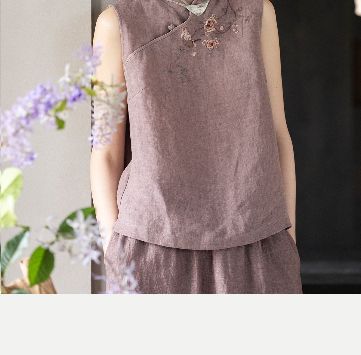 牧衣游原创 手工刺绣汉麻炒色马夹轻薄复古中式无袖上衣 倾玉盘