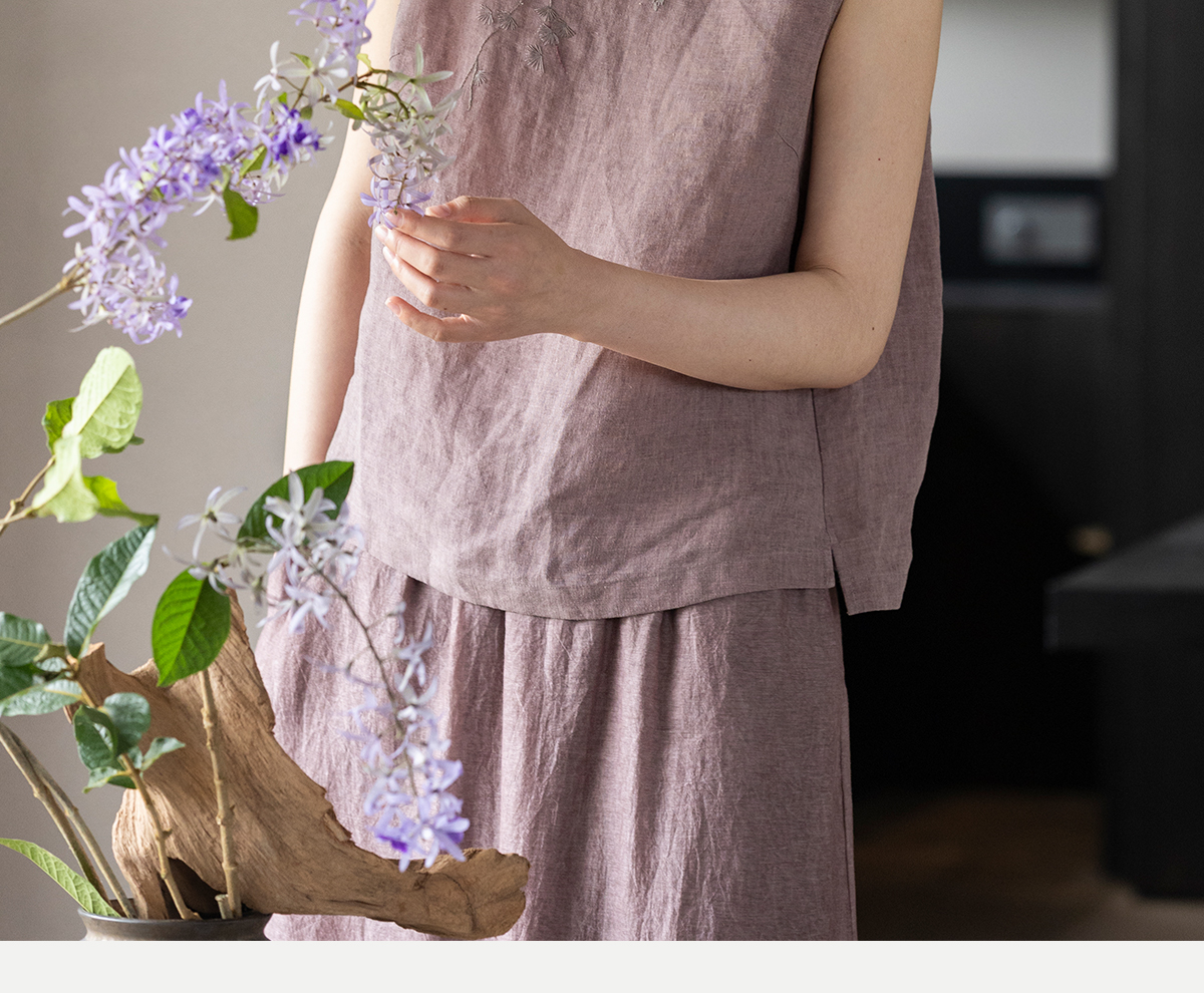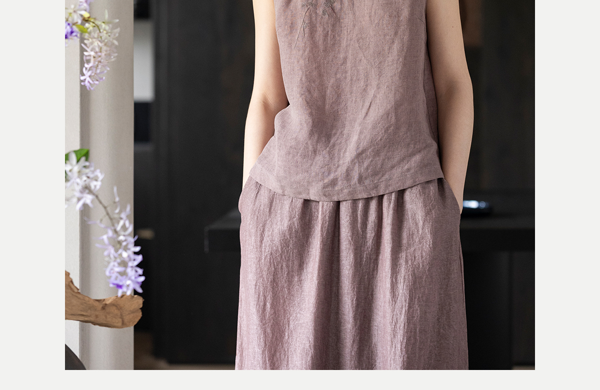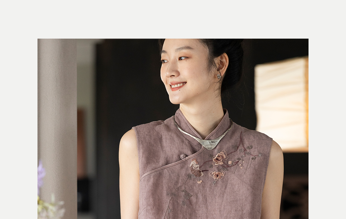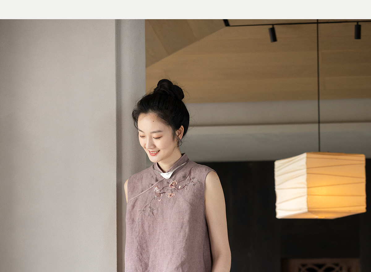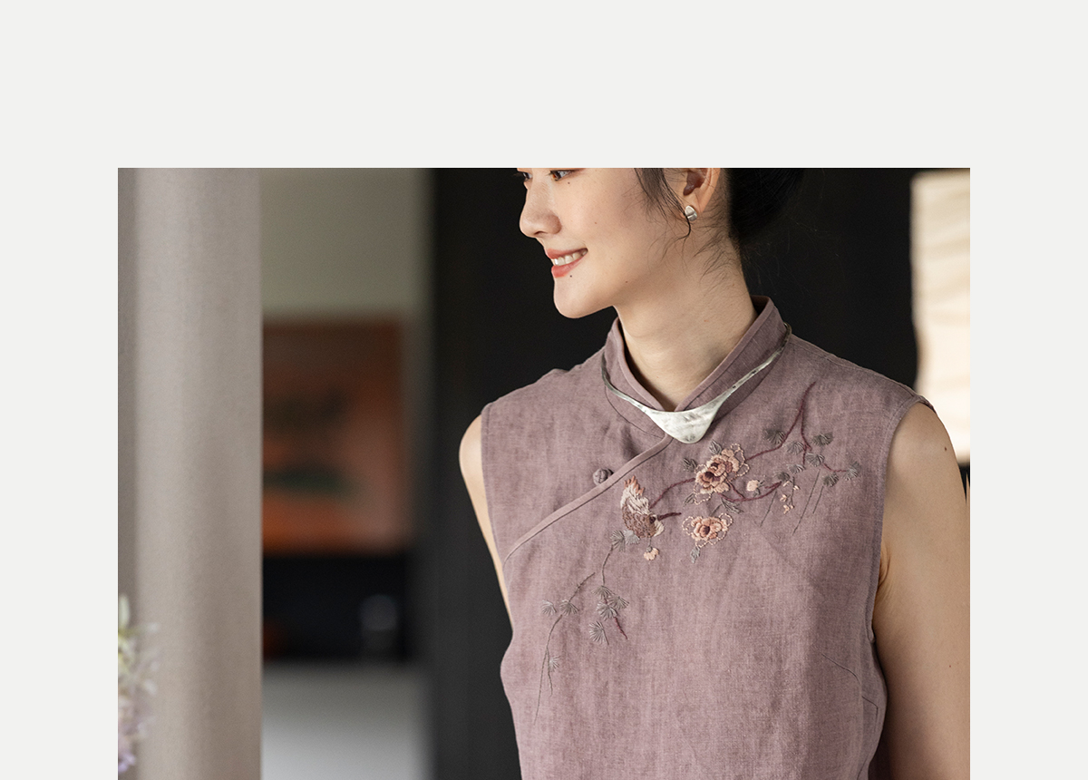 牧衣游原创 手工刺绣汉麻炒色马夹轻薄复古中式无袖上衣 倾玉盘