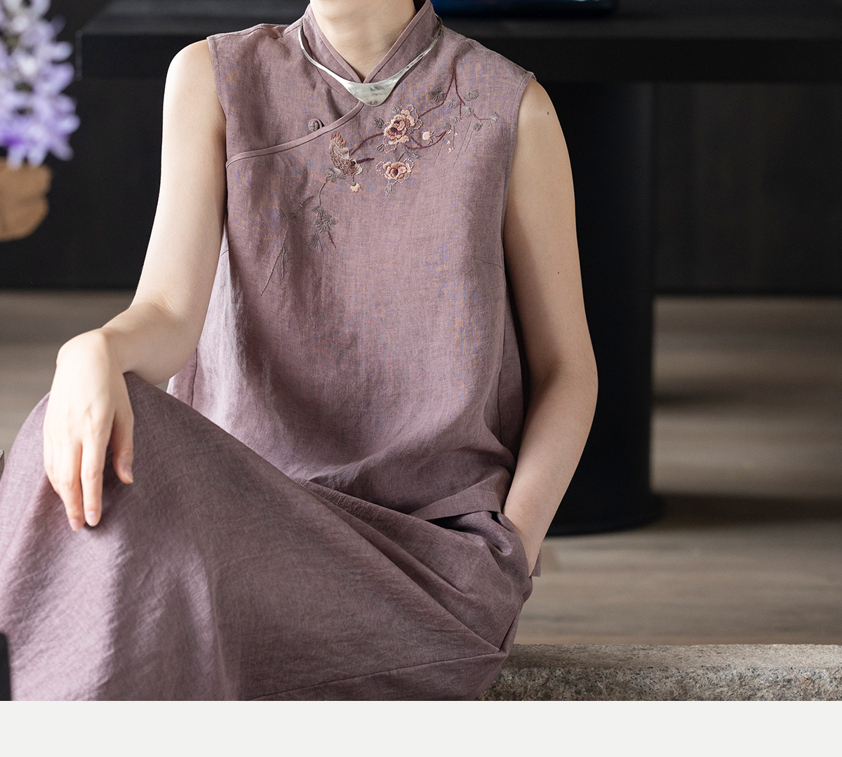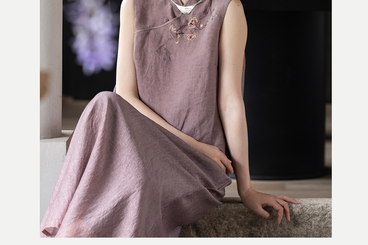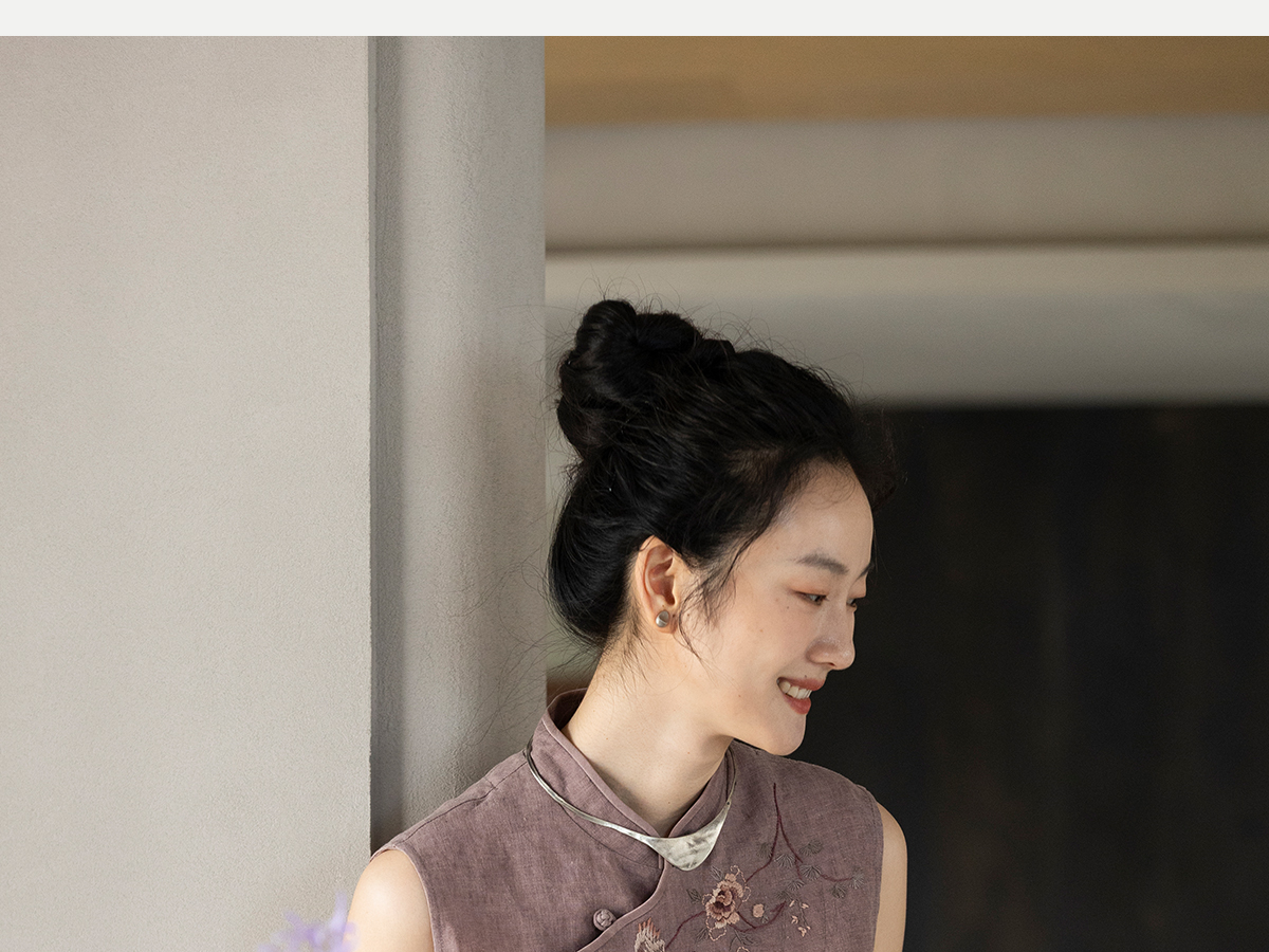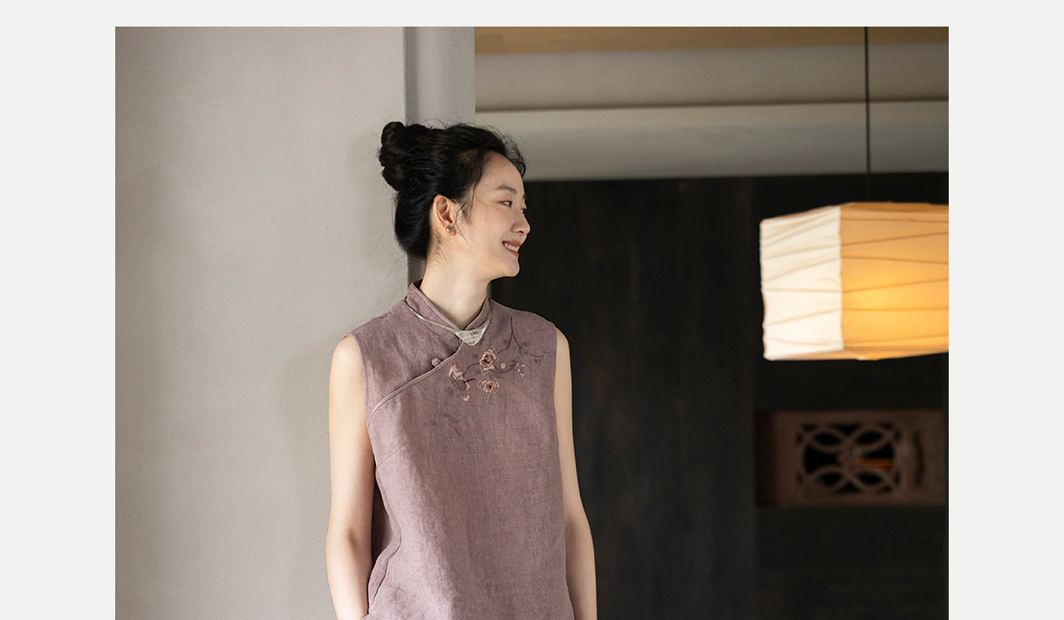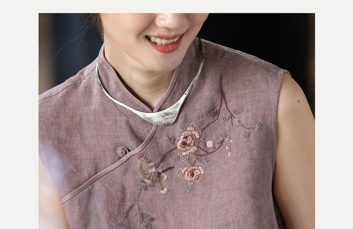 牧衣游原创 手工刺绣汉麻炒色马夹轻薄复古中式无袖上衣 倾玉盘