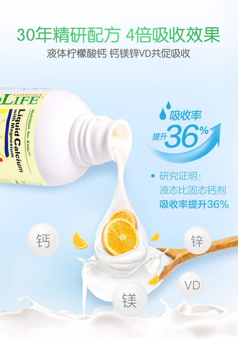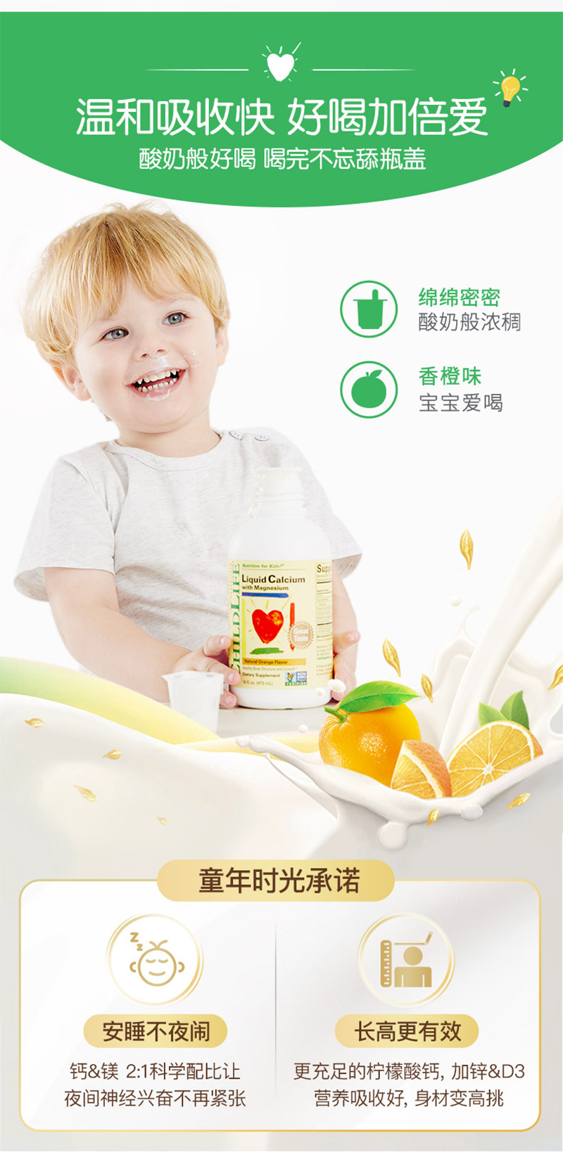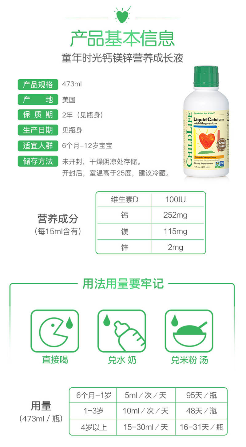 美国童年时光 钙镁锌婴幼儿液体钙473ml