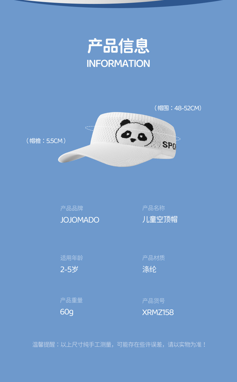 「五款可选!萌趣顶帽」儿童防晒帽子 夏季卡通男宝宝盆帽网眼小孩空顶帽女童遮阳帽薄童装