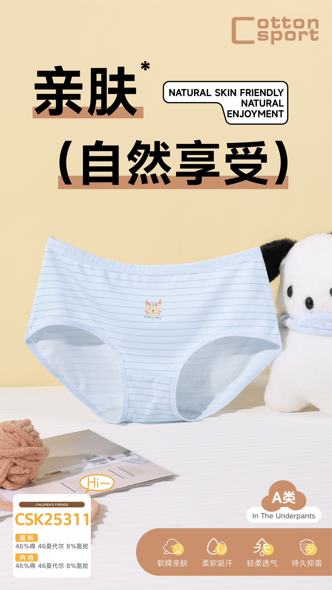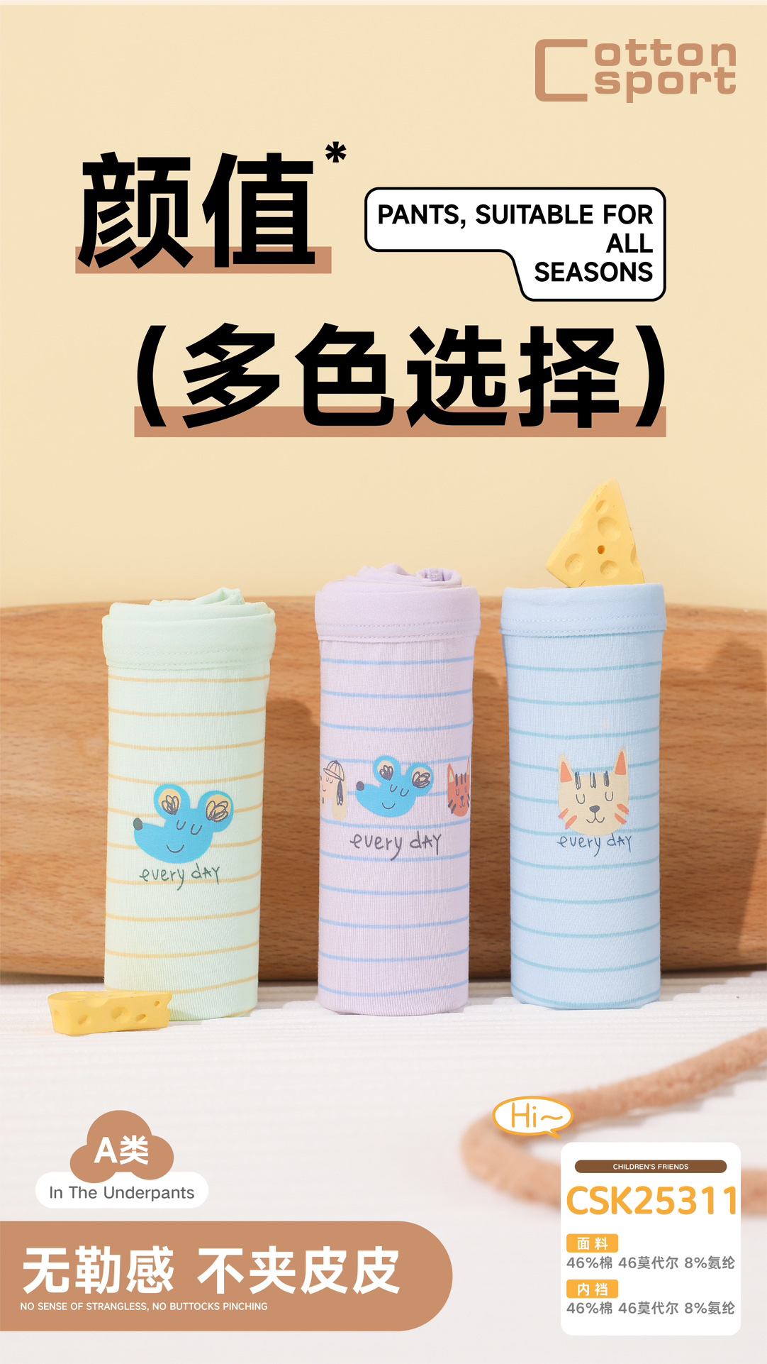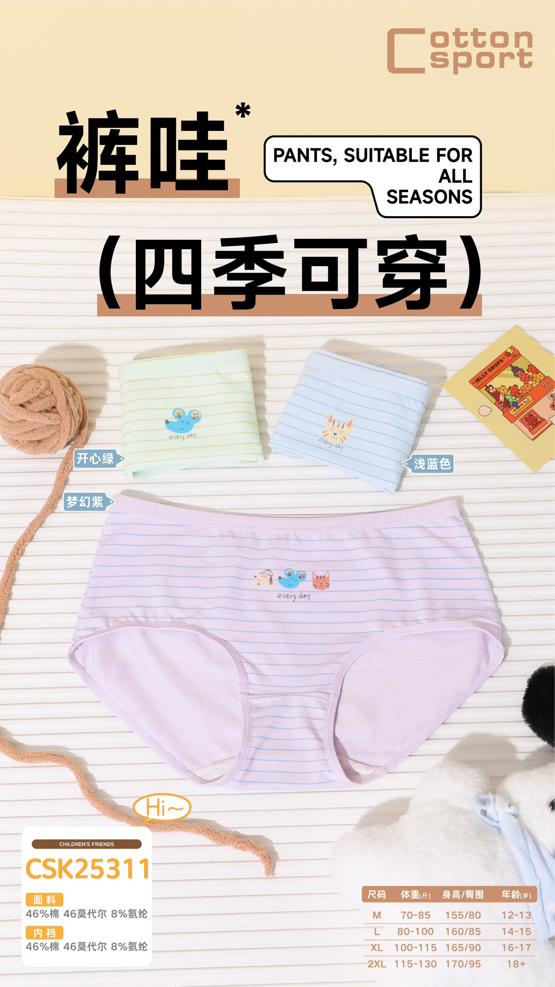 [三条装]少女三角裤棉莫内裤女大童底裤【CSK25311】