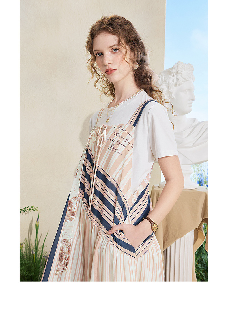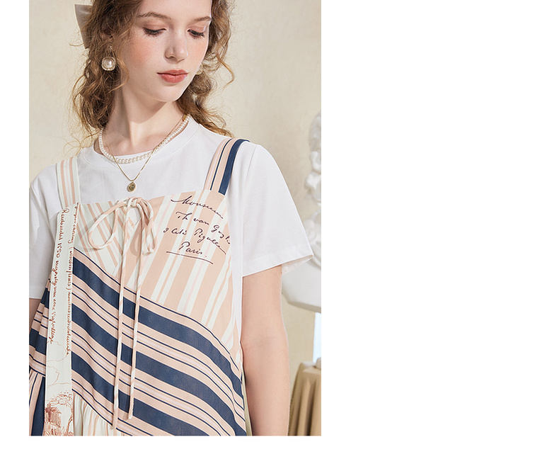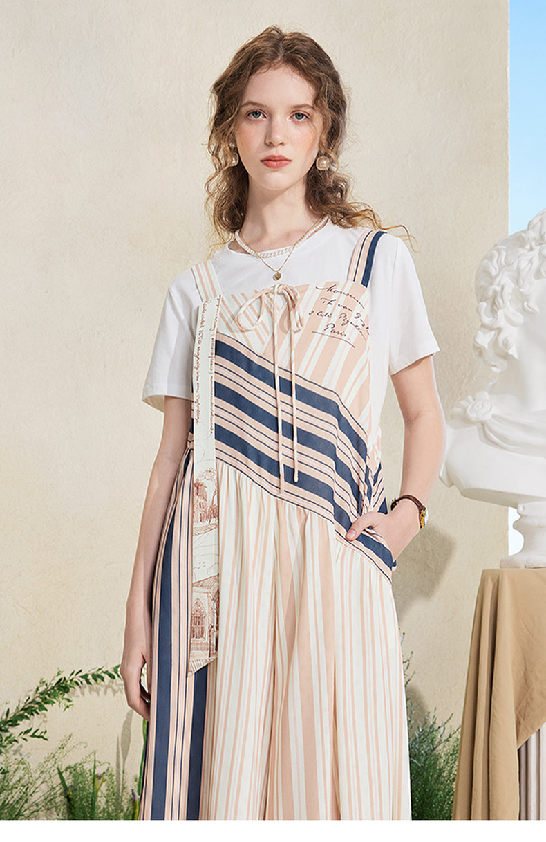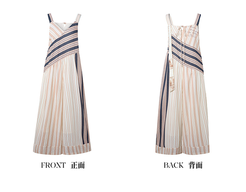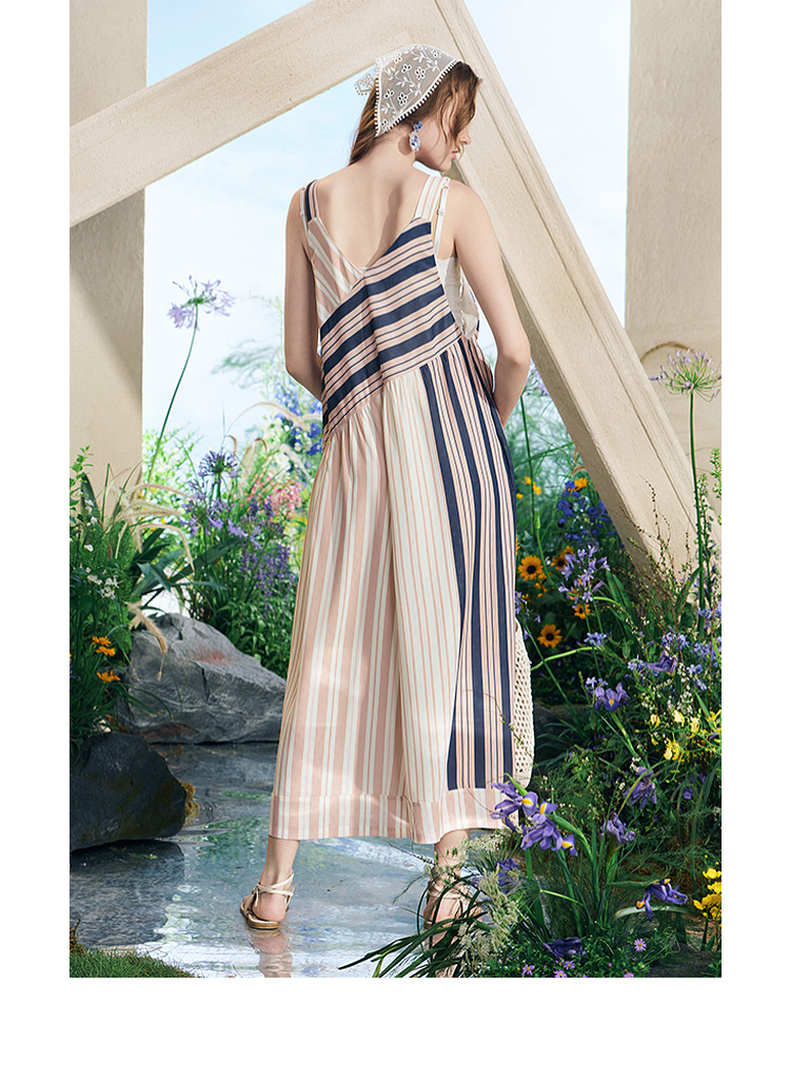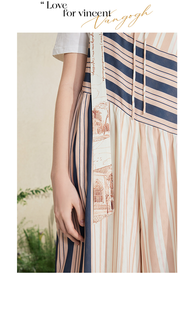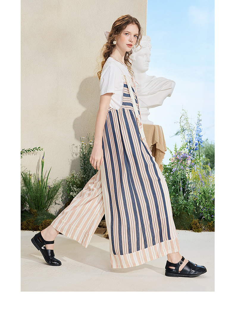 两三事梵高文艺垂音漫律2025夏新款时尚拼色条纹印花连体裤女宽松