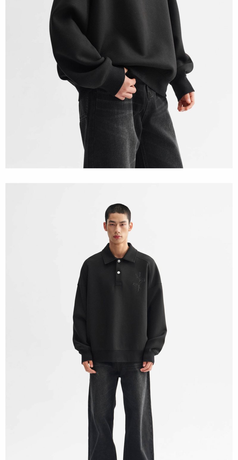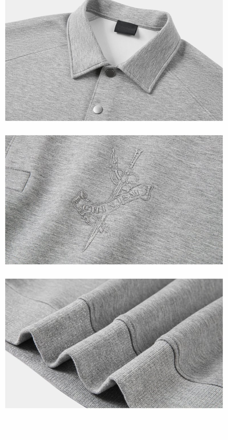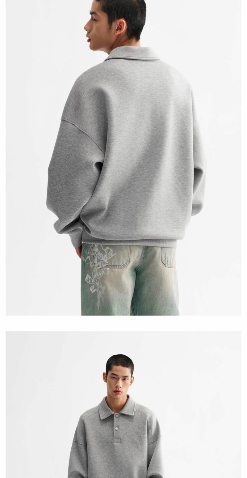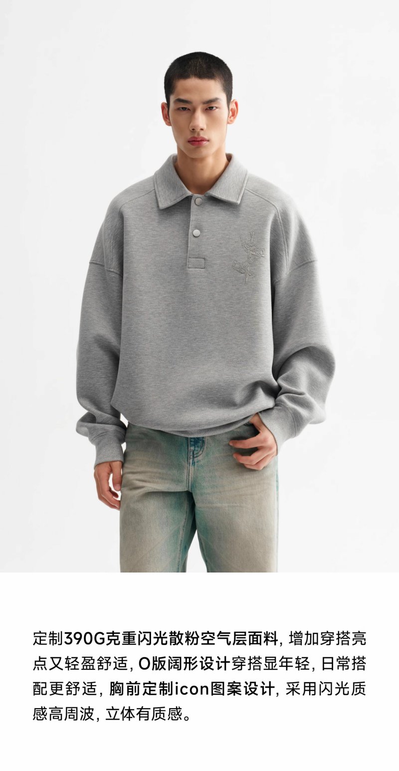 CHINISM赤尘 花灰色空气层POLO领卫衣男秋季新款美式宽松重磅上衣