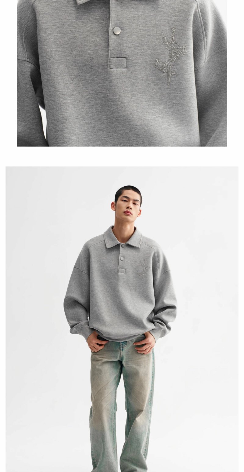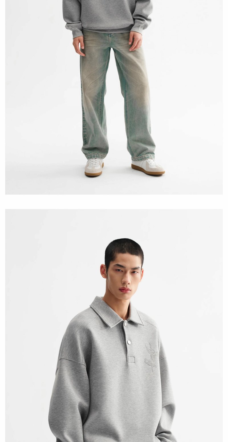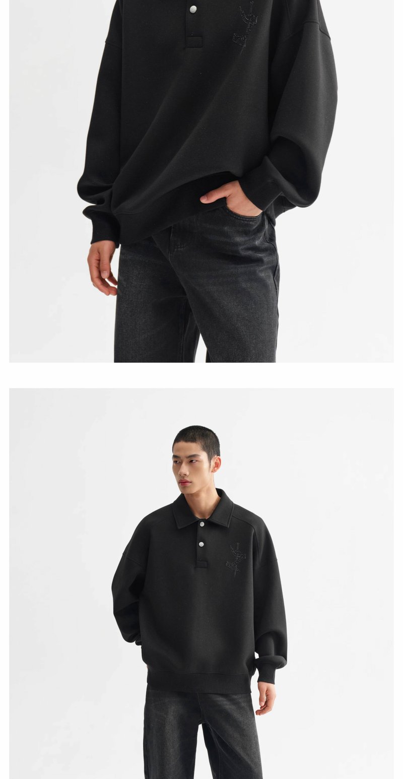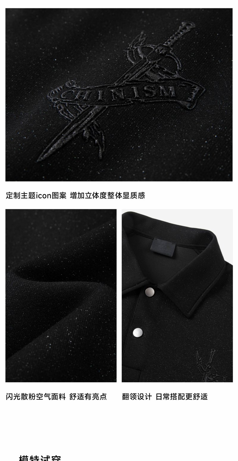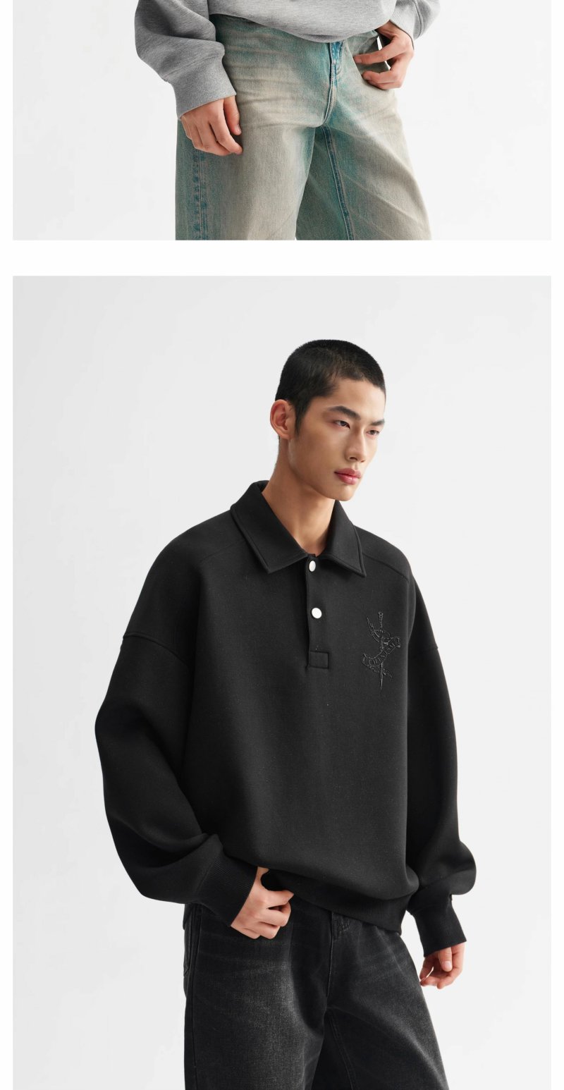 CHINISM赤尘 花灰色空气层POLO领卫衣男秋季新款美式宽松重磅上衣