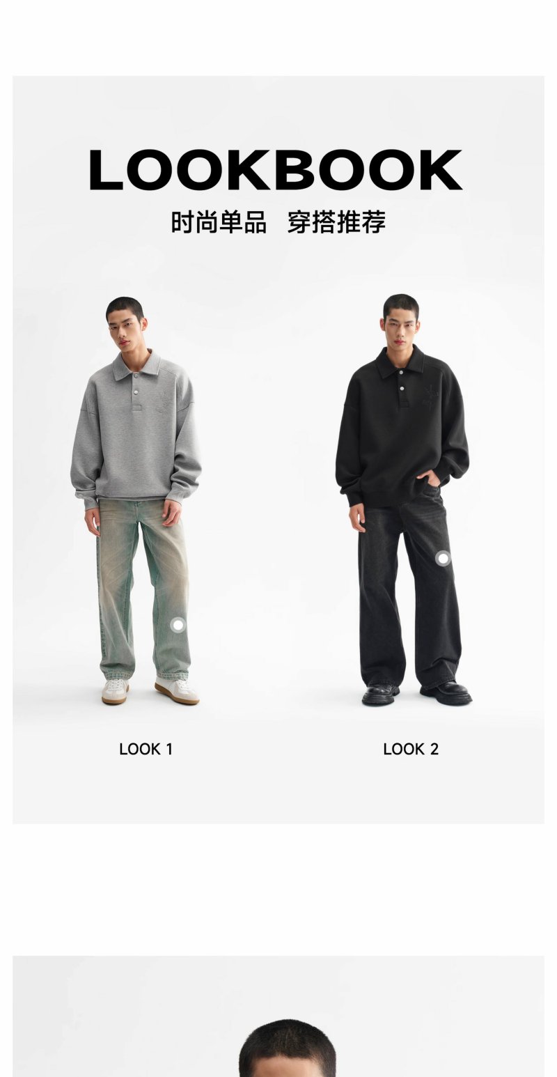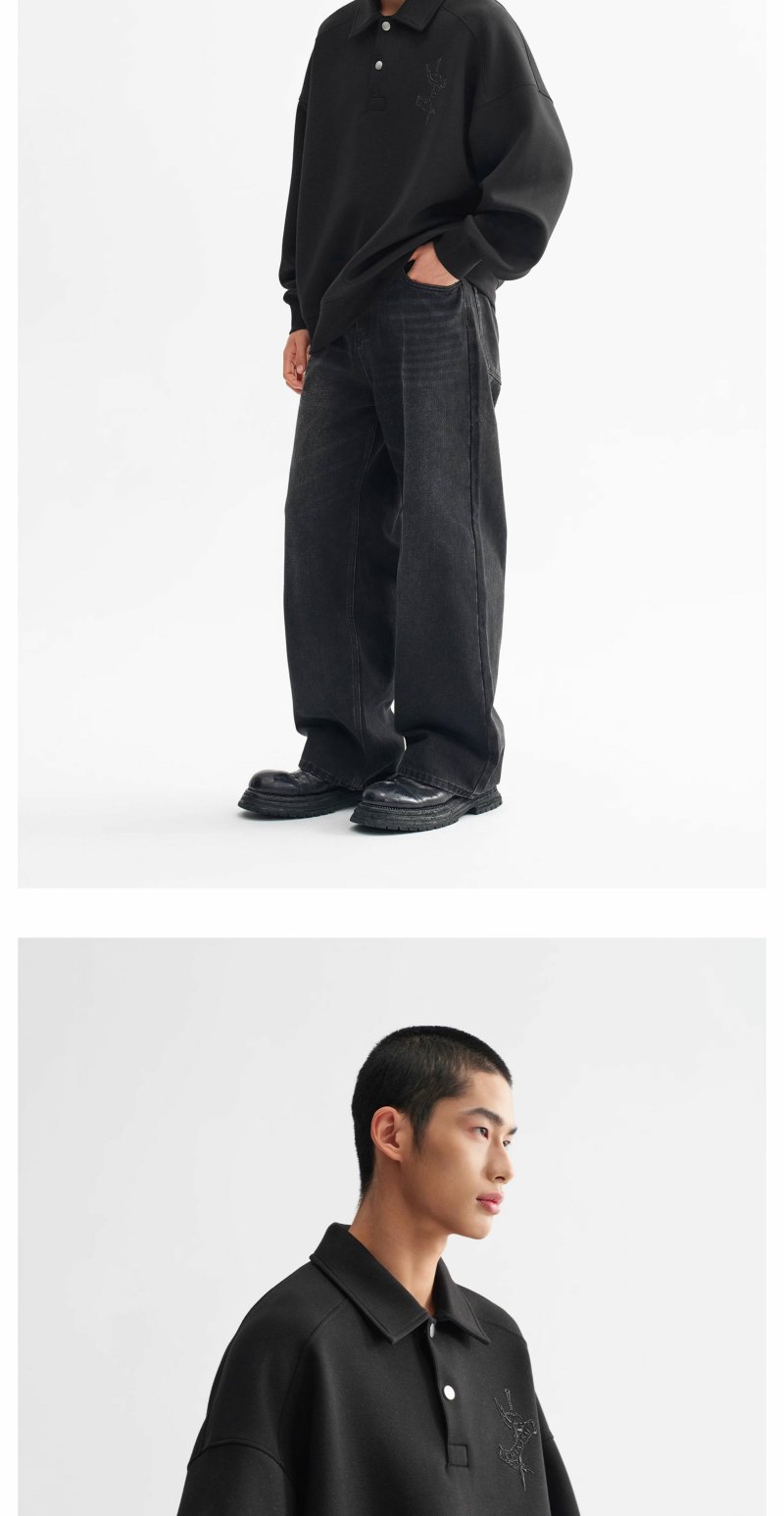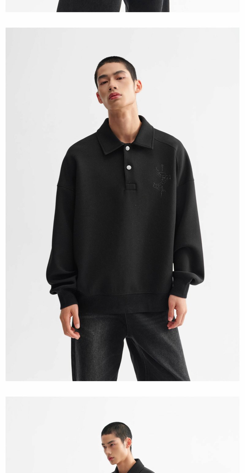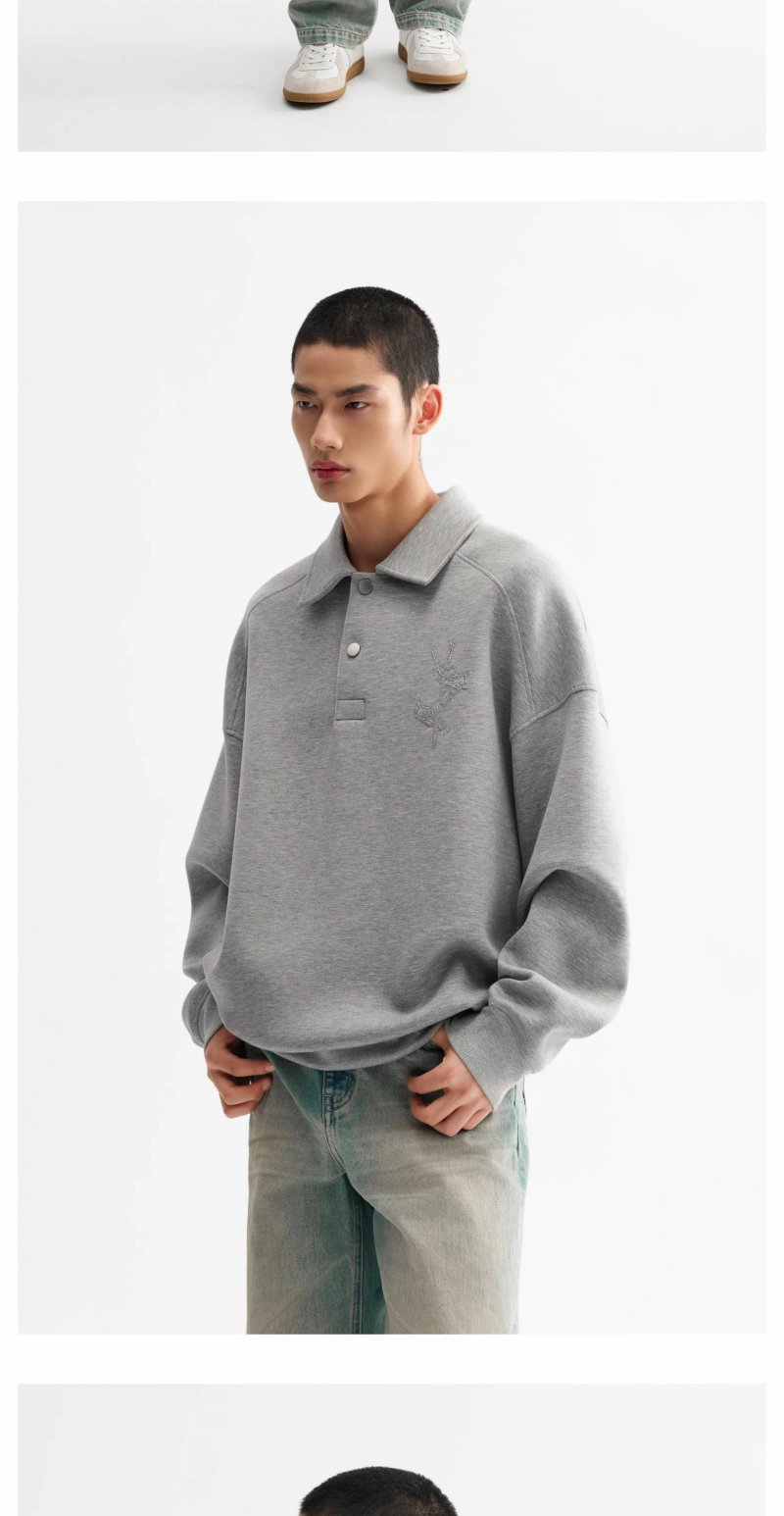 CHINISM赤尘 花灰色空气层POLO领卫衣男秋季新款美式宽松重磅上衣