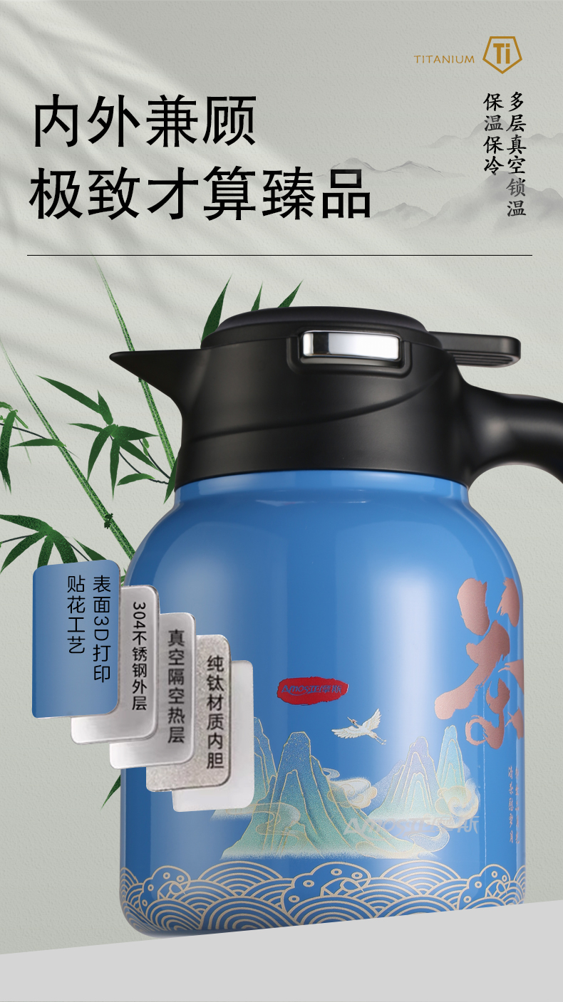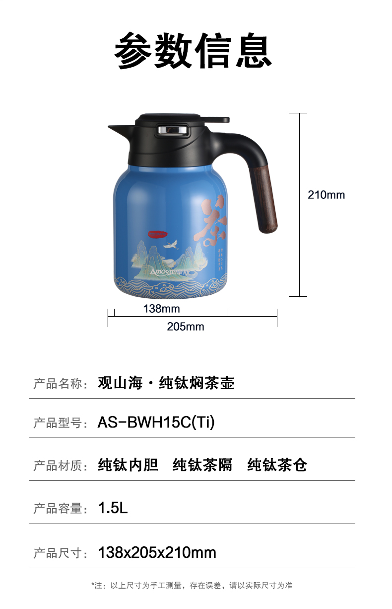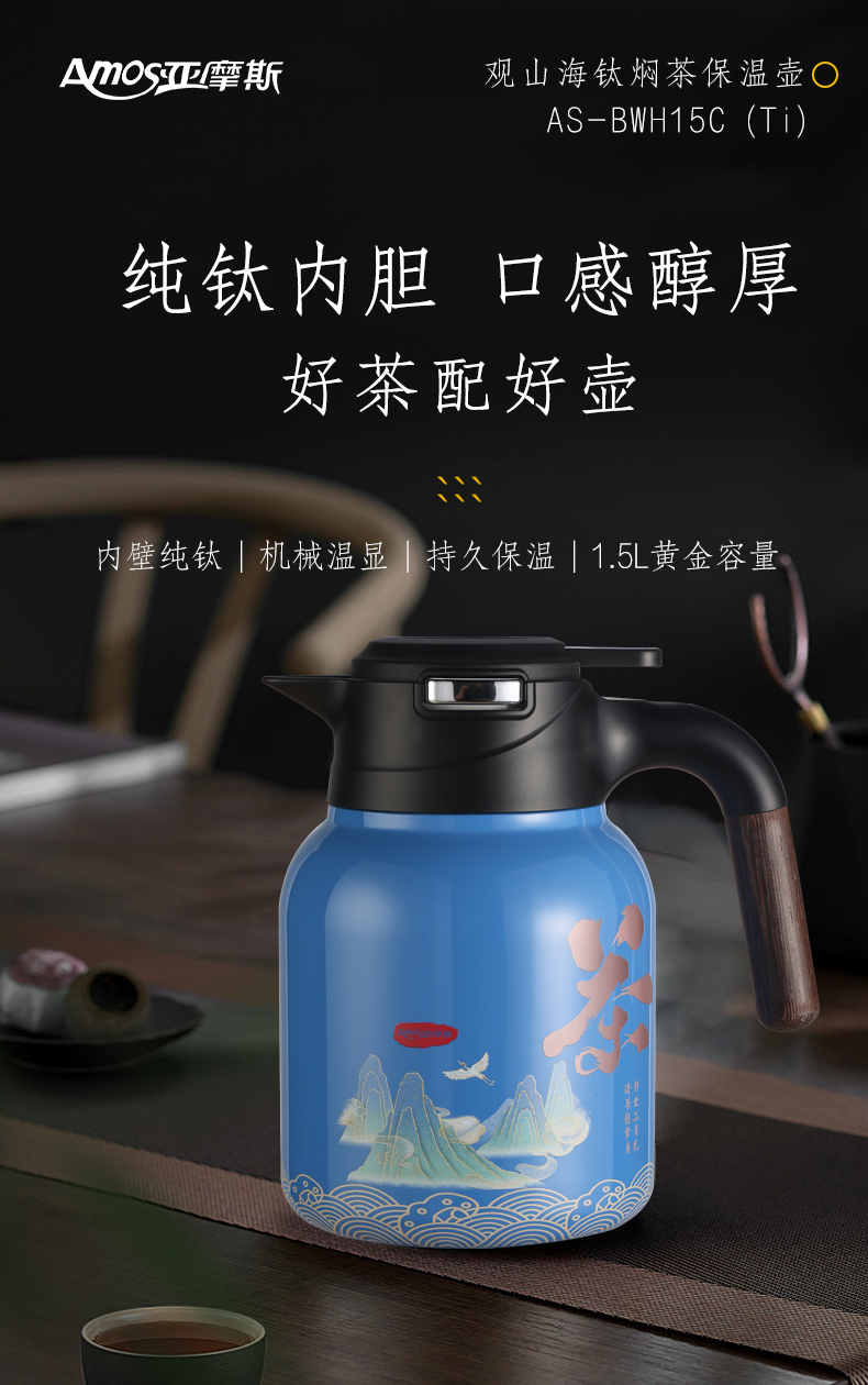 【纯钛内胆 持久保温】亚摩斯观山海钛焖茶壶AS-BWH15C(TI)