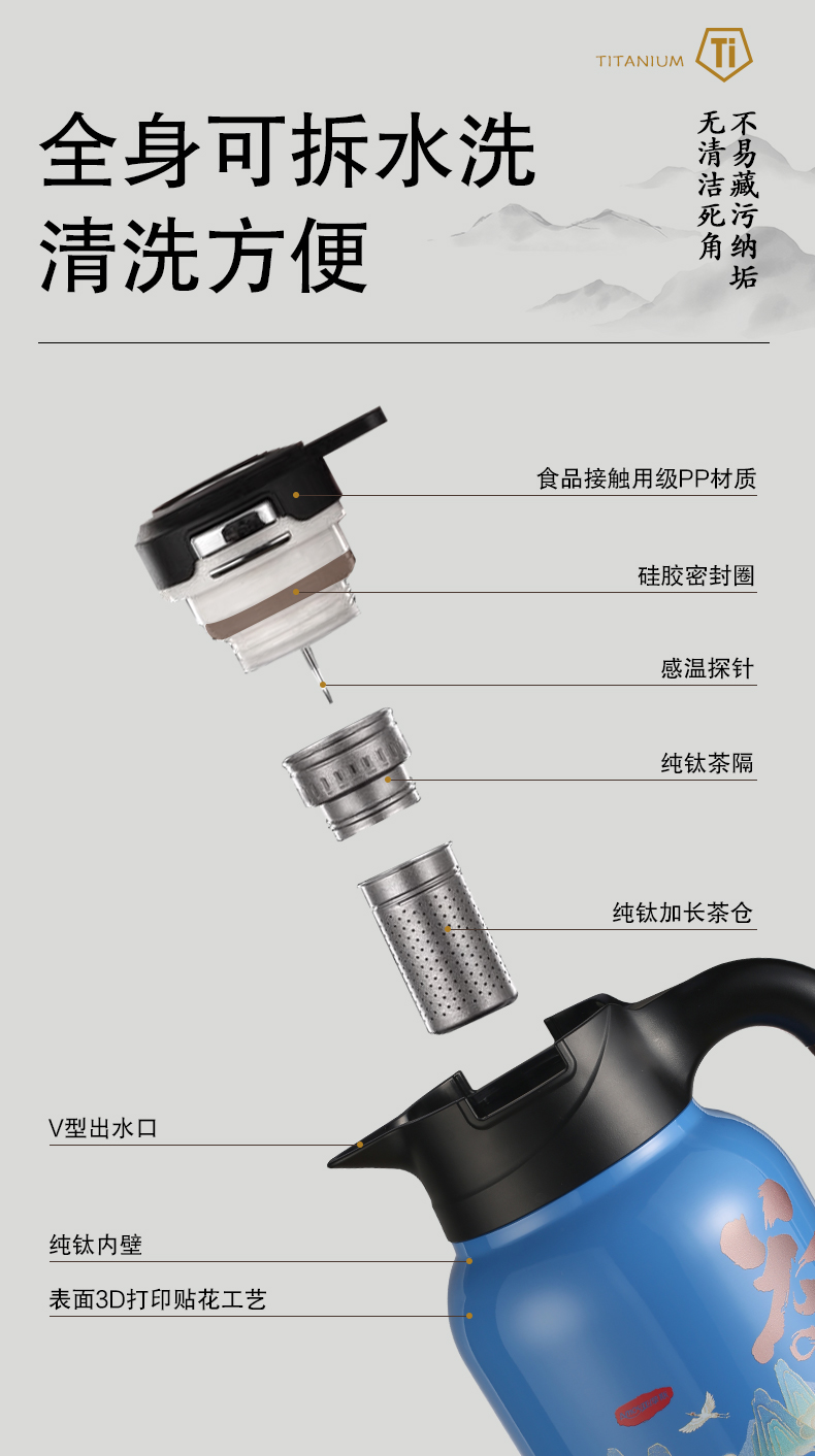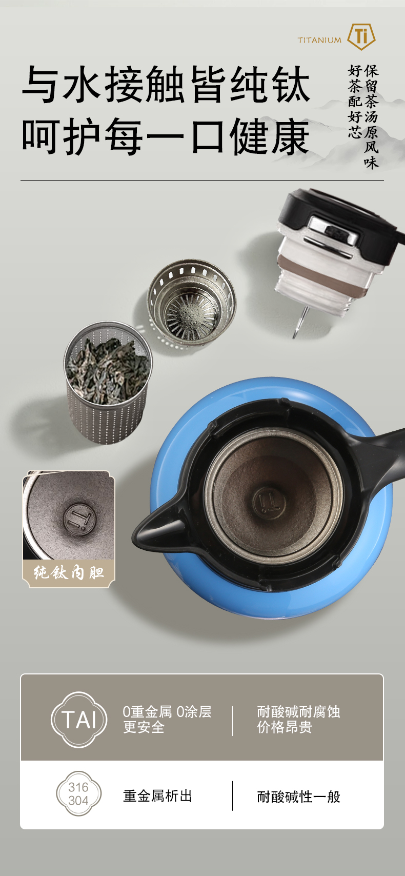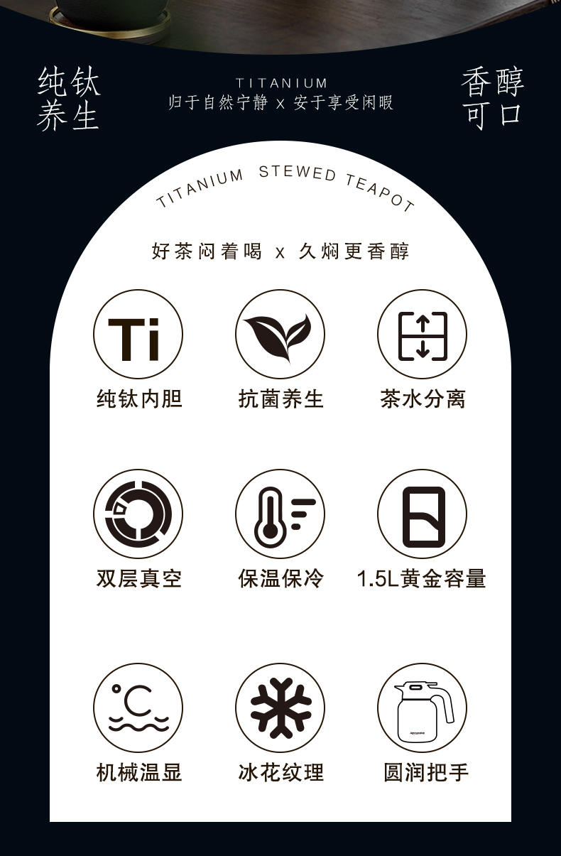 【纯钛内胆 持久保温】亚摩斯观山海钛焖茶壶AS-BWH15C(TI)