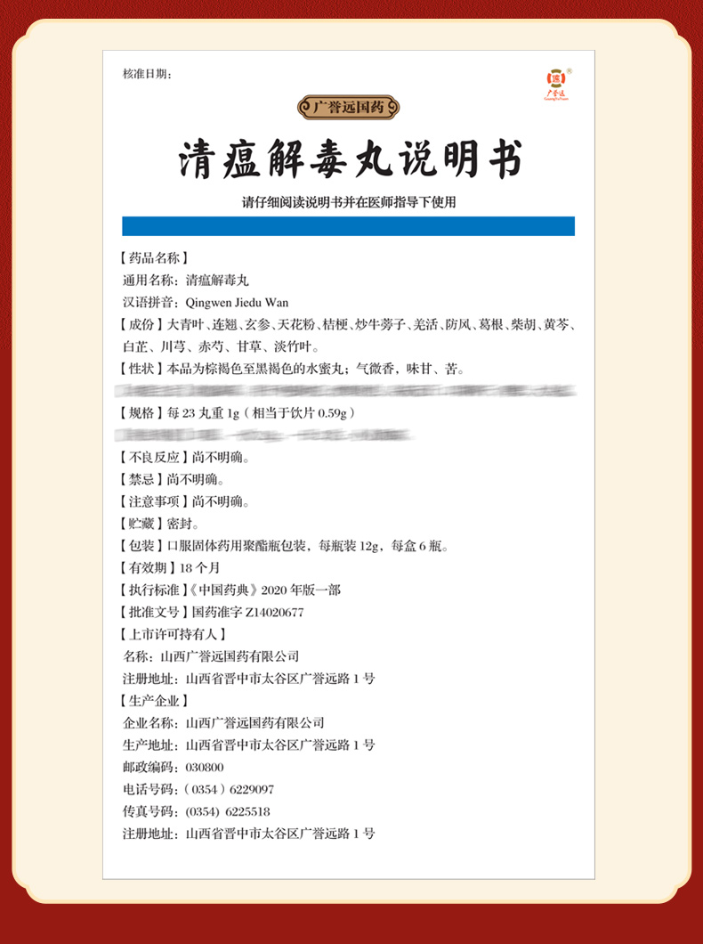 清瘟解毒丸12g*6瓶/盒 效期至24年10月20日