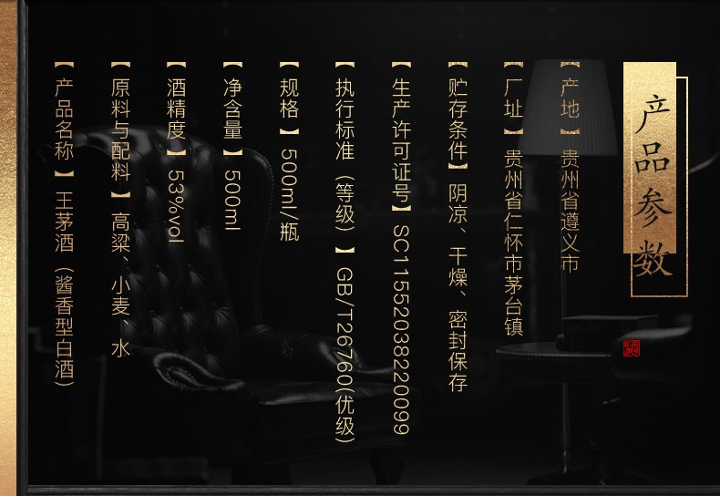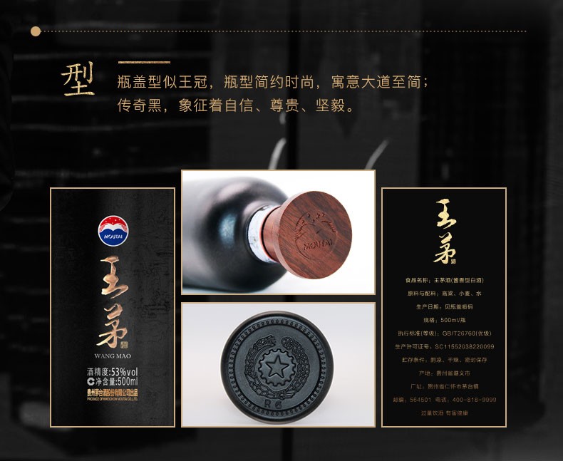 茅台 贵州茅台股份53度酱香型白酒 王茅祥雅黑500ml单瓶装