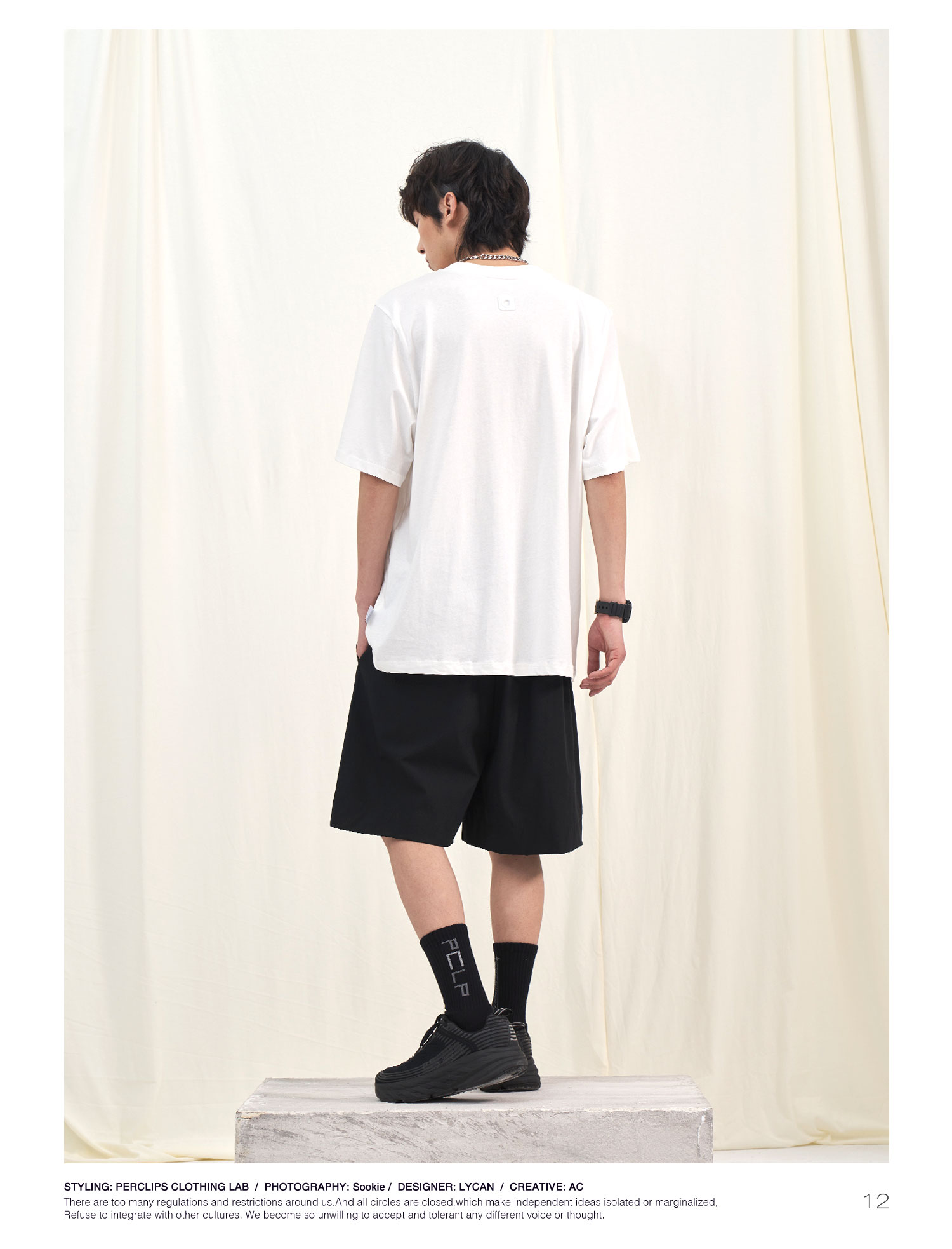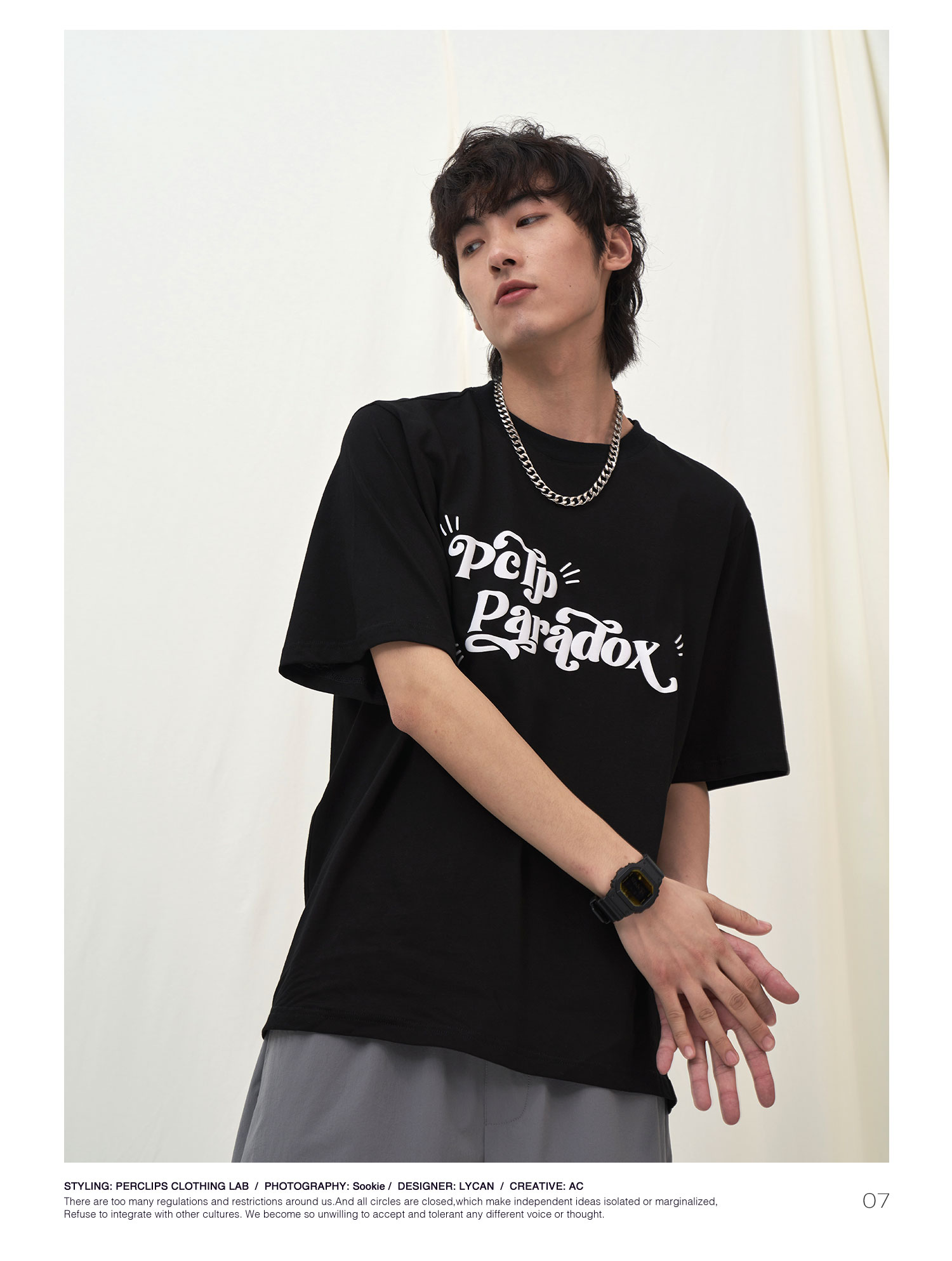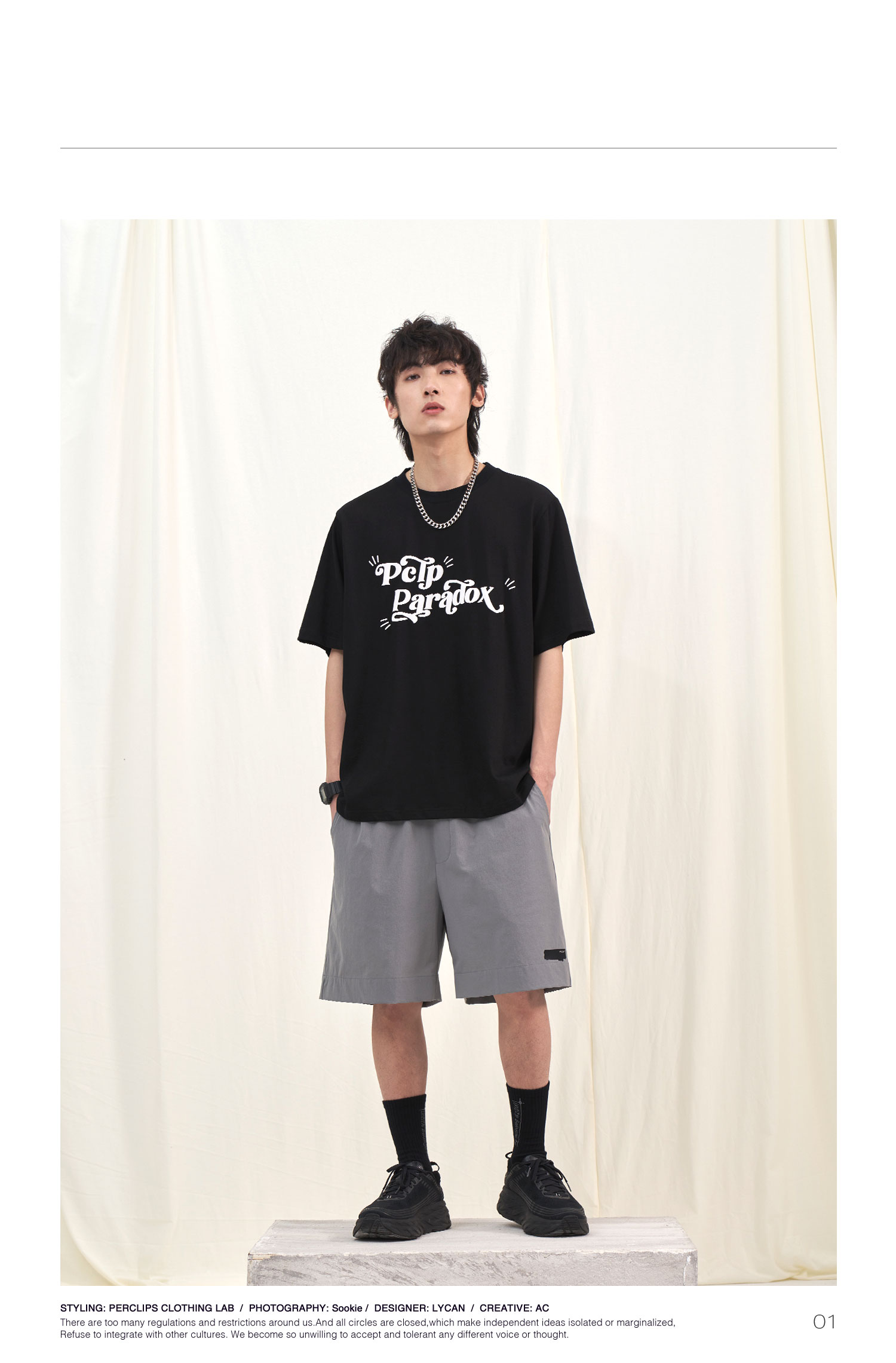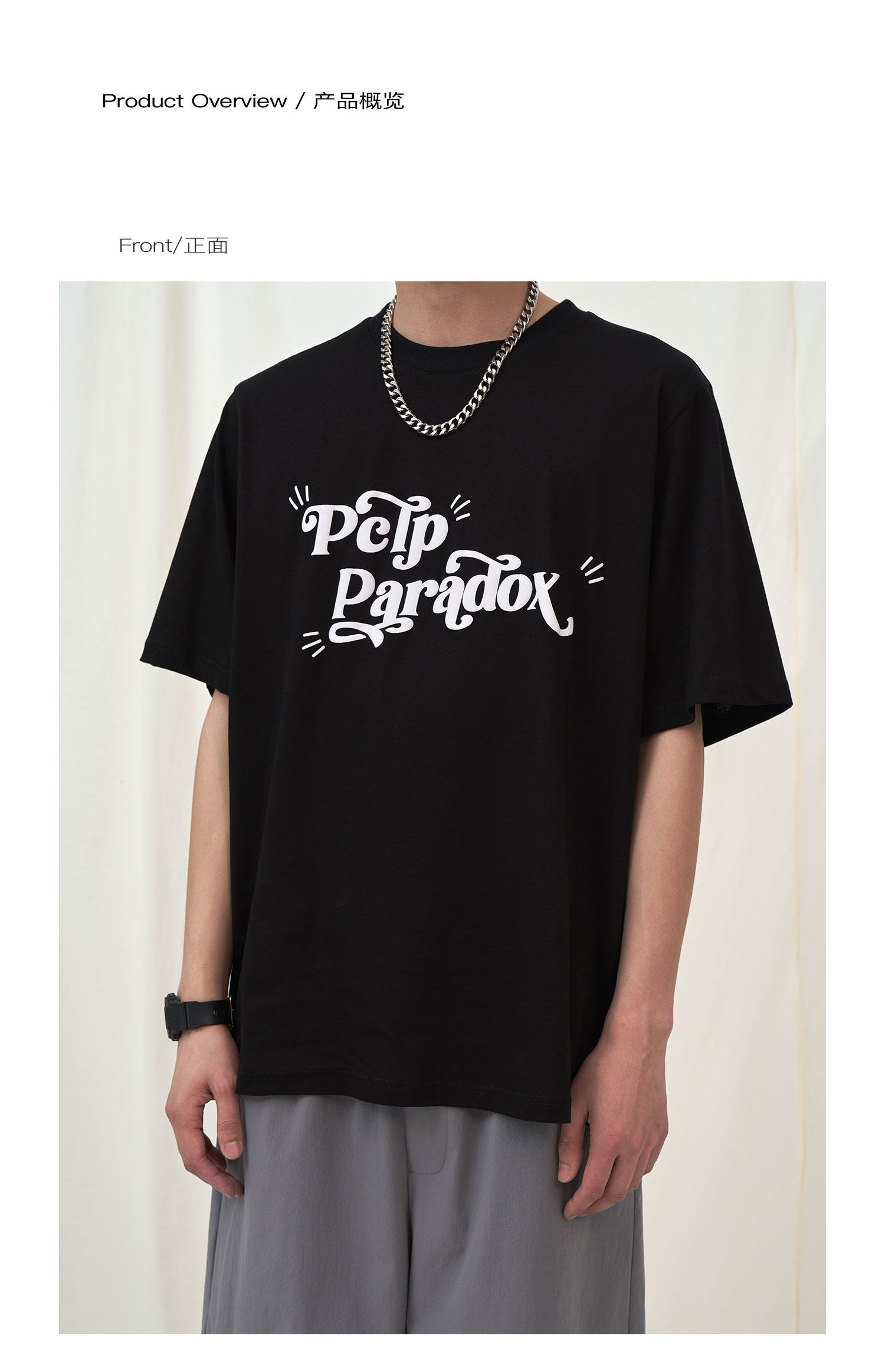 PCLP(PERCLIPS) 夏季圆领短袖t恤男简约百搭国潮牌宽松纯色半袖黑
