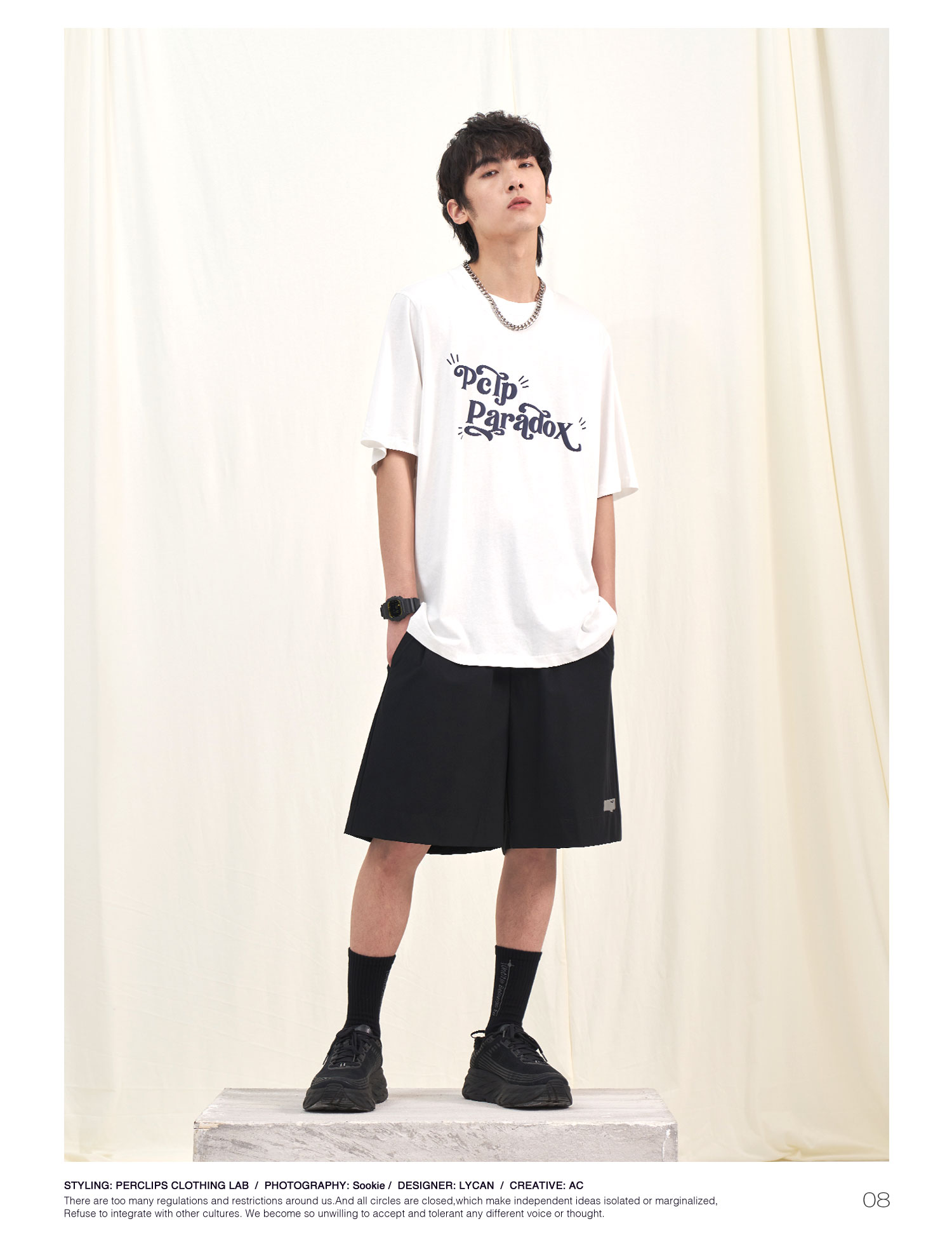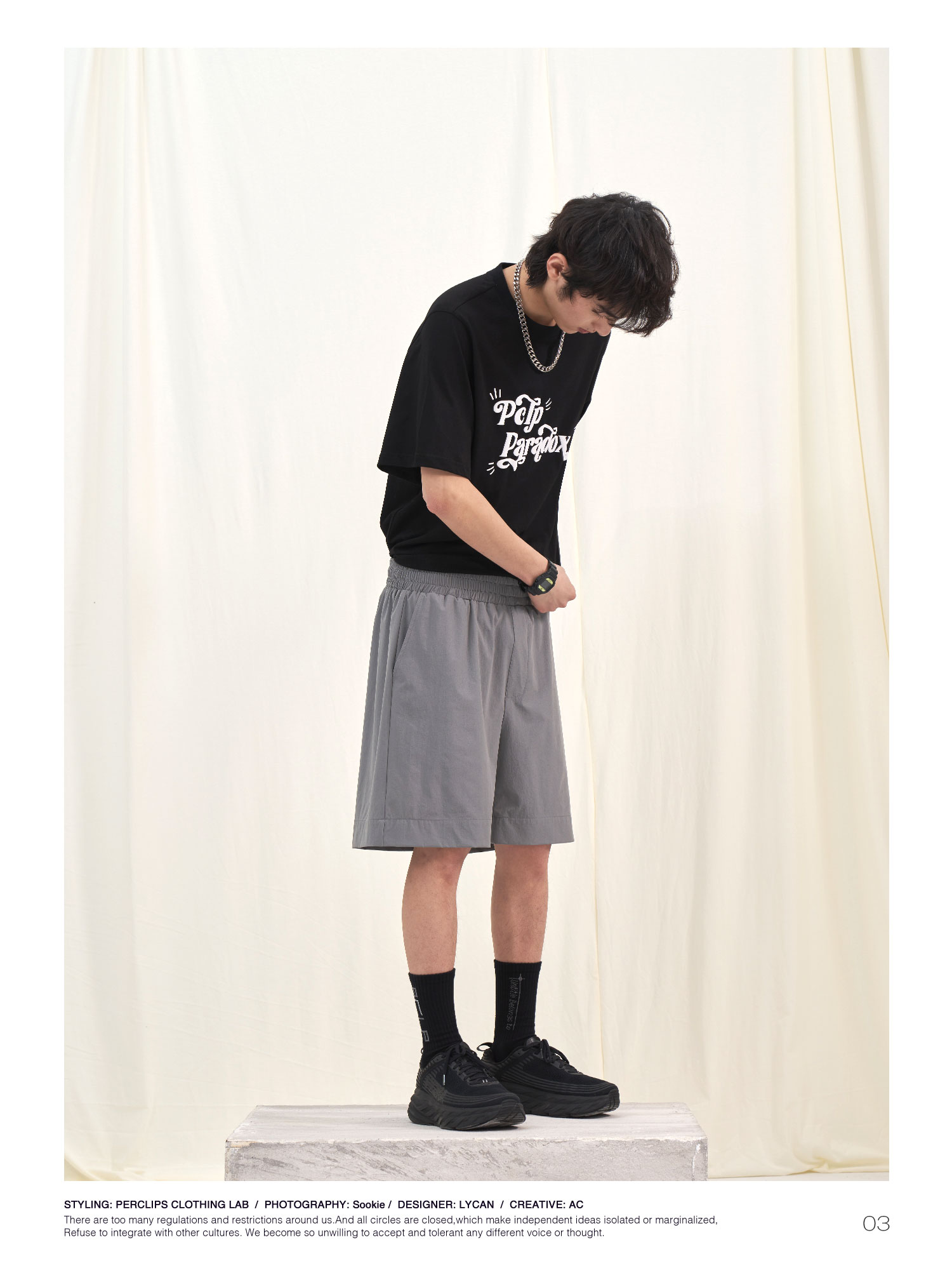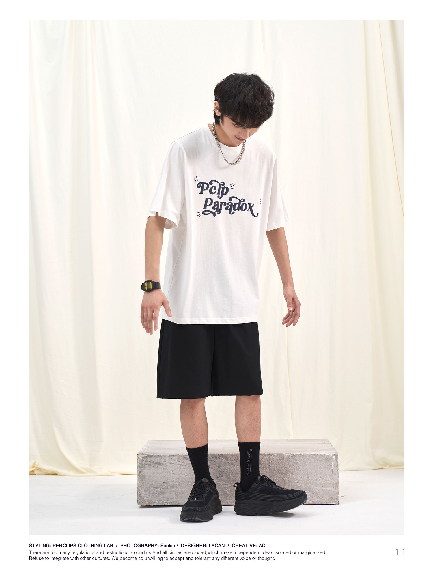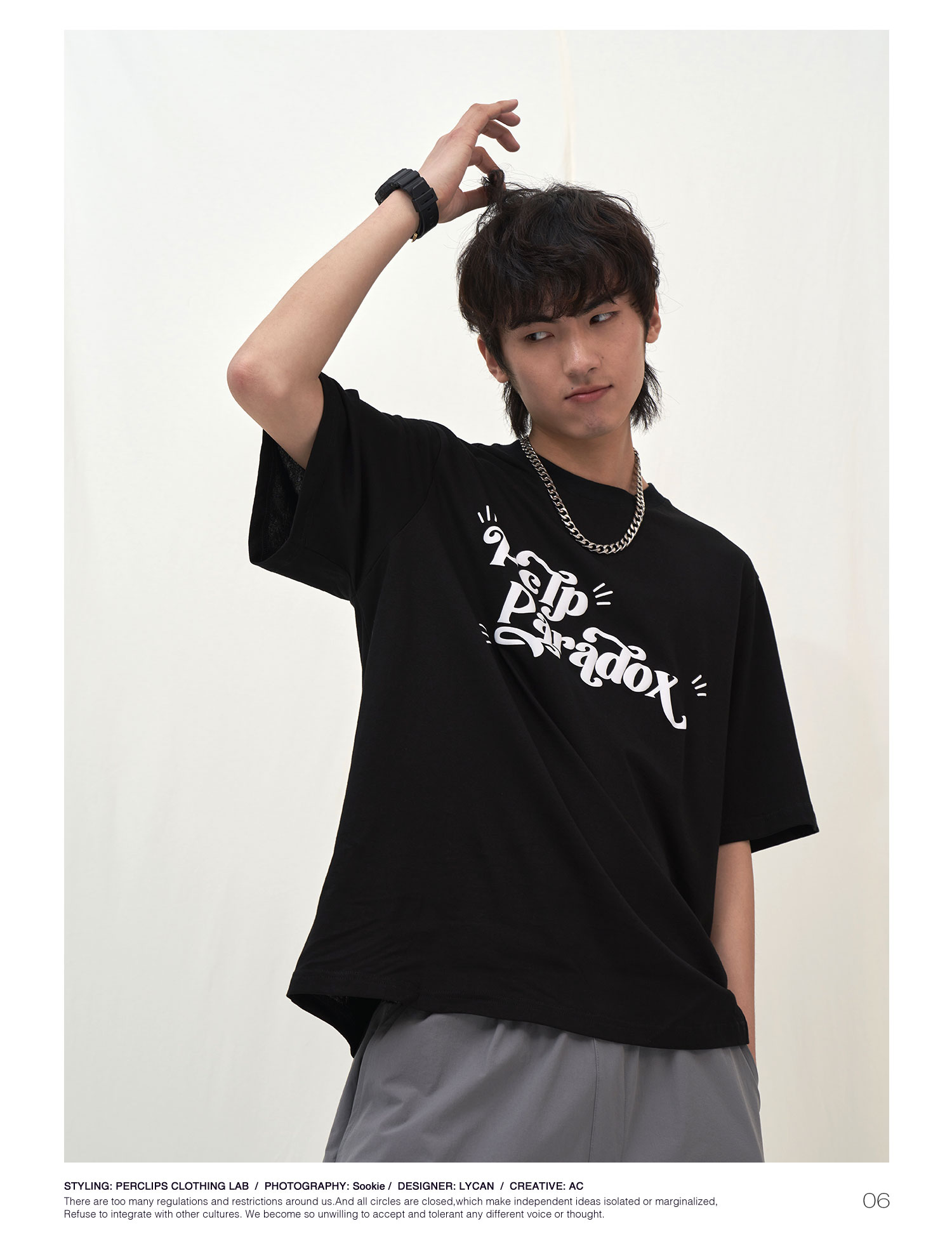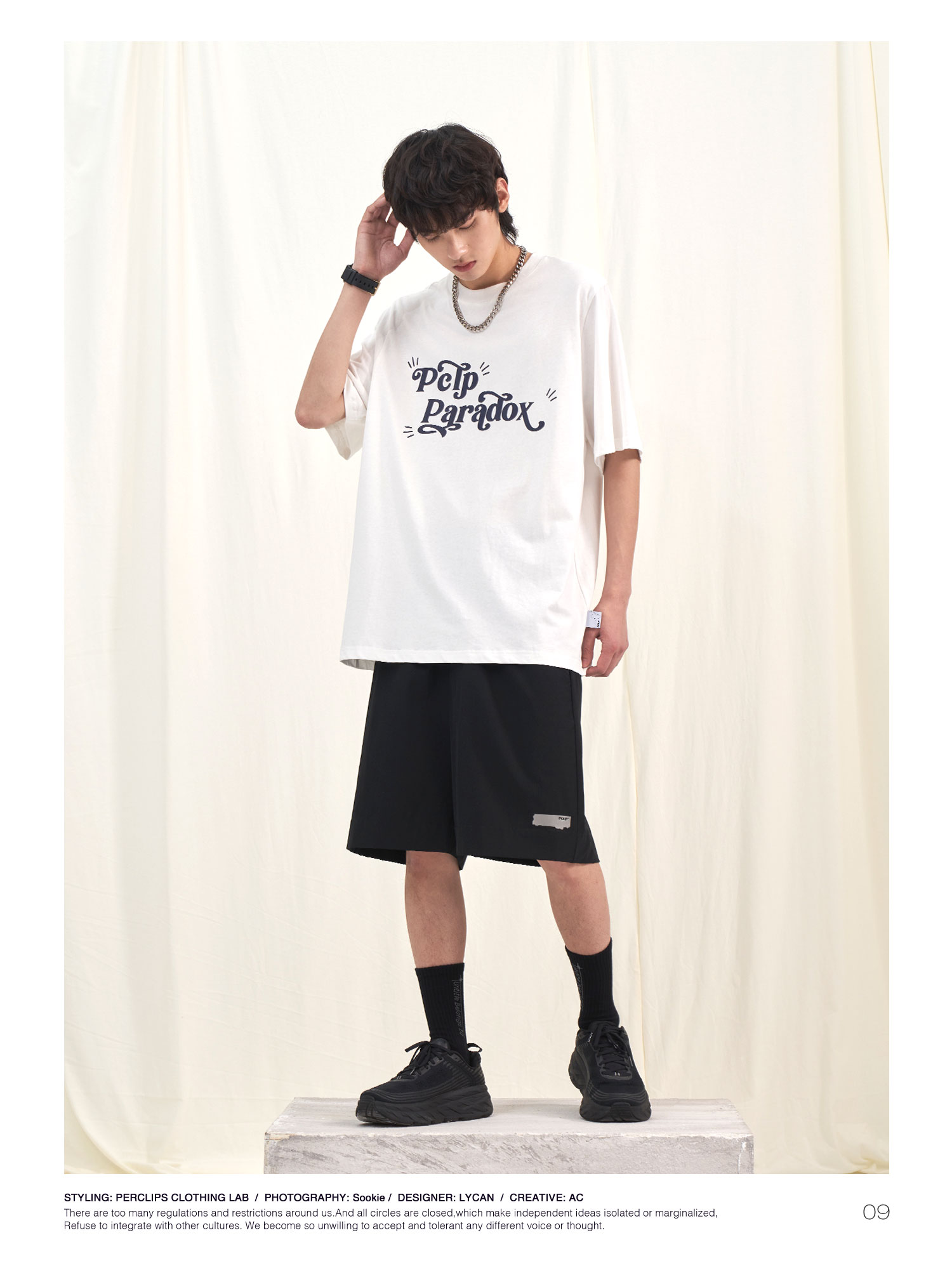 PCLP(PERCLIPS) 夏季圆领短袖t恤男简约百搭国潮牌宽松纯色半袖黑