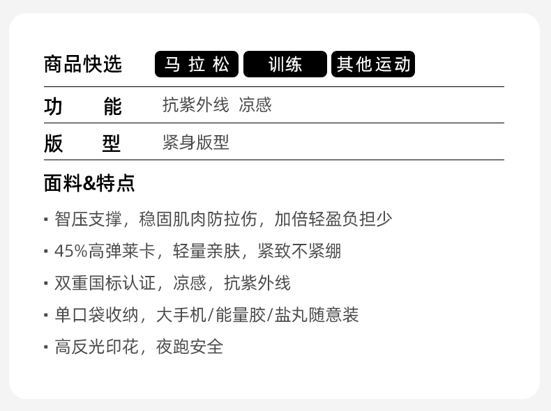春秋马孔多智压支撑压缩长裤3代 吸湿速干 抗紫外线 凉感 液态莱卡丝网印花 双面加压 防拉伤 抗疲劳 抽绳可调节 后腰网布手机仓