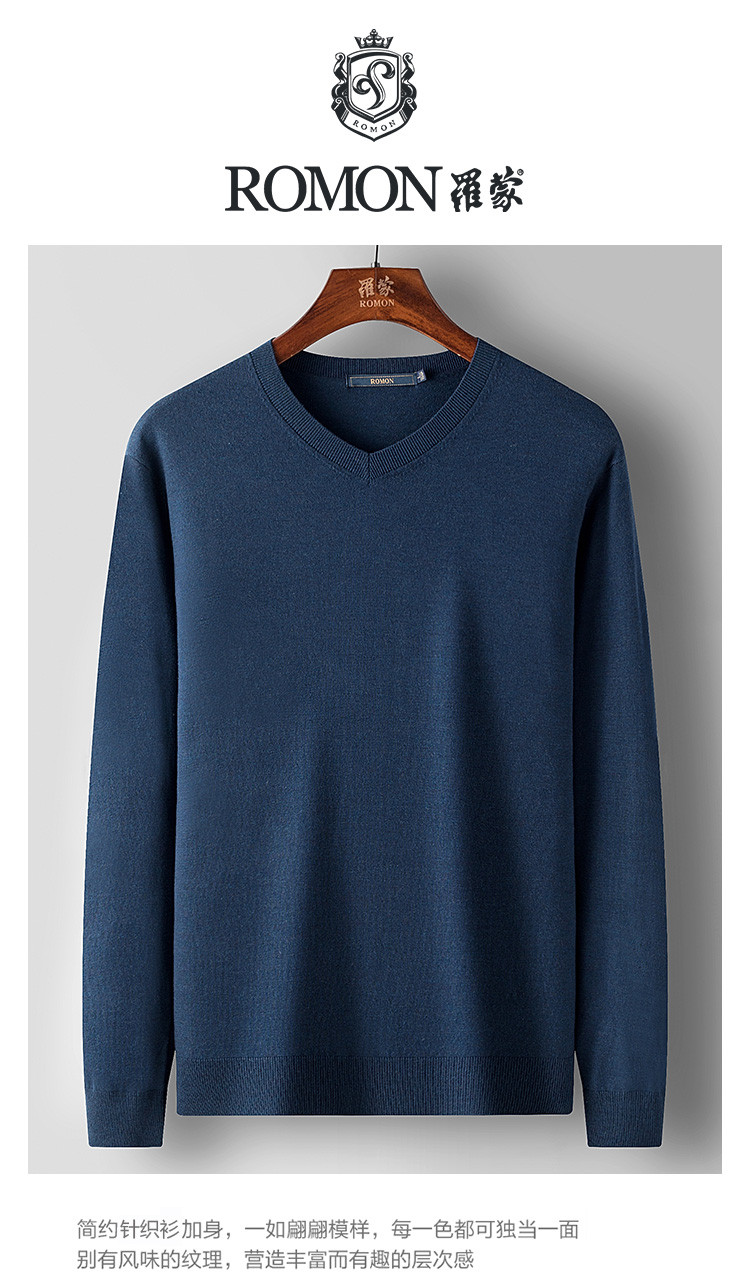 【含桑蚕丝绵羊毛】罗蒙经典常青款针织衫保暖毛衣秋冬打底衫毛衣男