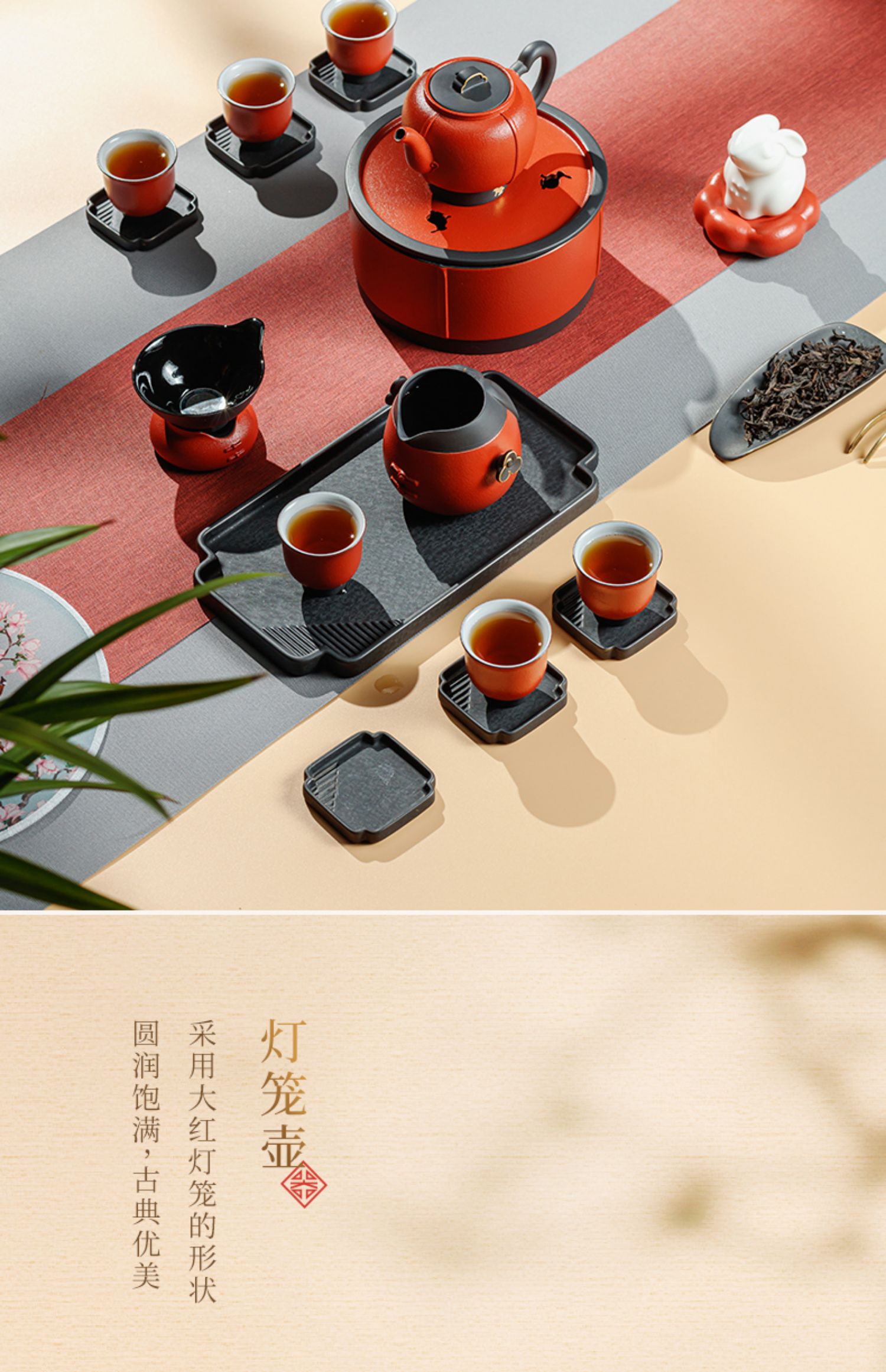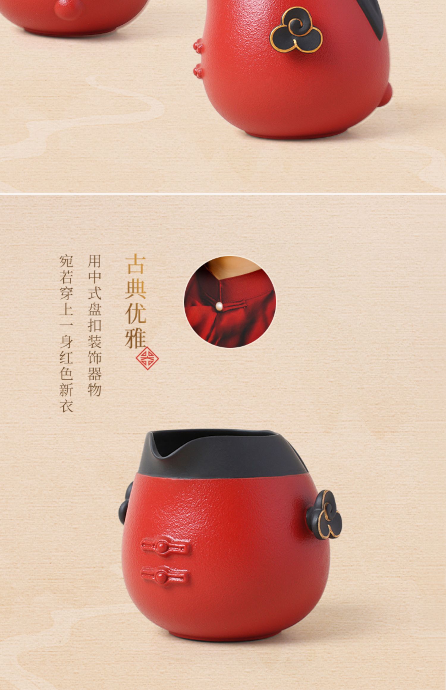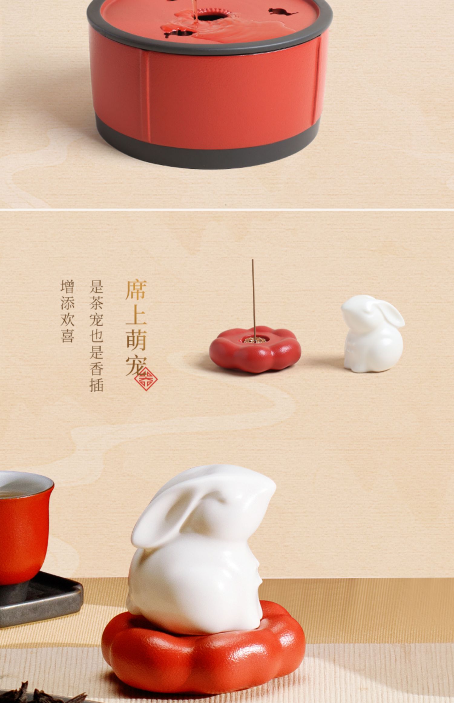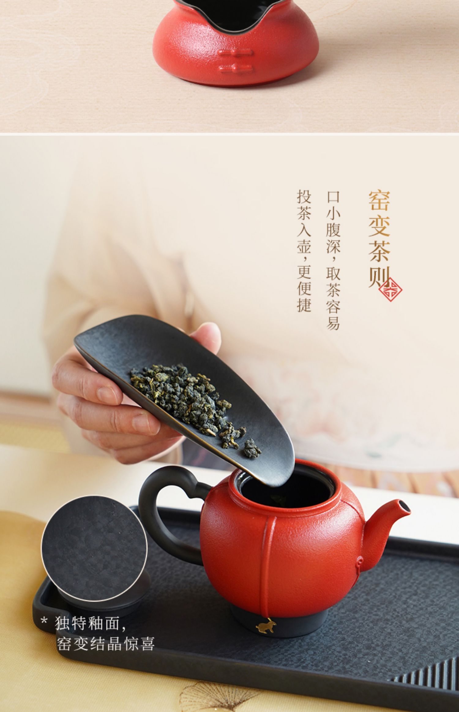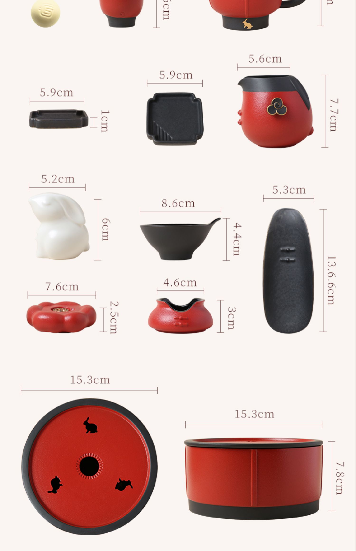 陆宝陶瓷功夫茶具 福照万家茶礼生肖兔描金陶瓷泡茶壶茶杯 家用客厅中国红高档整套茶具礼盒装