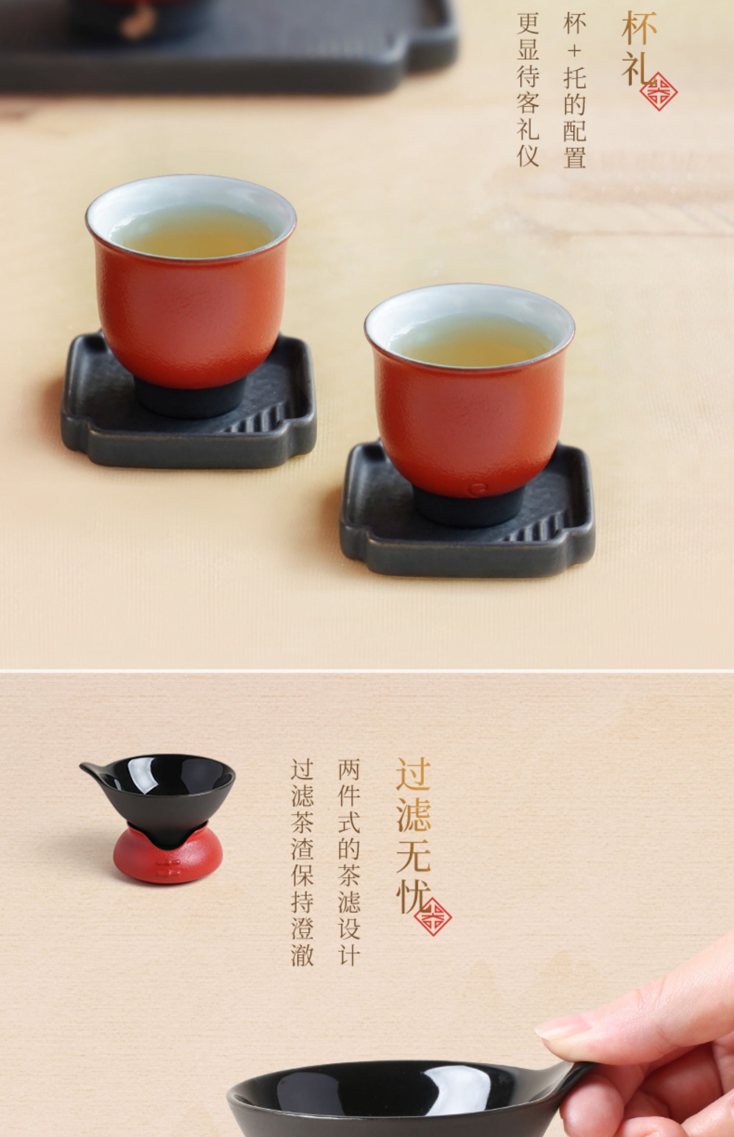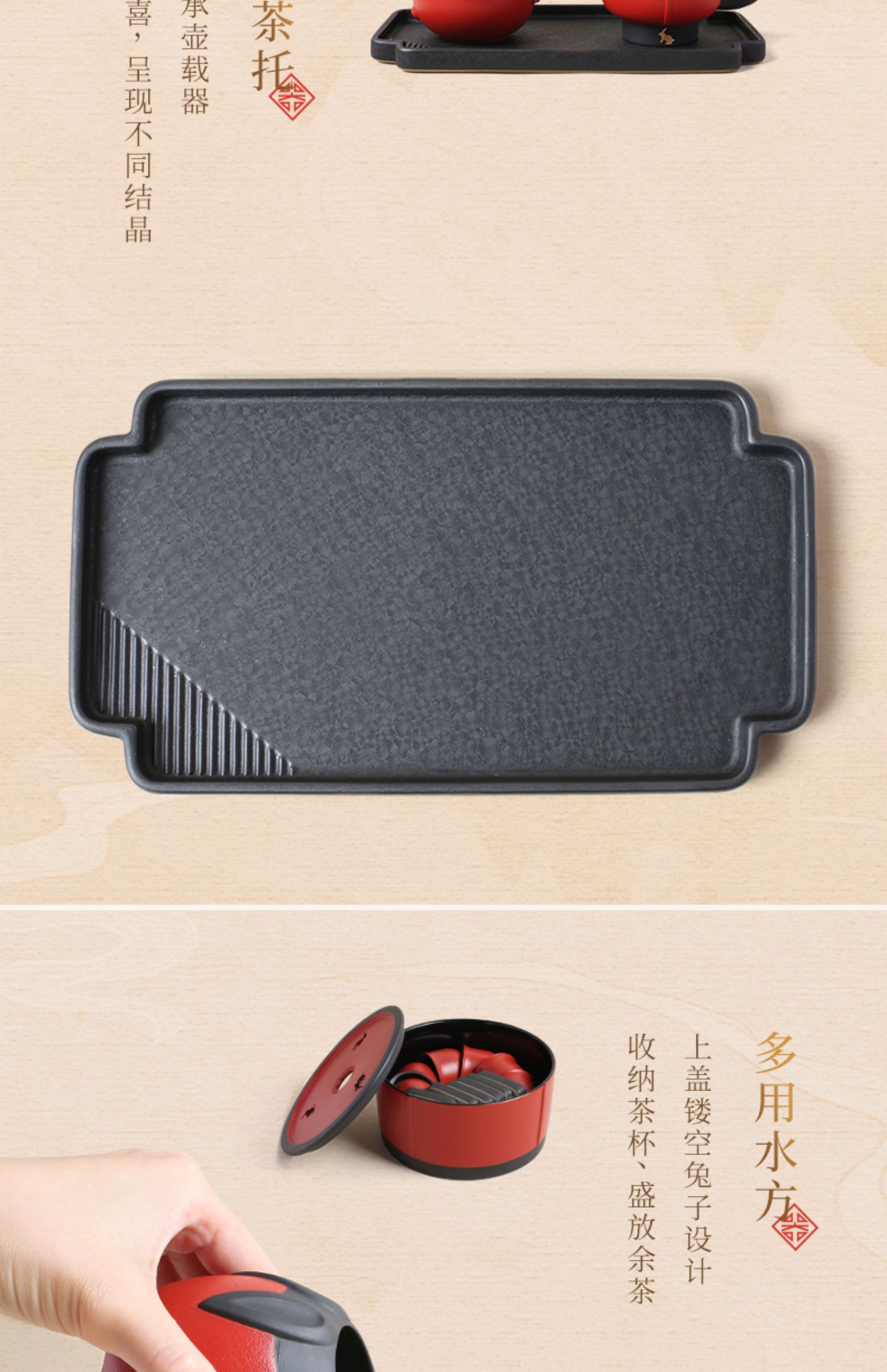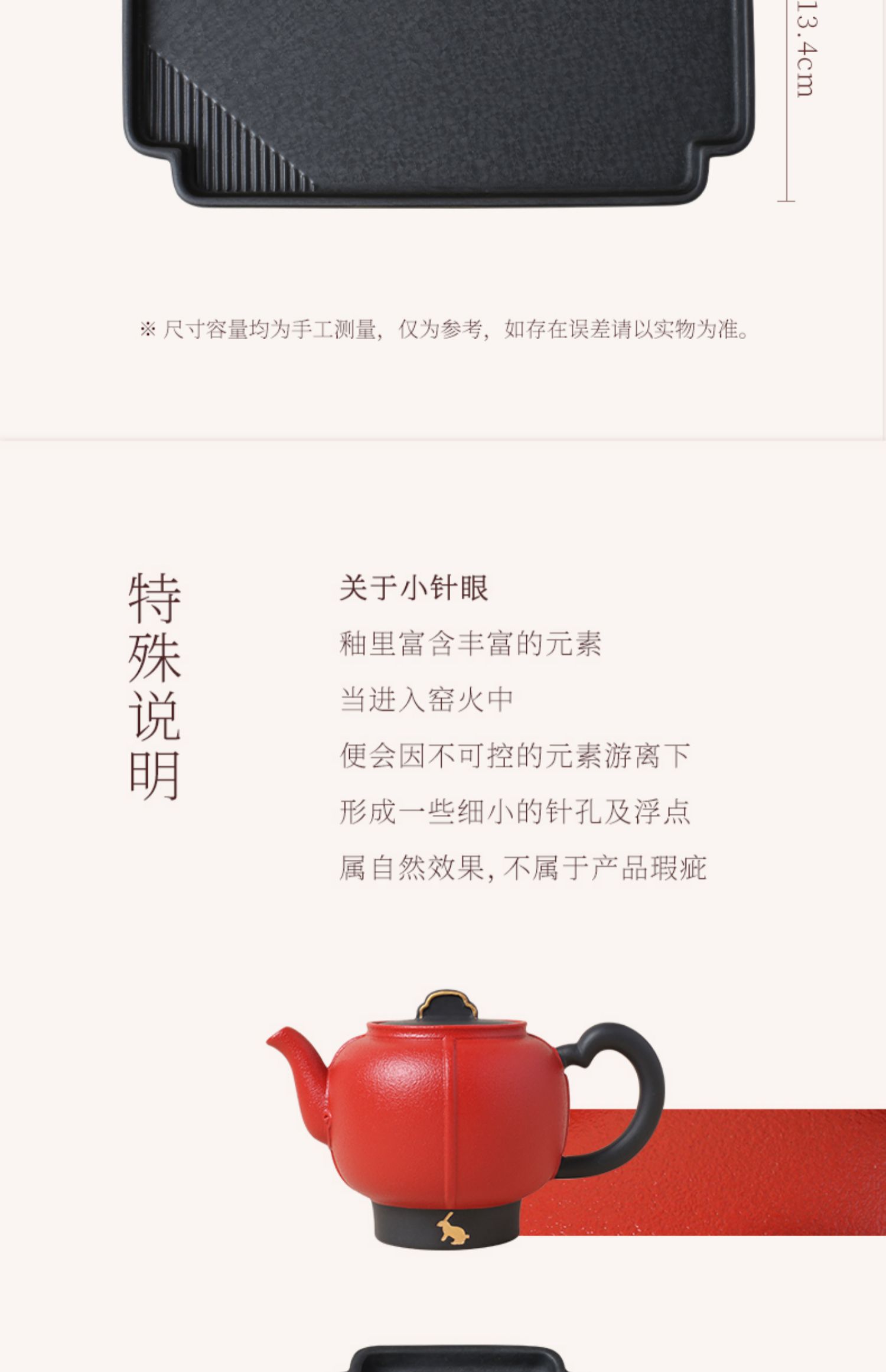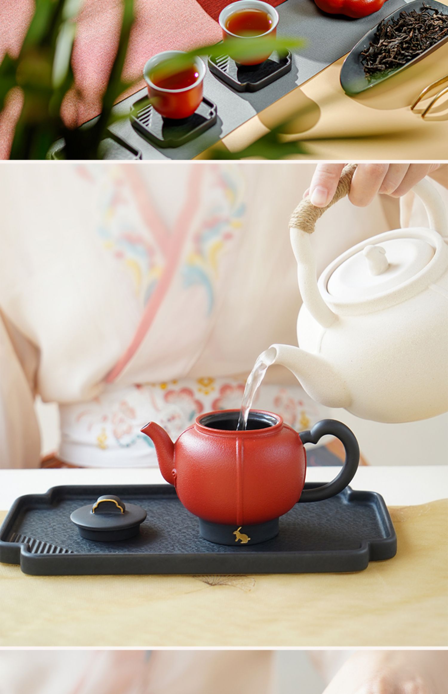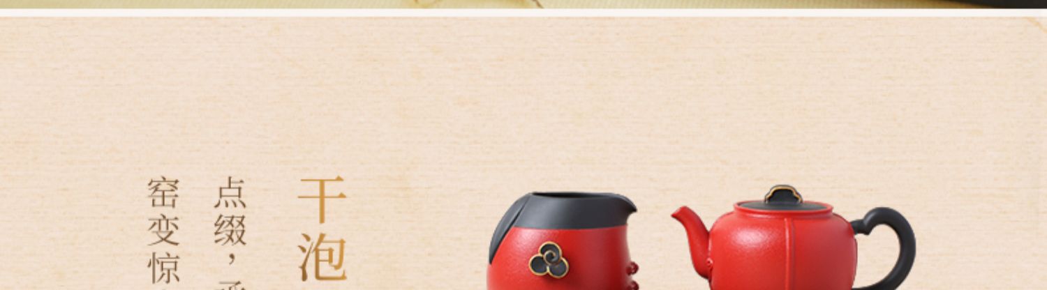 陆宝陶瓷功夫茶具 福照万家茶礼生肖兔描金陶瓷泡茶壶茶杯 家用客厅中国红高档整套茶具礼盒装